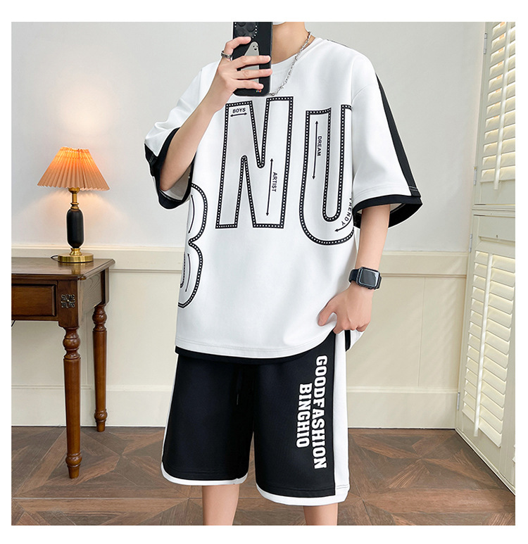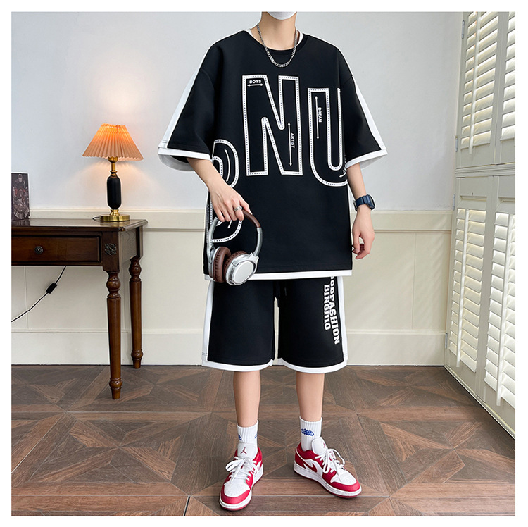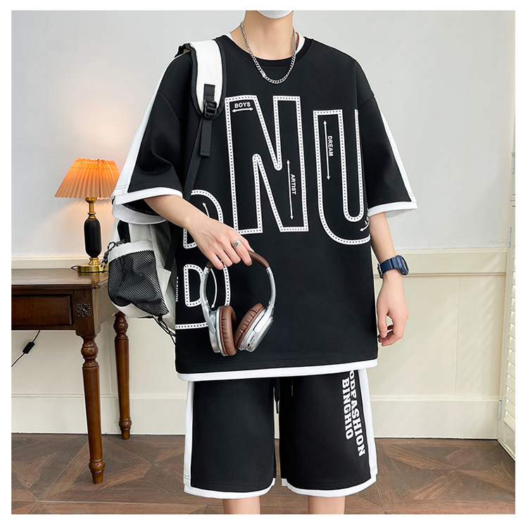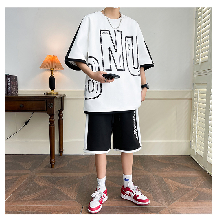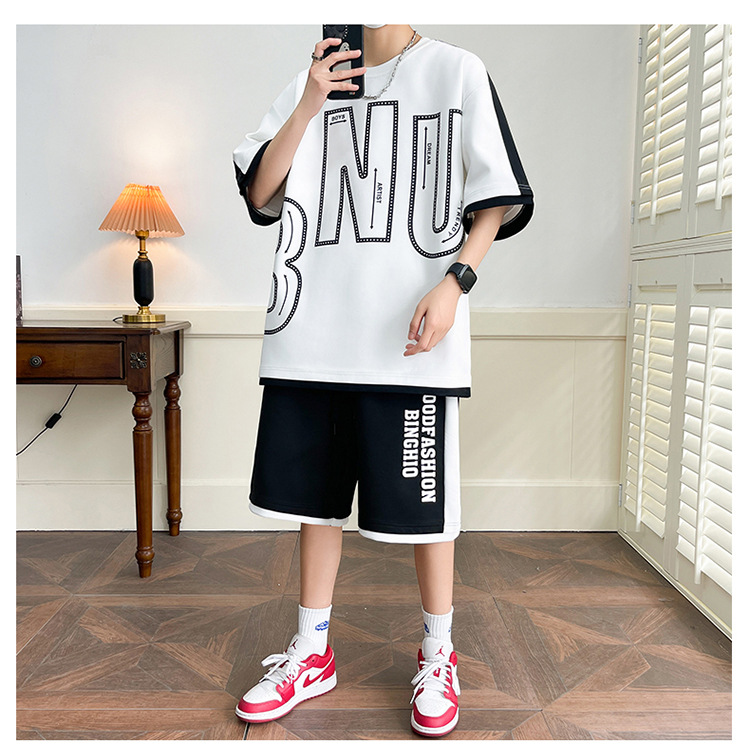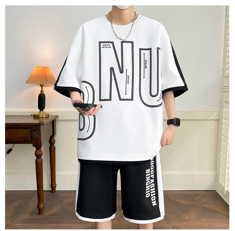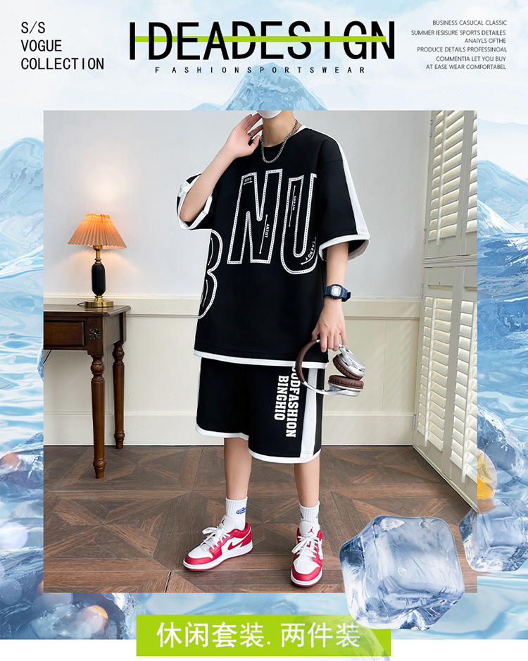 2025 verano Hong Kong estilo de ropa de hombre de seda cool algodón cuello redondo camiseta de manga corta pantalones cortos de dos piezas estilo de moda casual