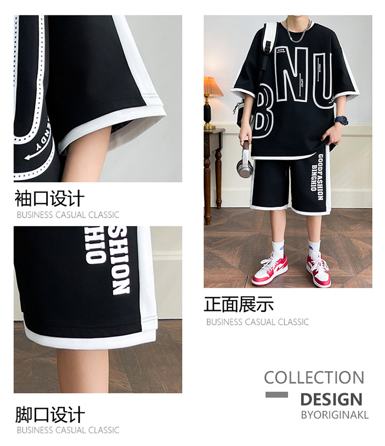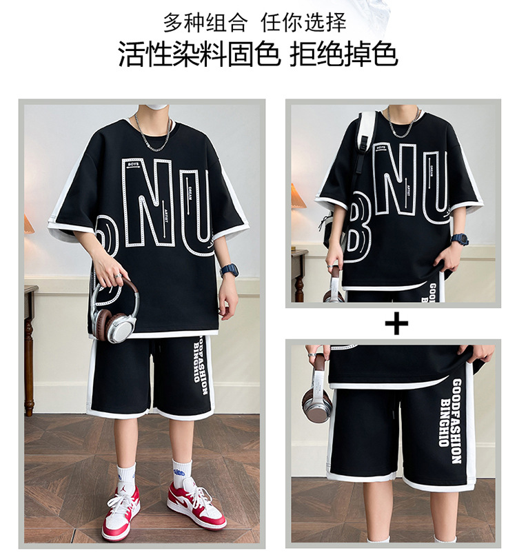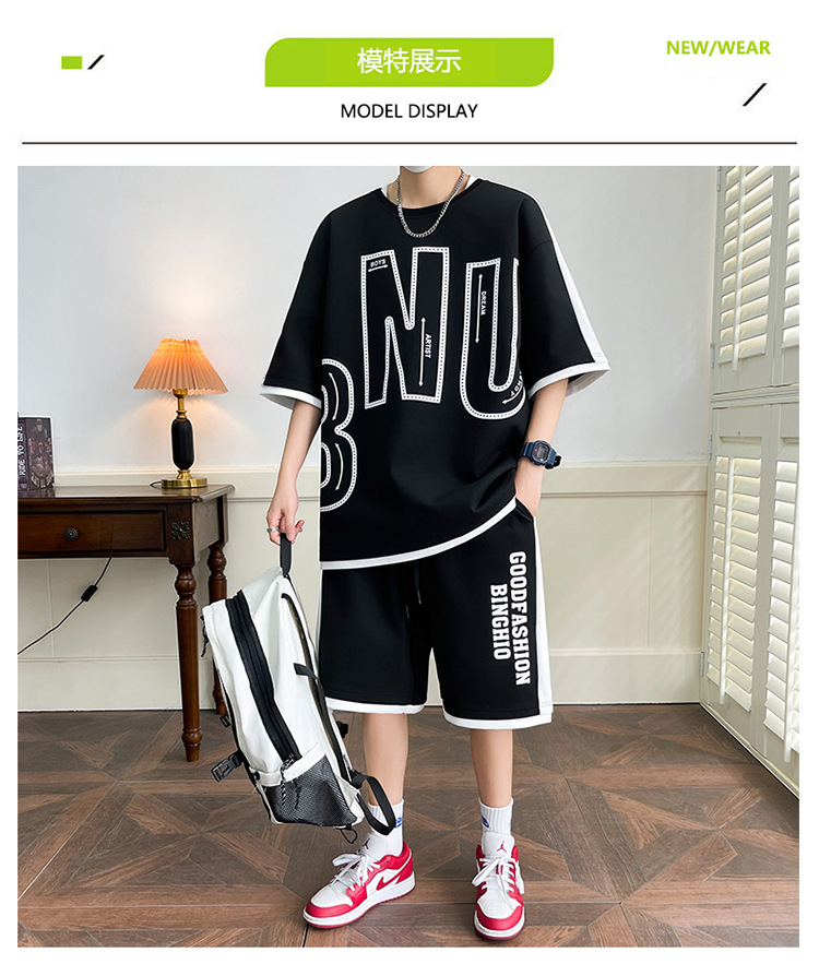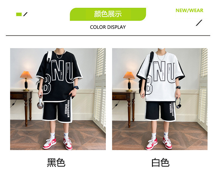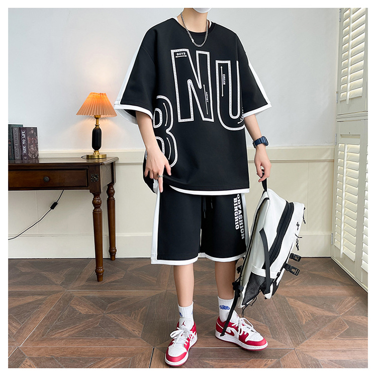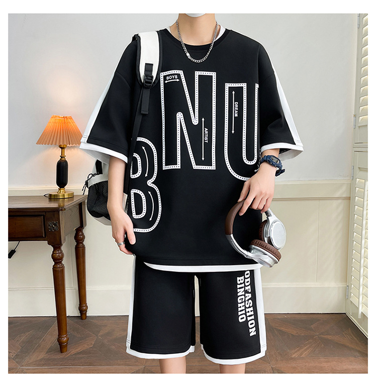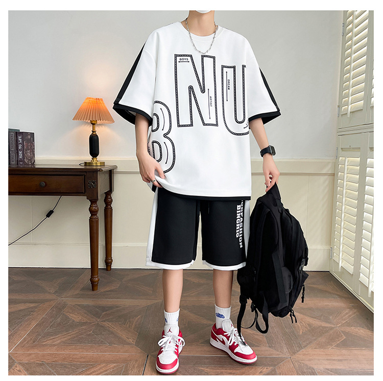2025 verano Hong Kong estilo de ropa de hombre de seda cool algodón cuello redondo camiseta de manga corta pantalones cortos de dos piezas estilo de moda casual