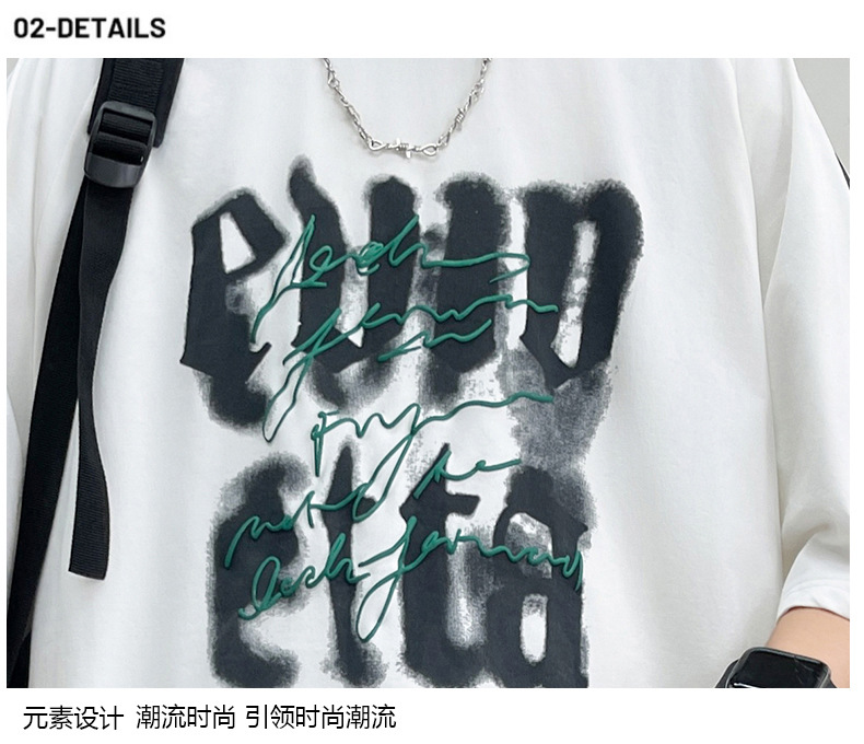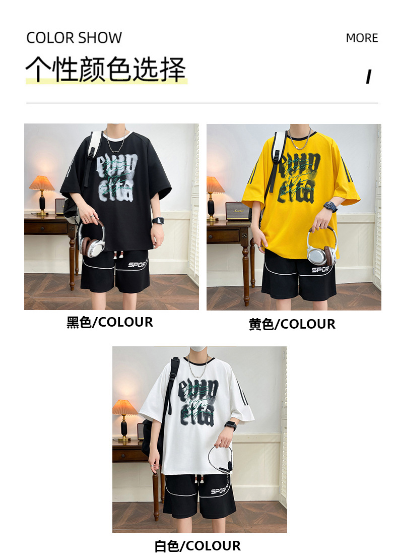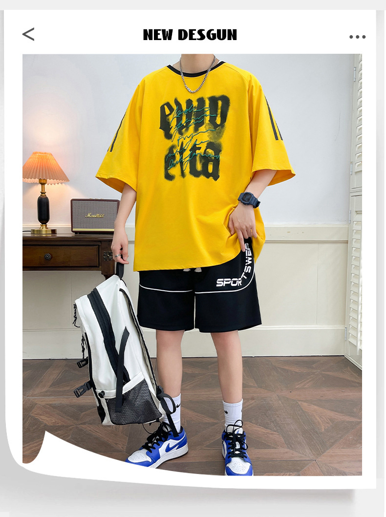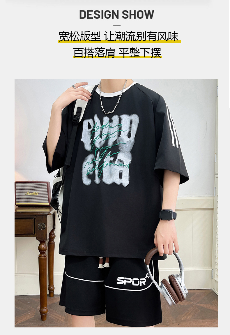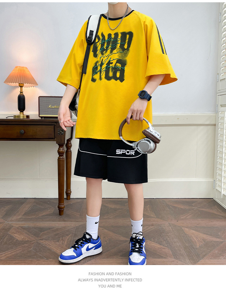 2025 verano nueva camiseta de cuello redondo suelta versátil conjunto juvenil diario hombre cinco puntos casuales corto delgado