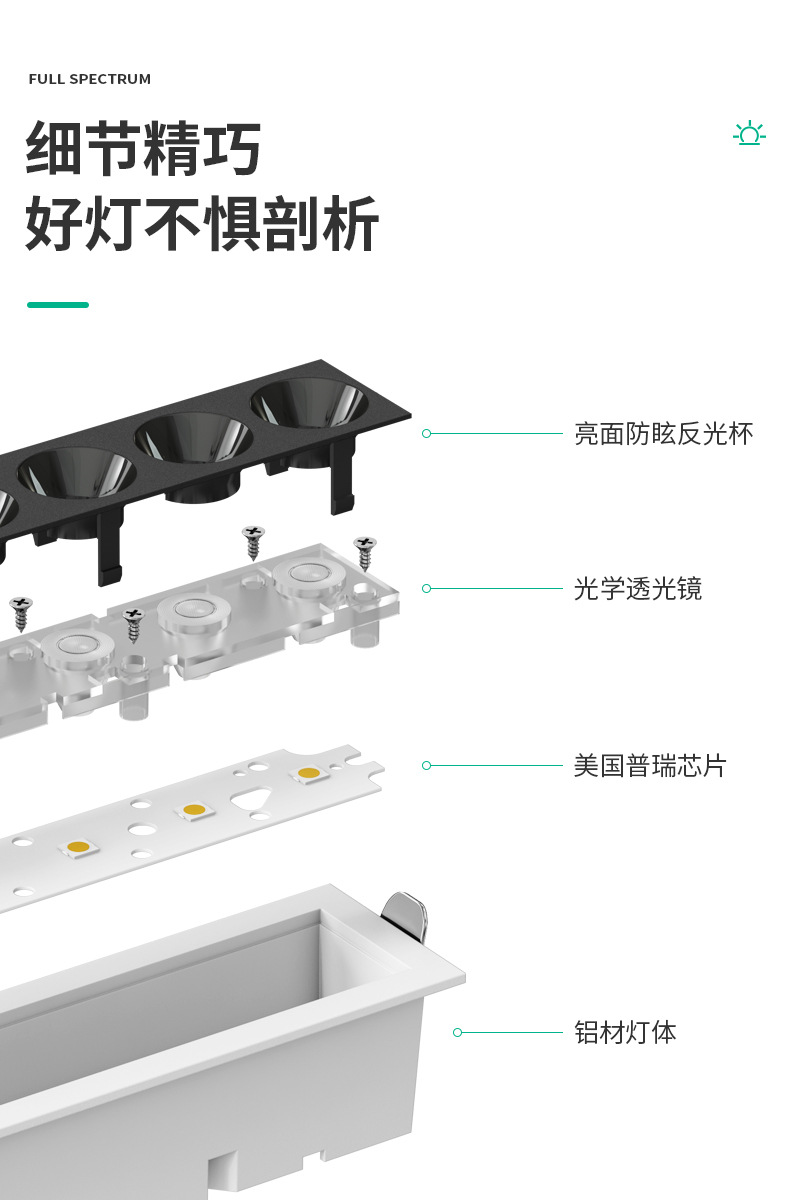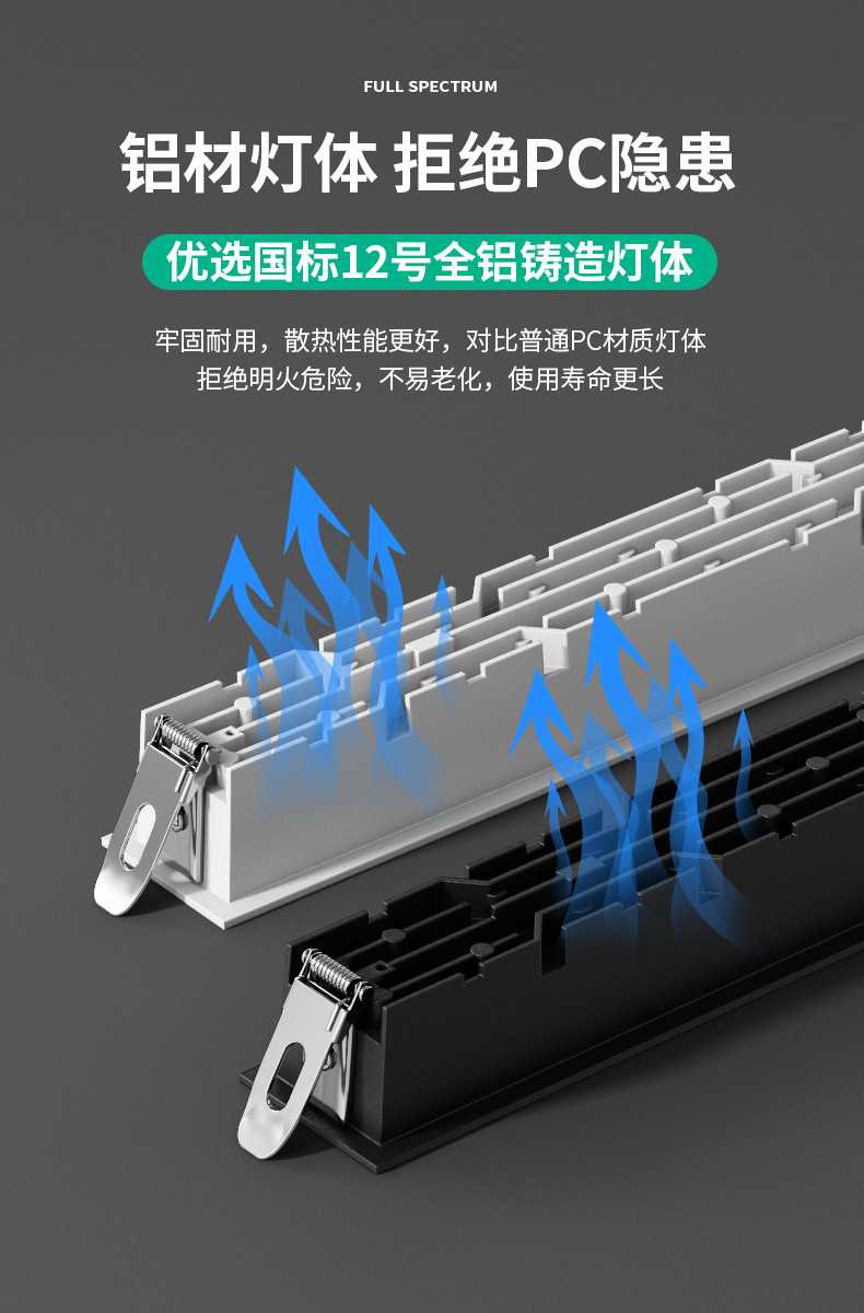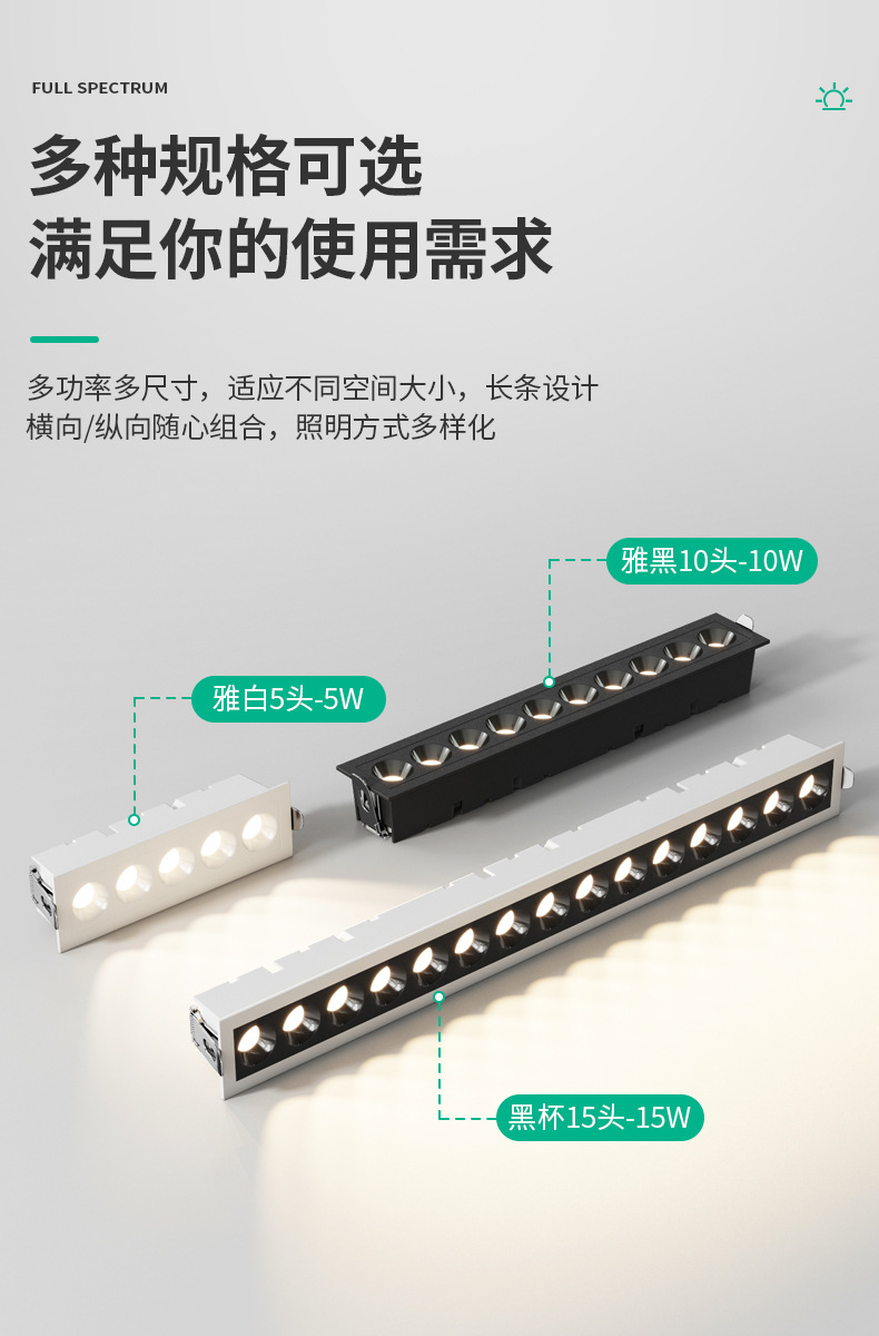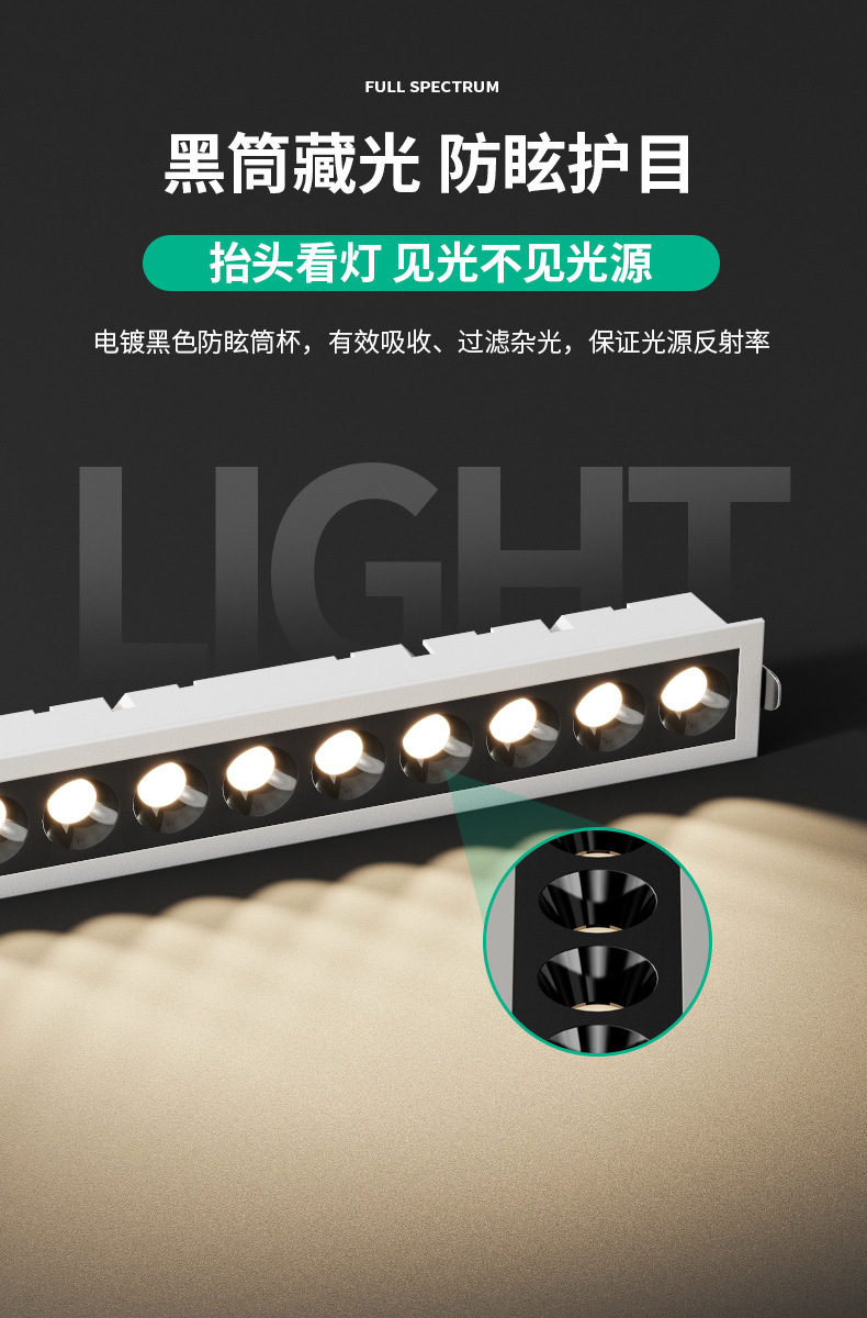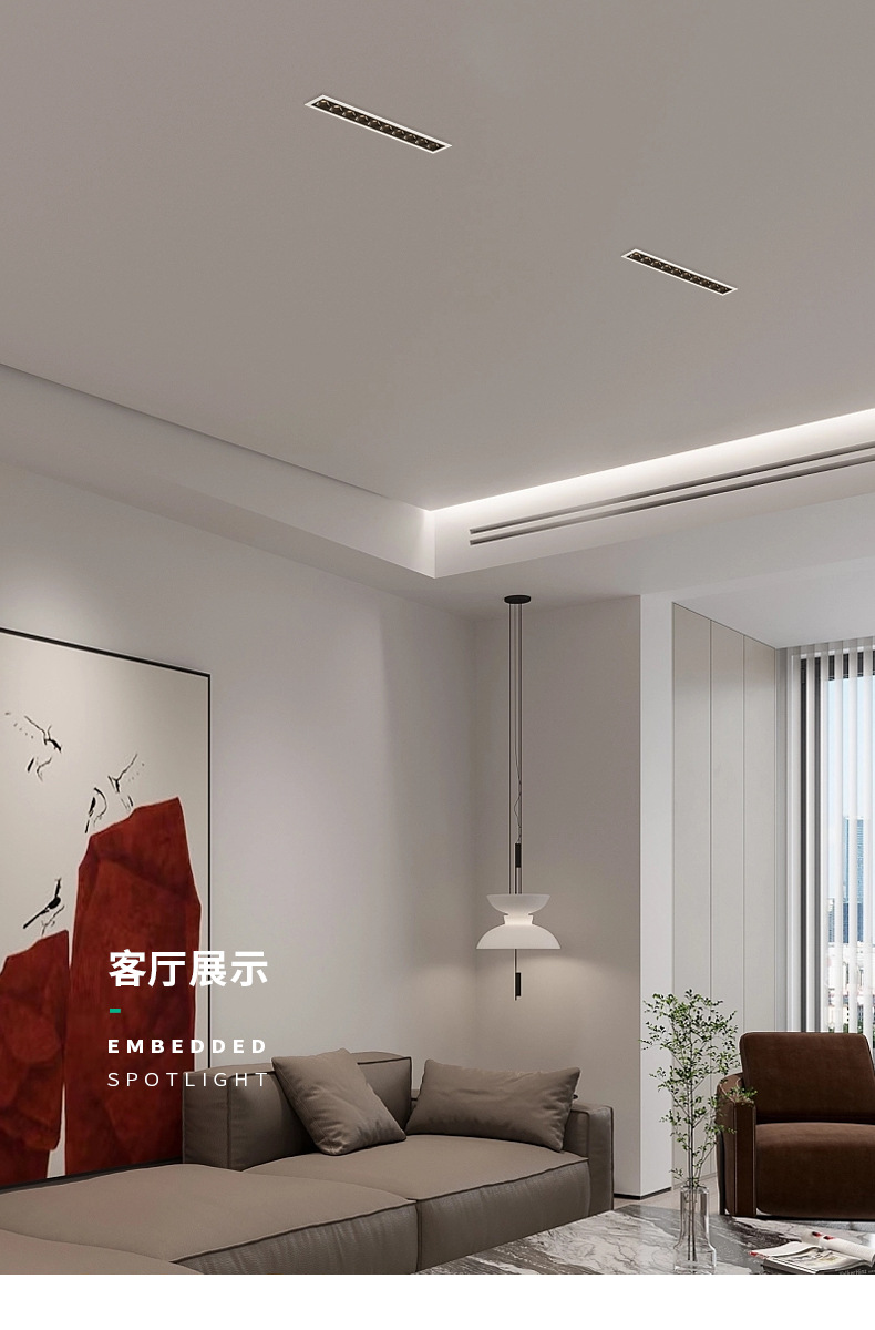 lámpara de luz de barra larga LED incrustada lámpara de parrilla de techo tipo línea sala de estar sin lámpara principal lámpara anti-deslumbrante de condensador rectangular