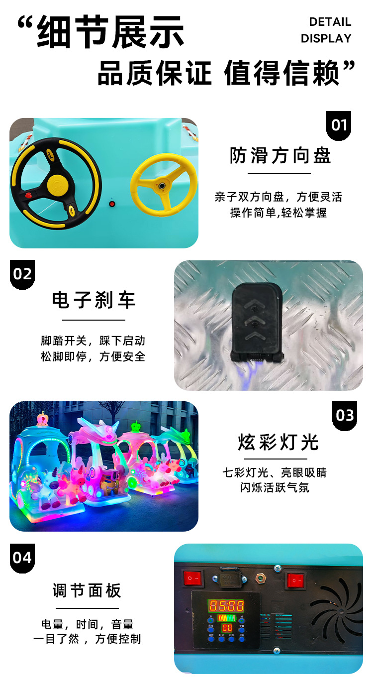 Indoor de alta gama coche de juguete eléctrico para niños cuadrado iluminante coche de atracciones de fibra de vidrio gran rueda coche de atracciones