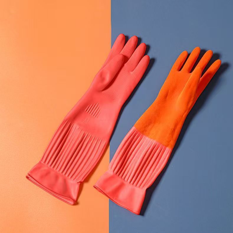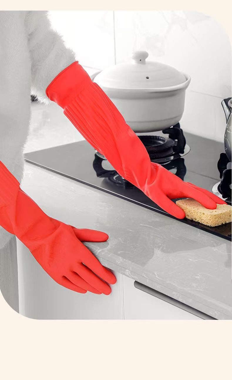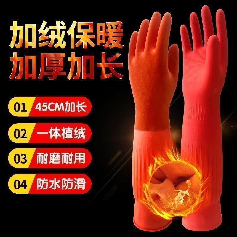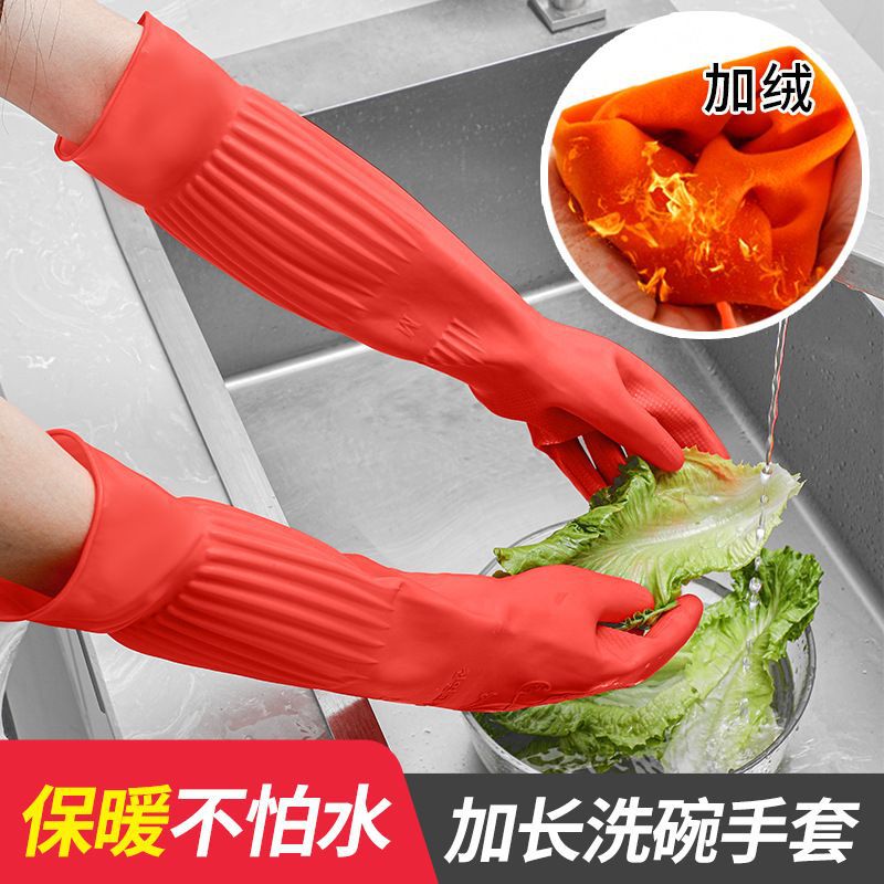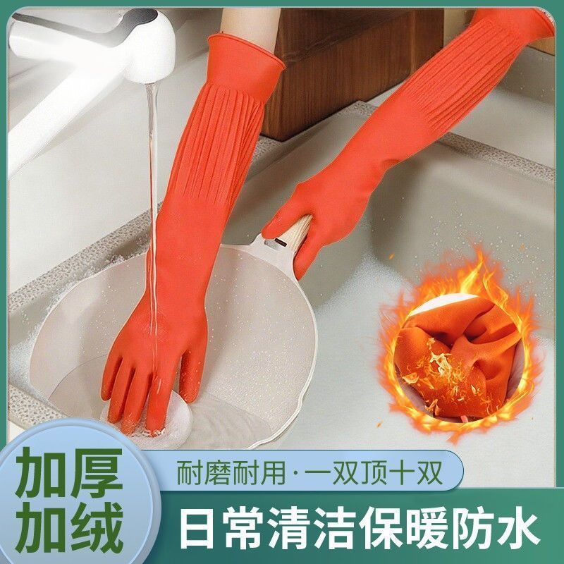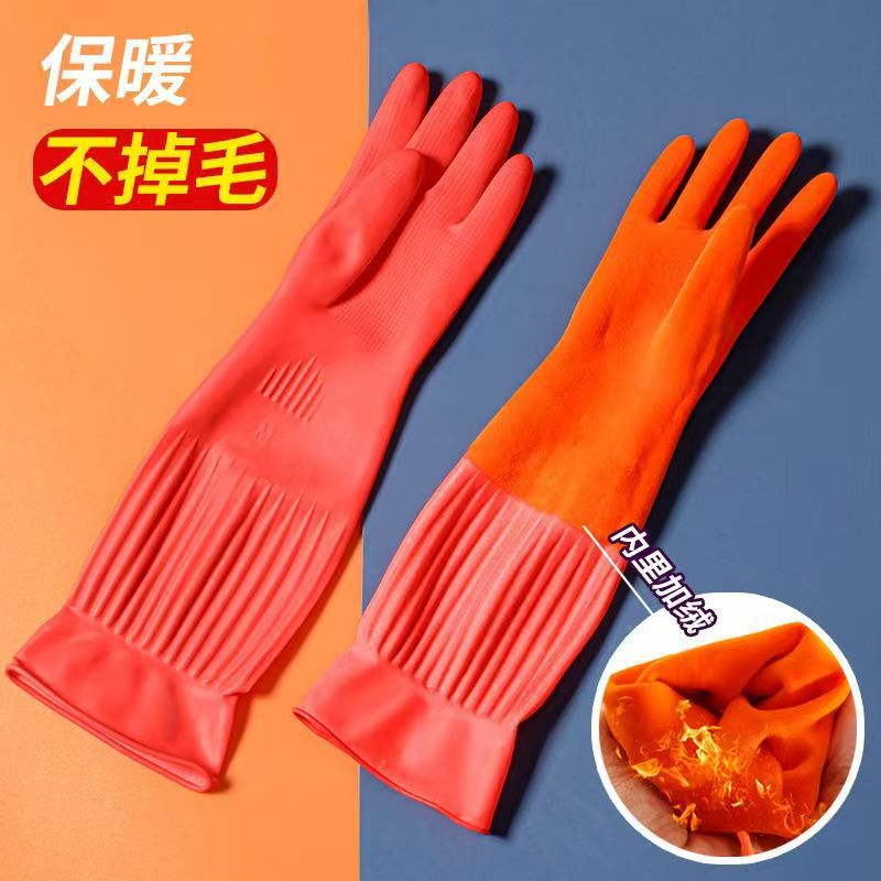 Guantes antifría de lana de cocina guantes de lavado de platos de lana de goma de látex doméstico espesar y alargar la ropa transfronteriza