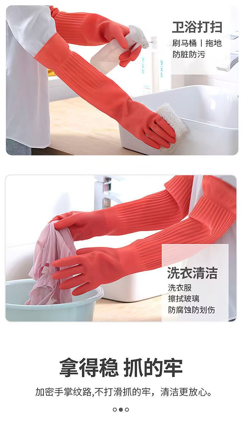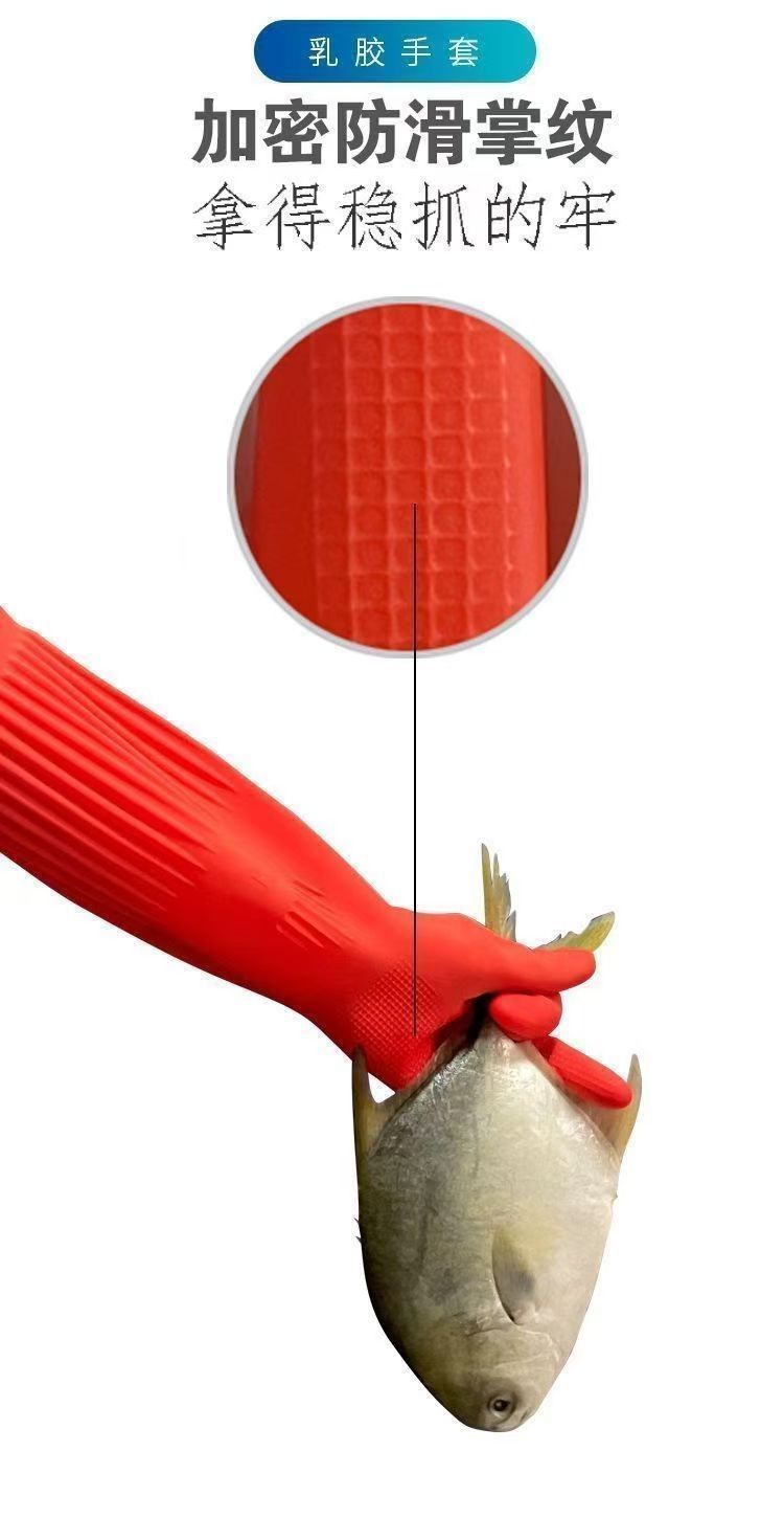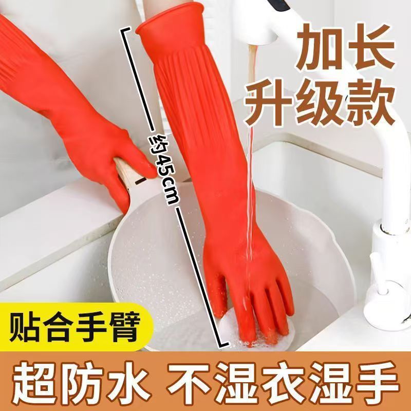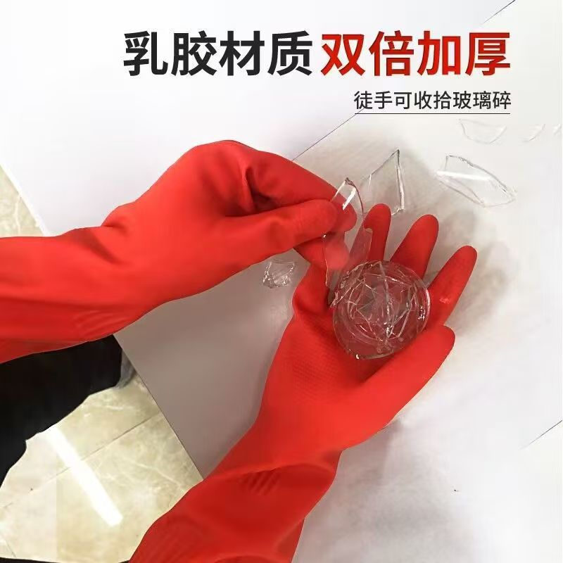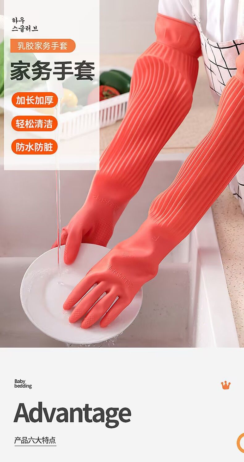Guantes antifría de lana de cocina guantes de lavado de platos de lana de goma de látex doméstico espesar y alargar la ropa transfronteriza