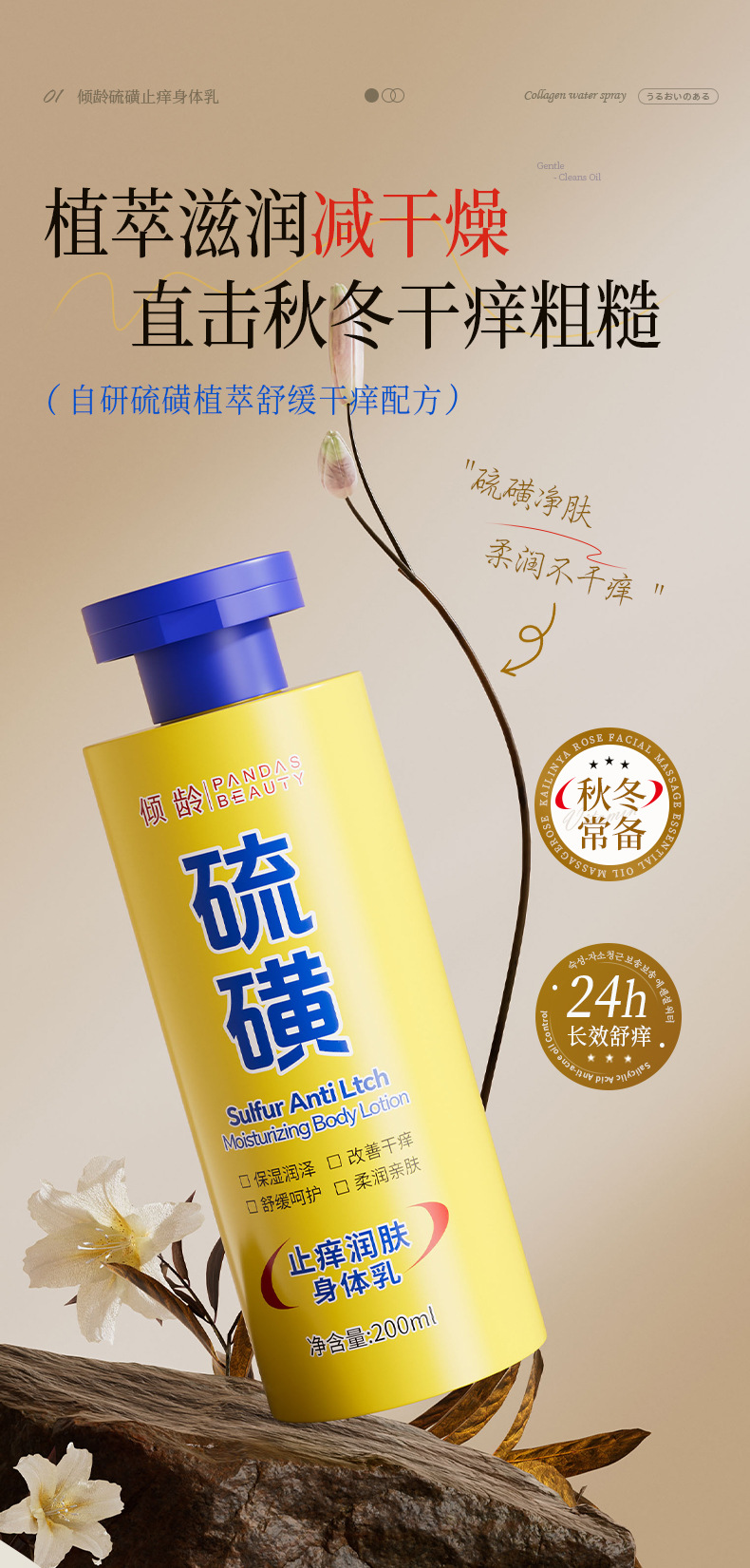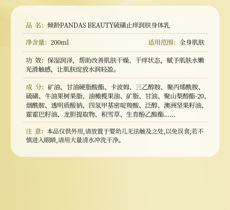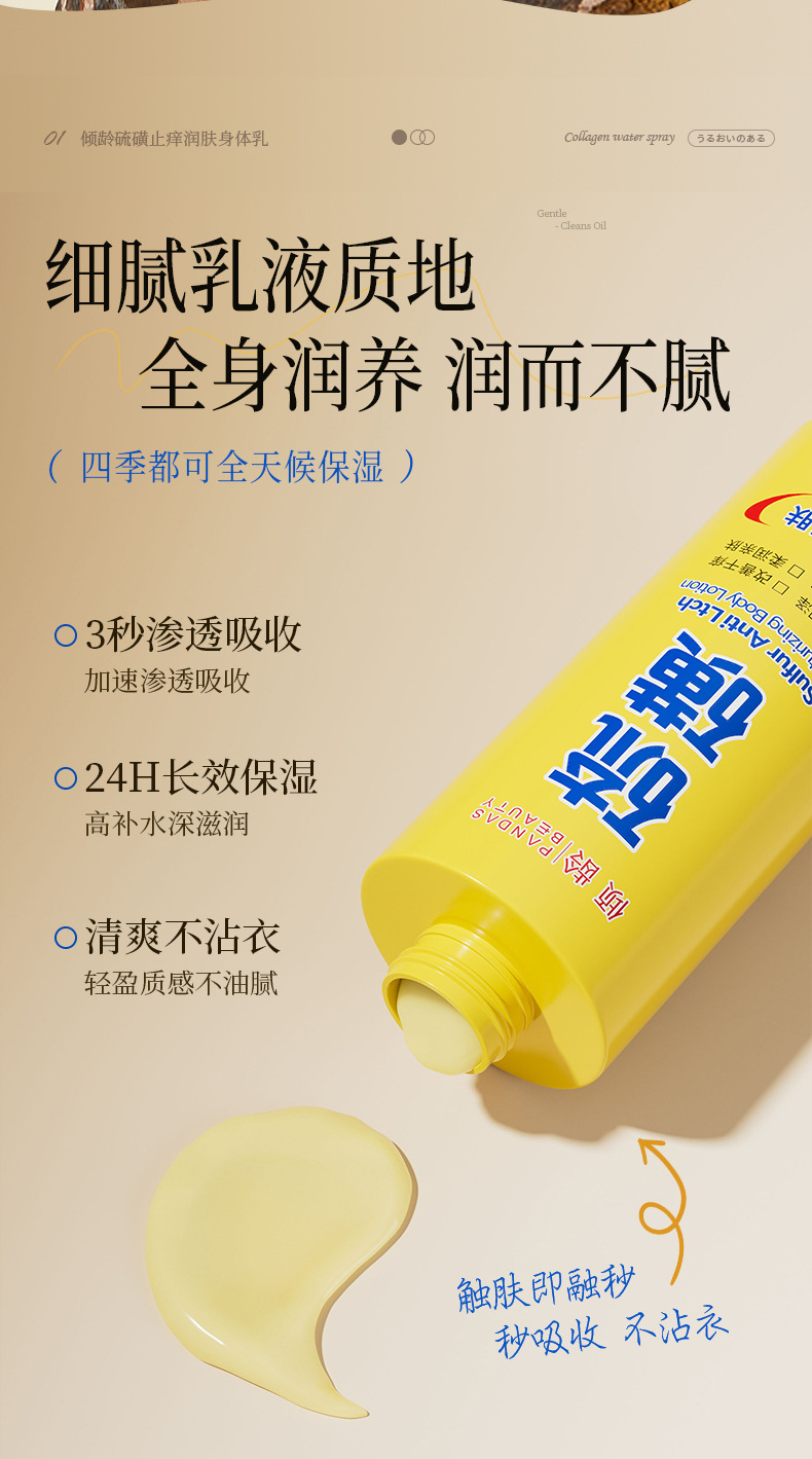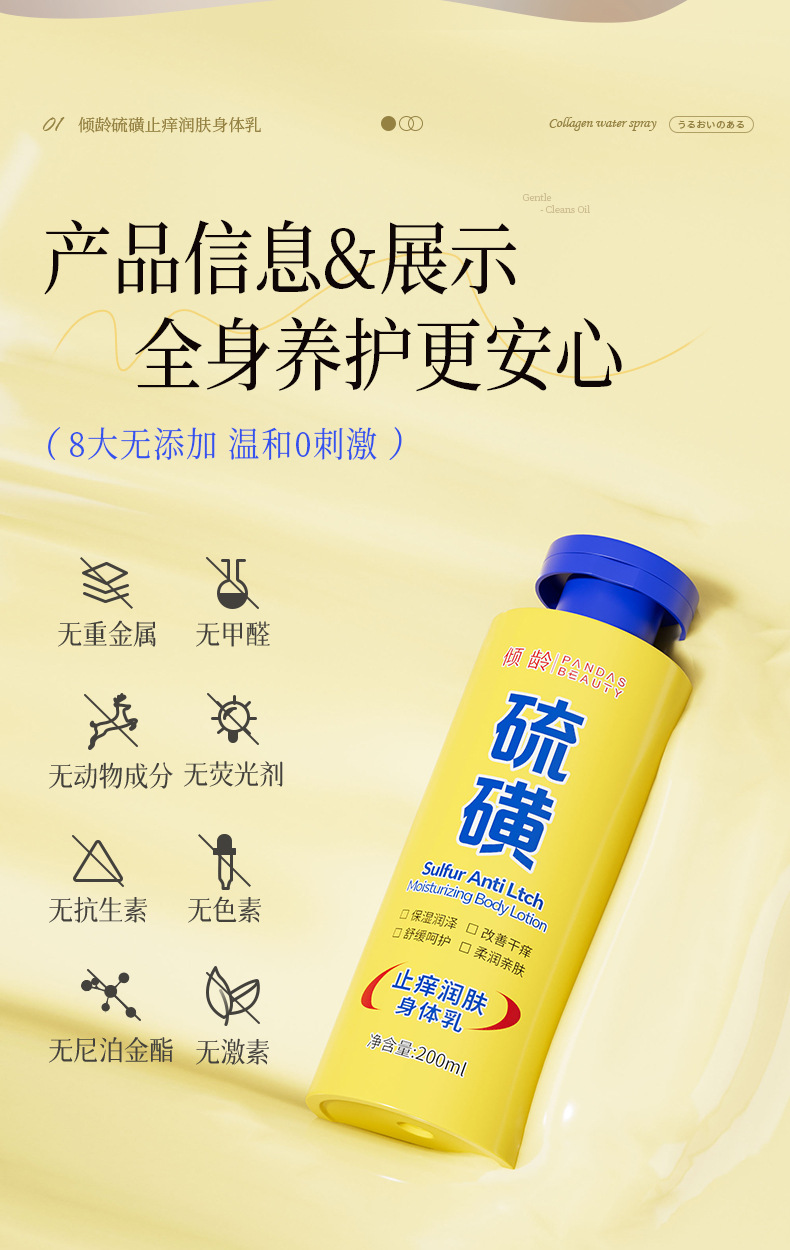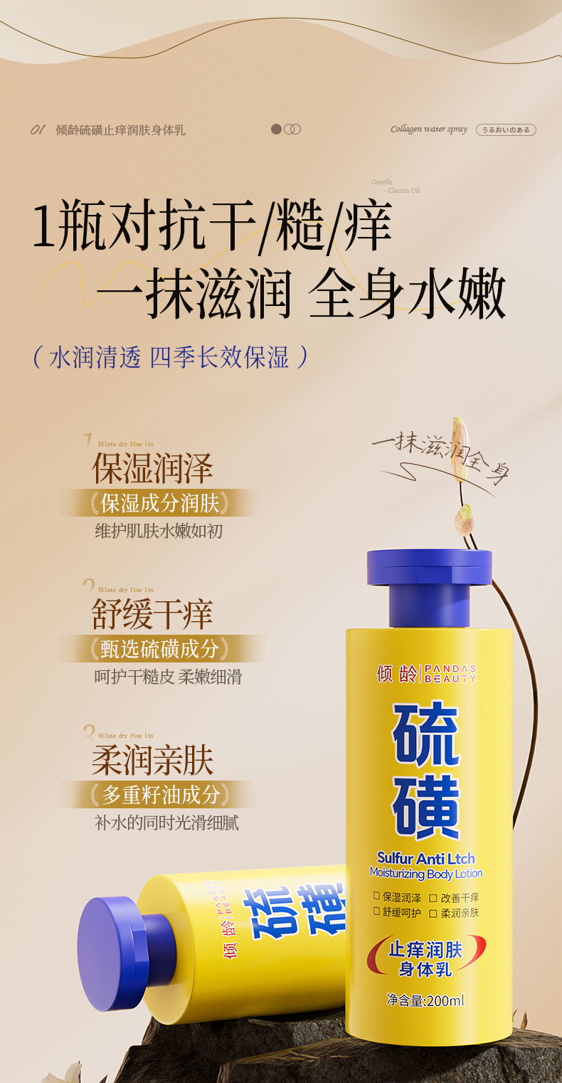 | Especificaciones del producto | Leche corporal de azufre de edad inclinada 200 ml |
