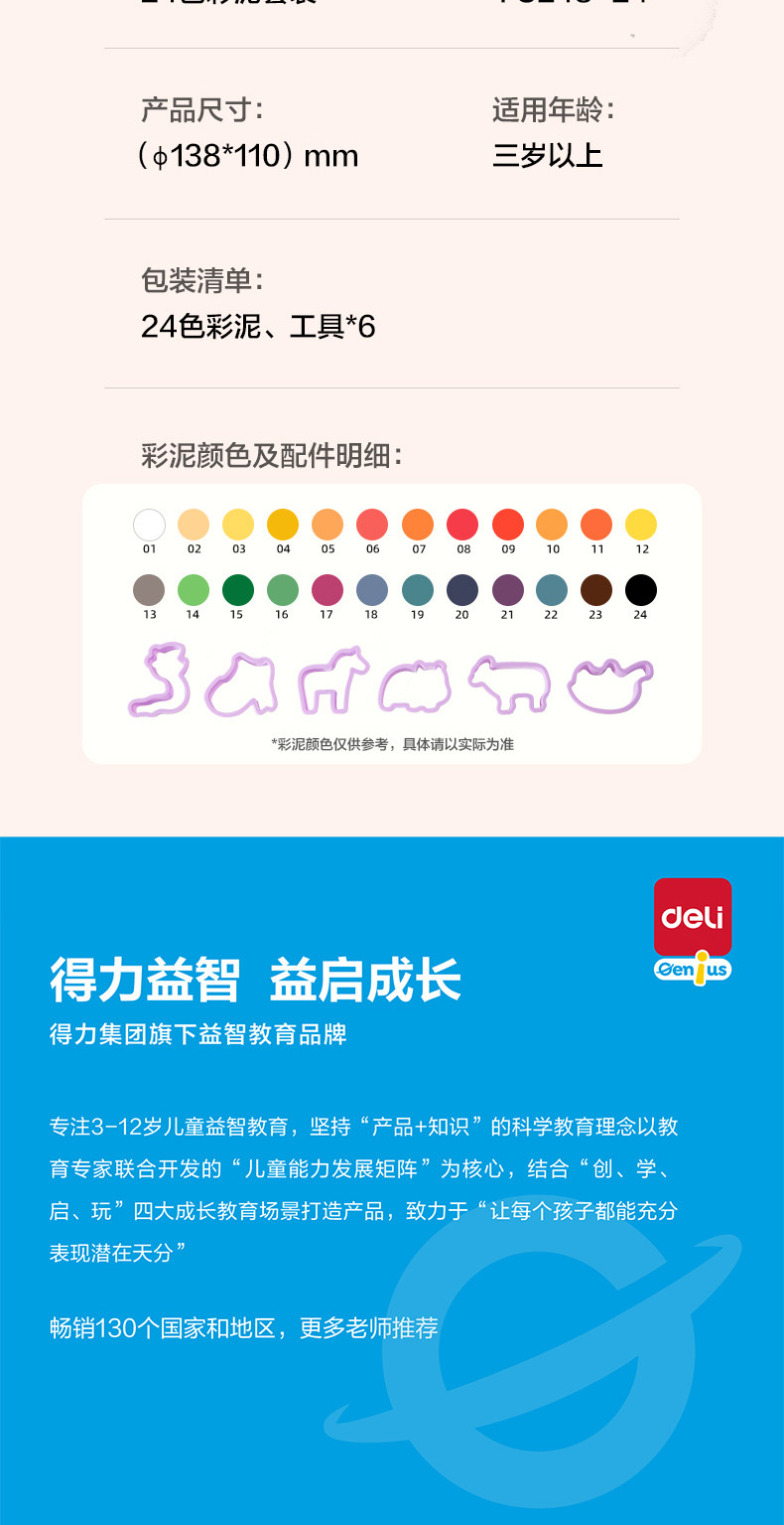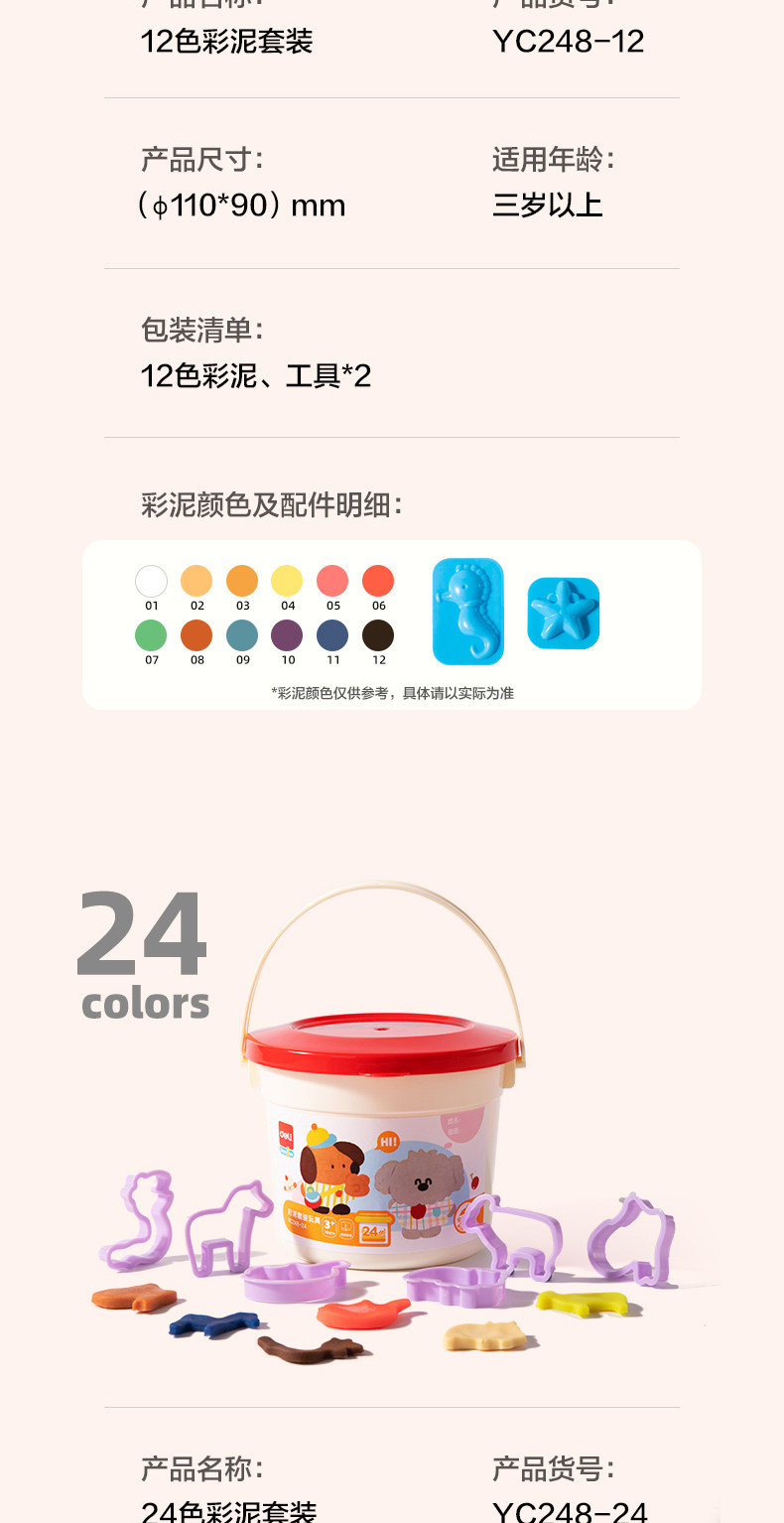 Deli barro de goma seguro para niños, no tóxico, inodoro, jardín de infantes especial barro de color 24 colores DIY arcilla hecha a mano al por mayor