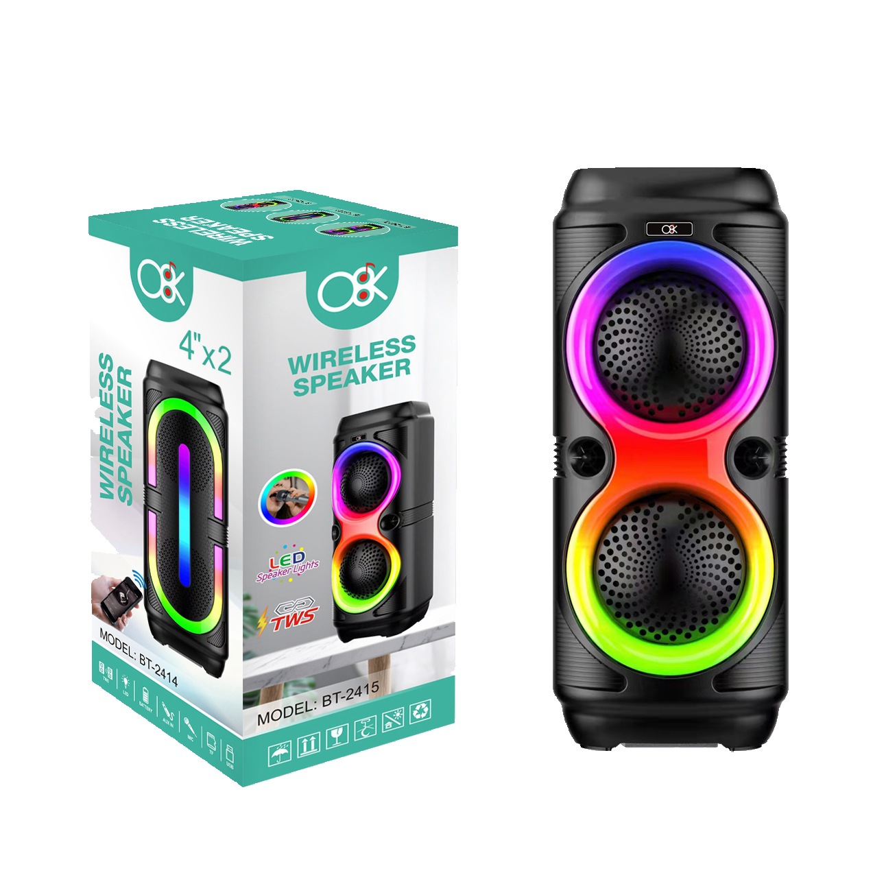 BT-2415 doble 4 pulgadas Bluetooth altavoz portátil de alta potencia al aire libre Correa subwoofer radio Bluetooth altavoz