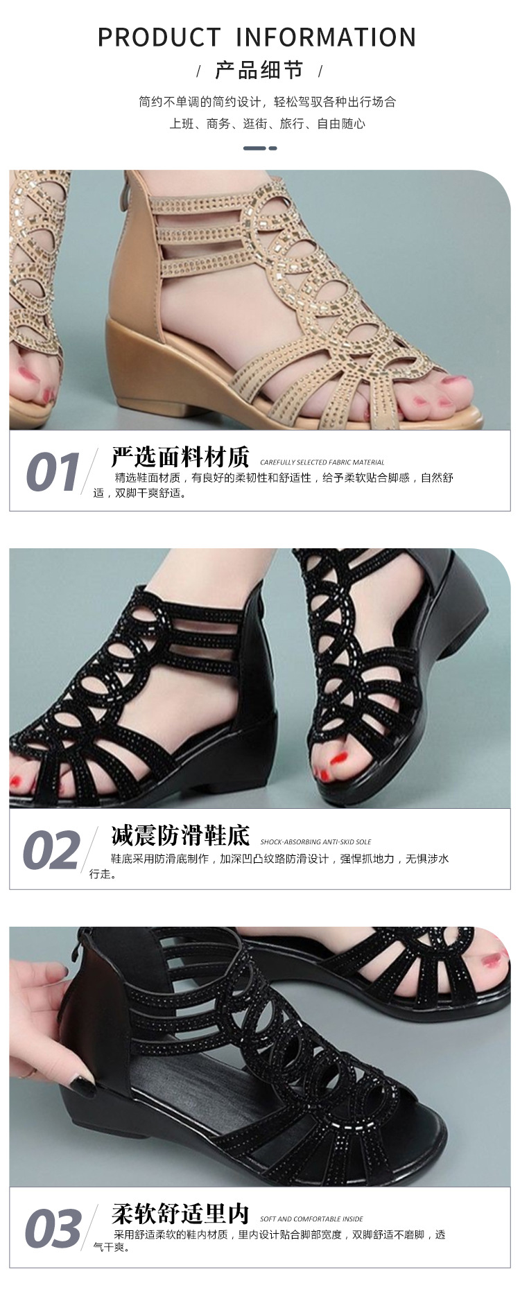 Sandalias romanas de cuero auténtico suave para mujer, 24 estilos de verano, zapatos de mamá con suela blanda, calzado de moda para exteriores, sandalias para mamá de mediana edad, sandalias de mujer.