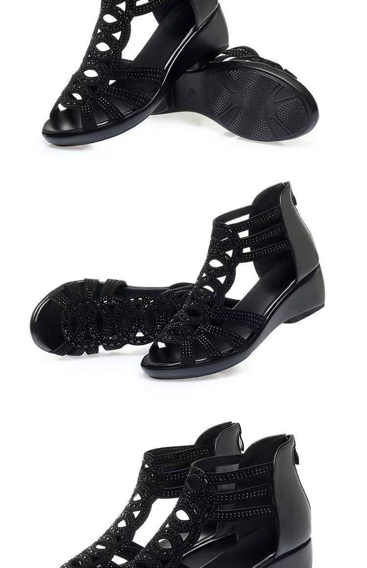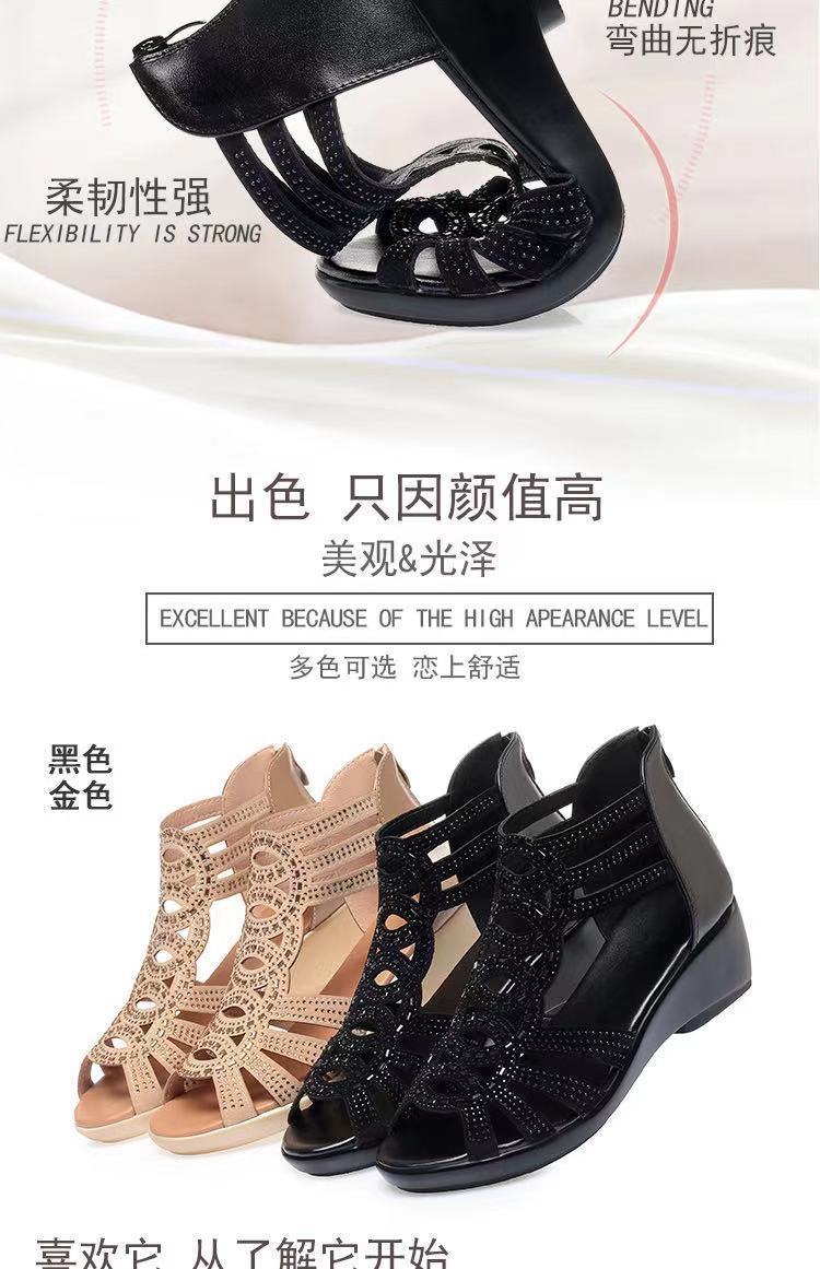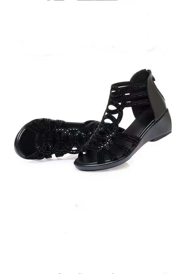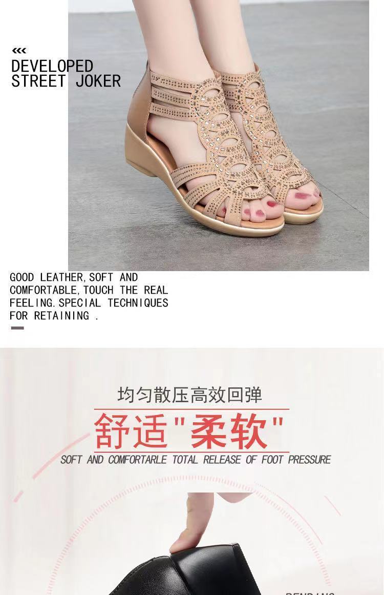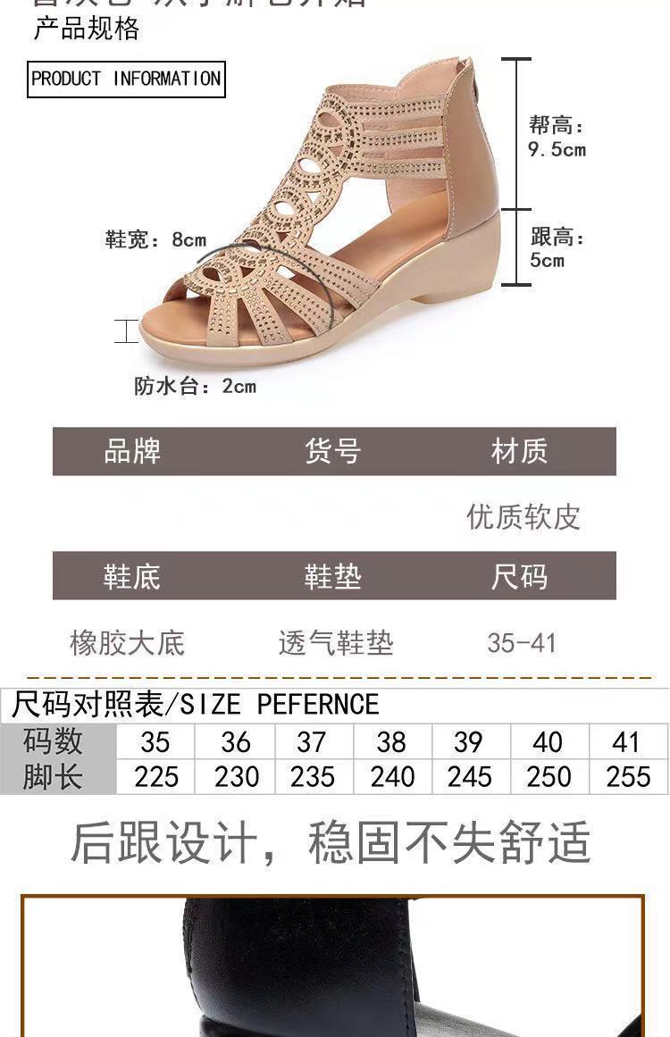 Sandalias romanas de cuero suave para mujer, nuevo estilo de verano 22 zapatos de madre de suela blanda, sandalias de mujer de uso exterior de moda, zapatos de mujer antideslizantes de cuña