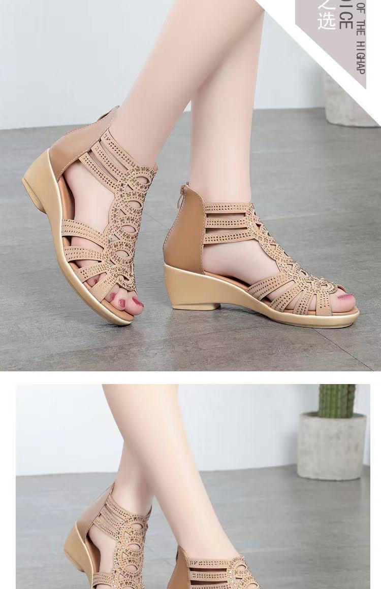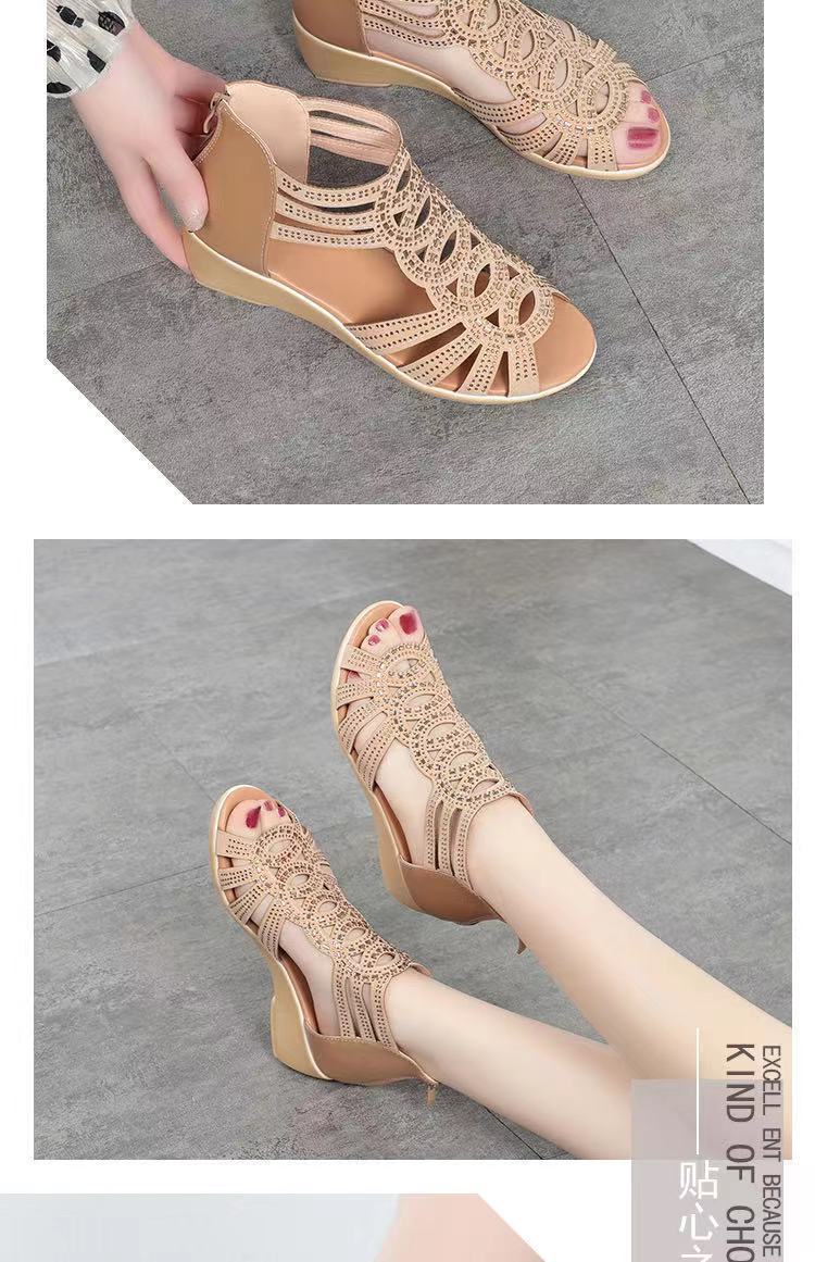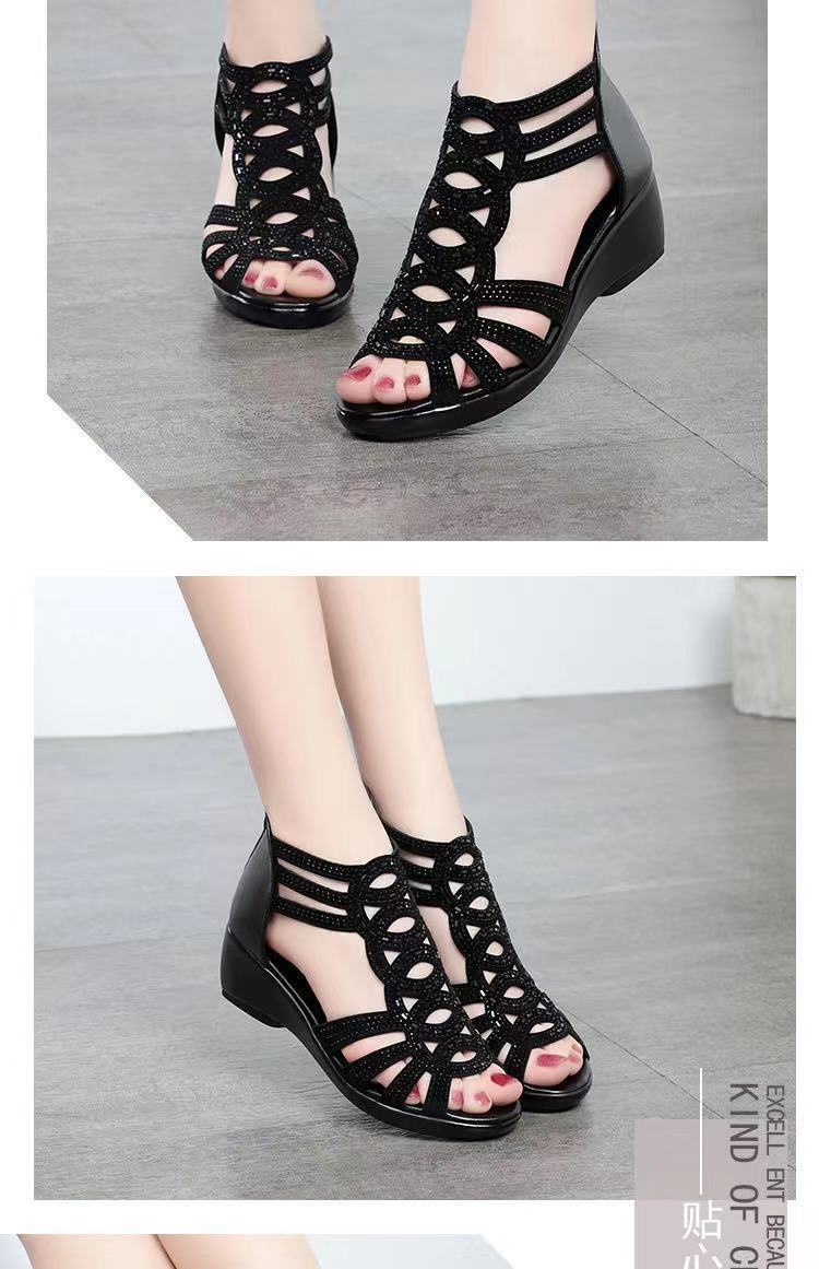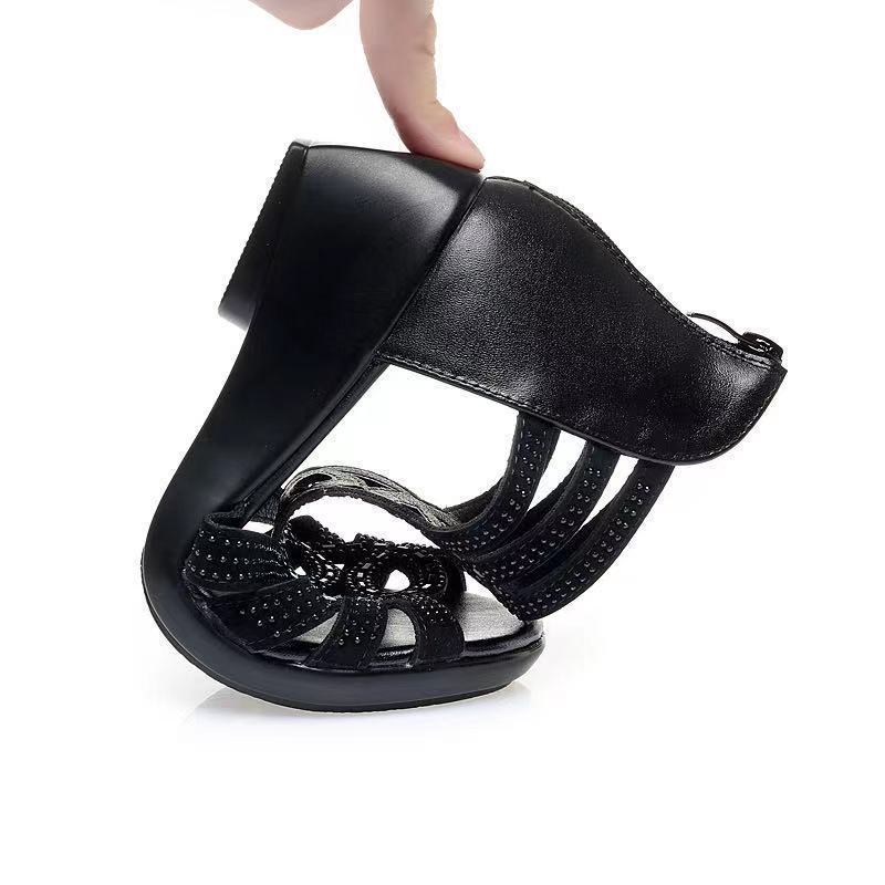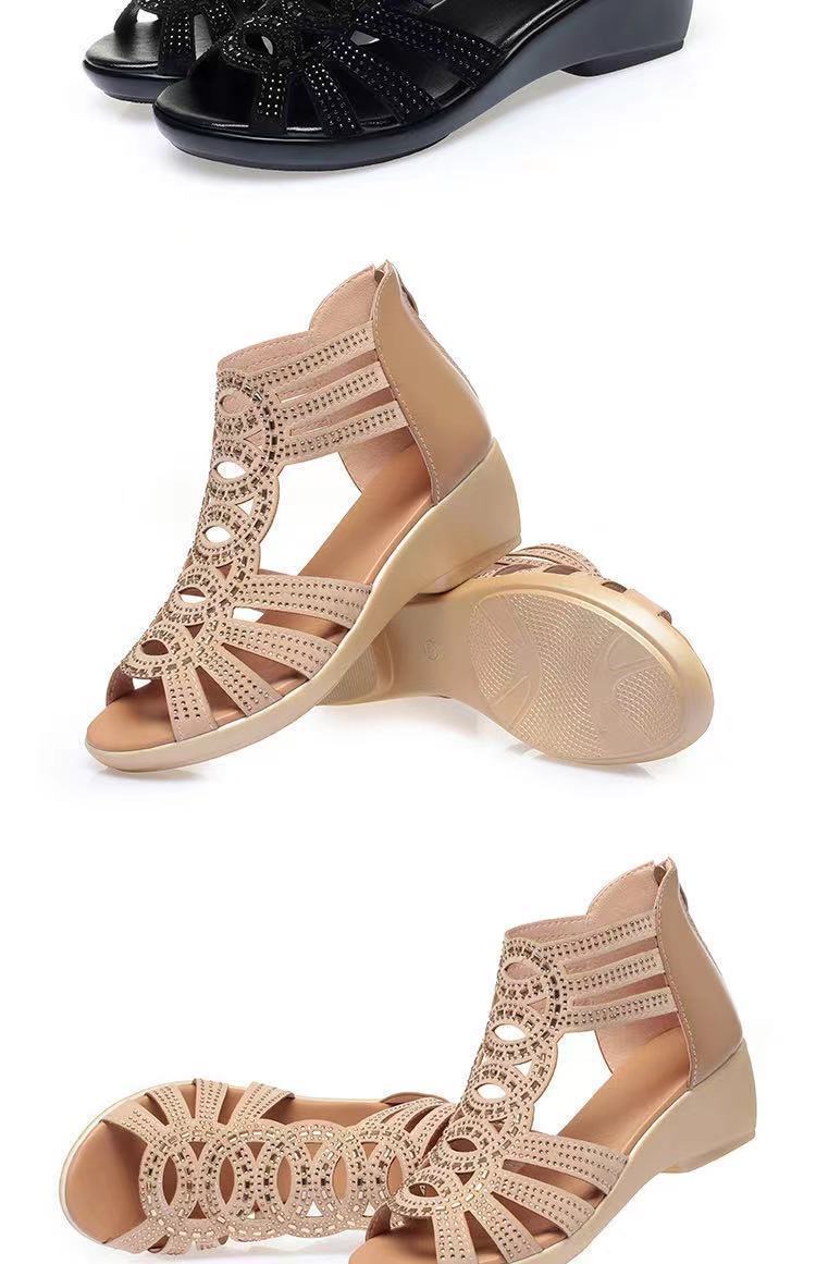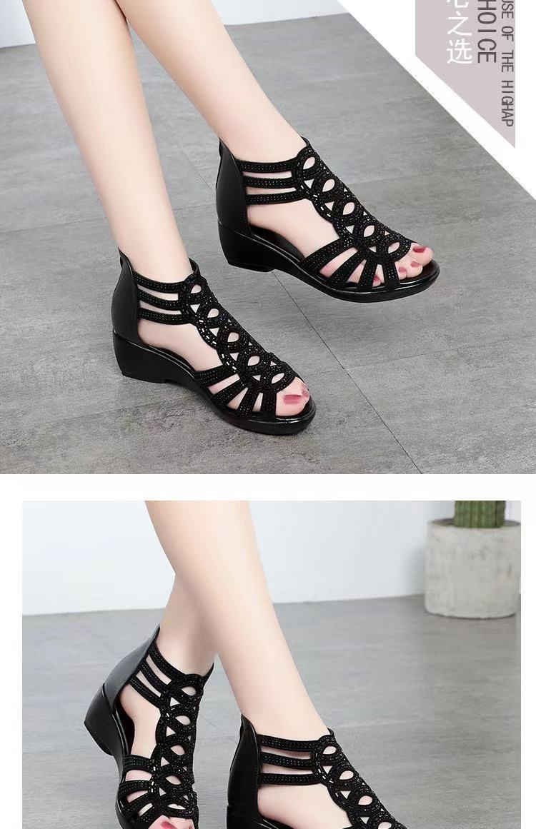Sandalias romanas de cuero suave para mujer, nuevo estilo de verano 22 zapatos de madre de suela blanda, sandalias de mujer de uso exterior de moda, zapatos de mujer antideslizantes de cuña