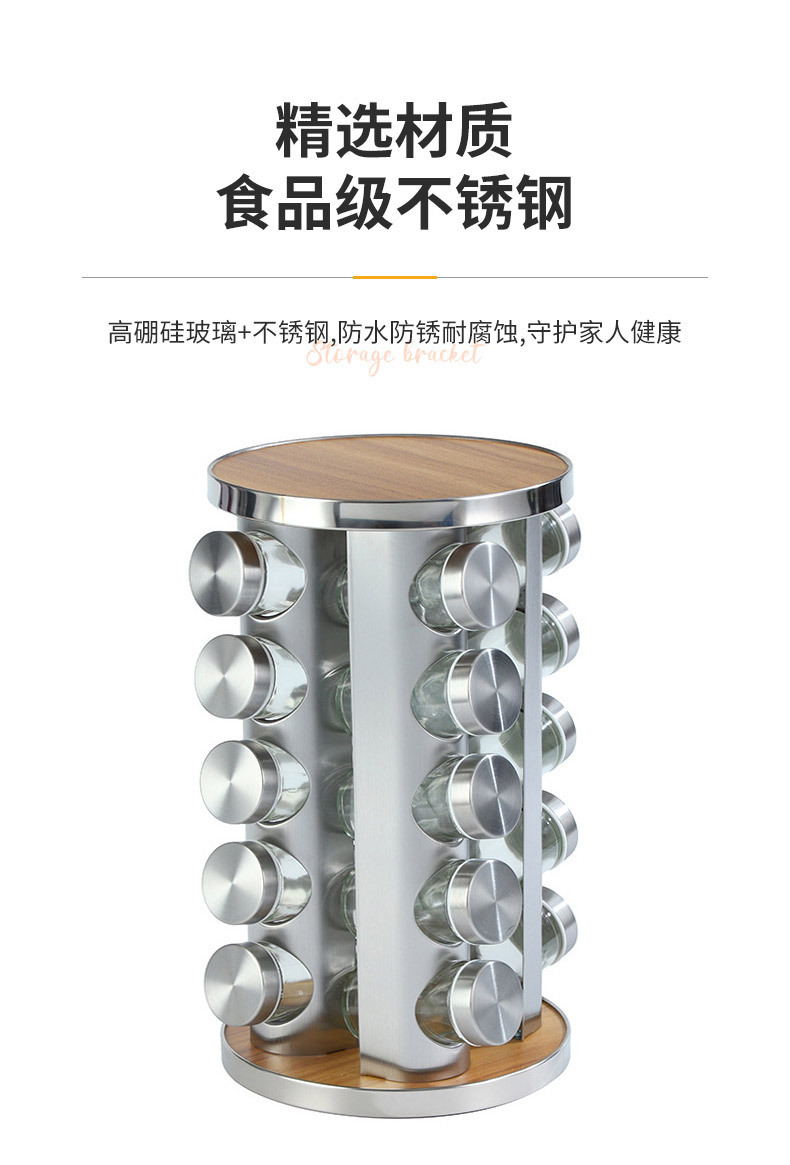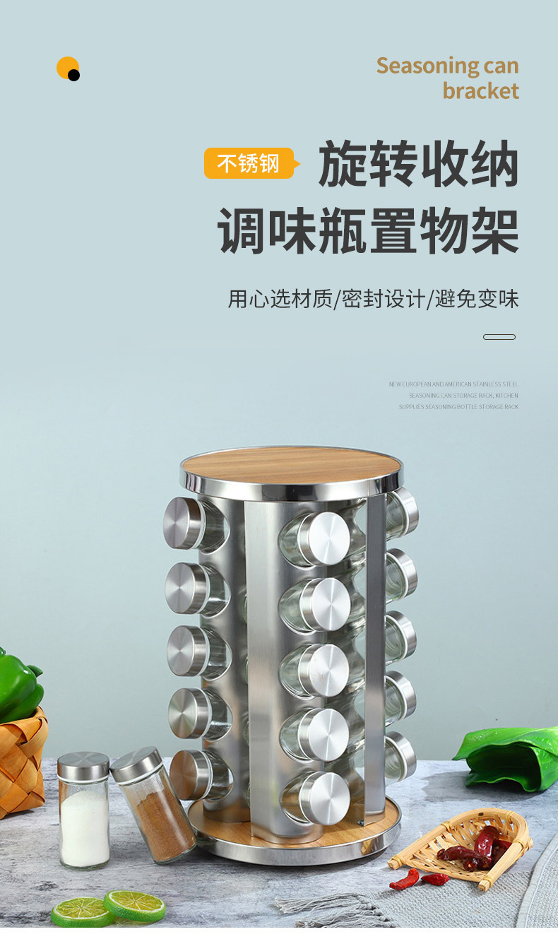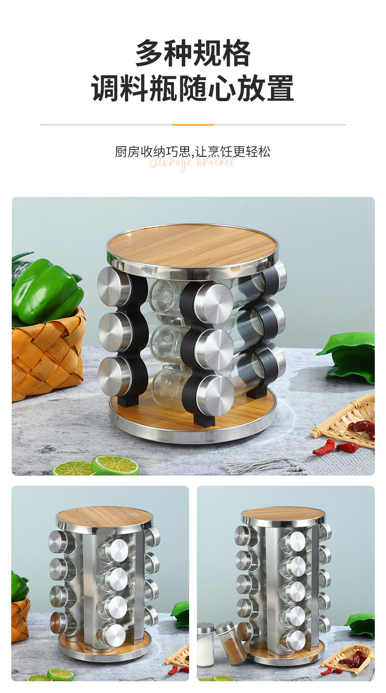 Europa y los Estados Unidos nuevos soporte de condimento de hierro inoxidable 20 botellas de soporte de condimento giratorio estante de almacenamiento de cocina cabello recto