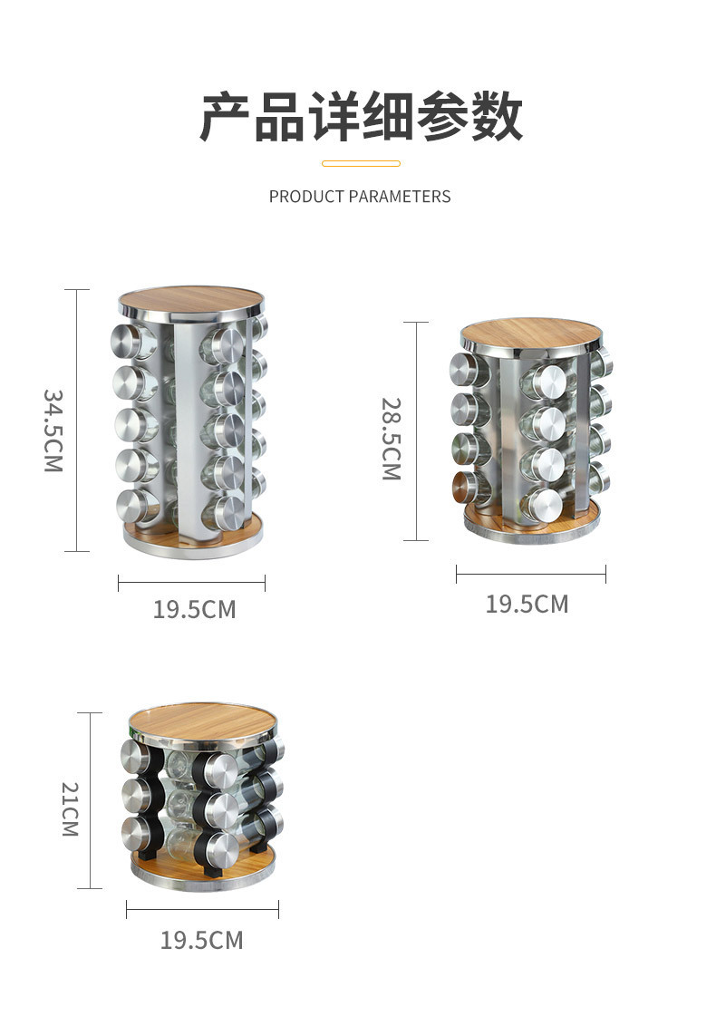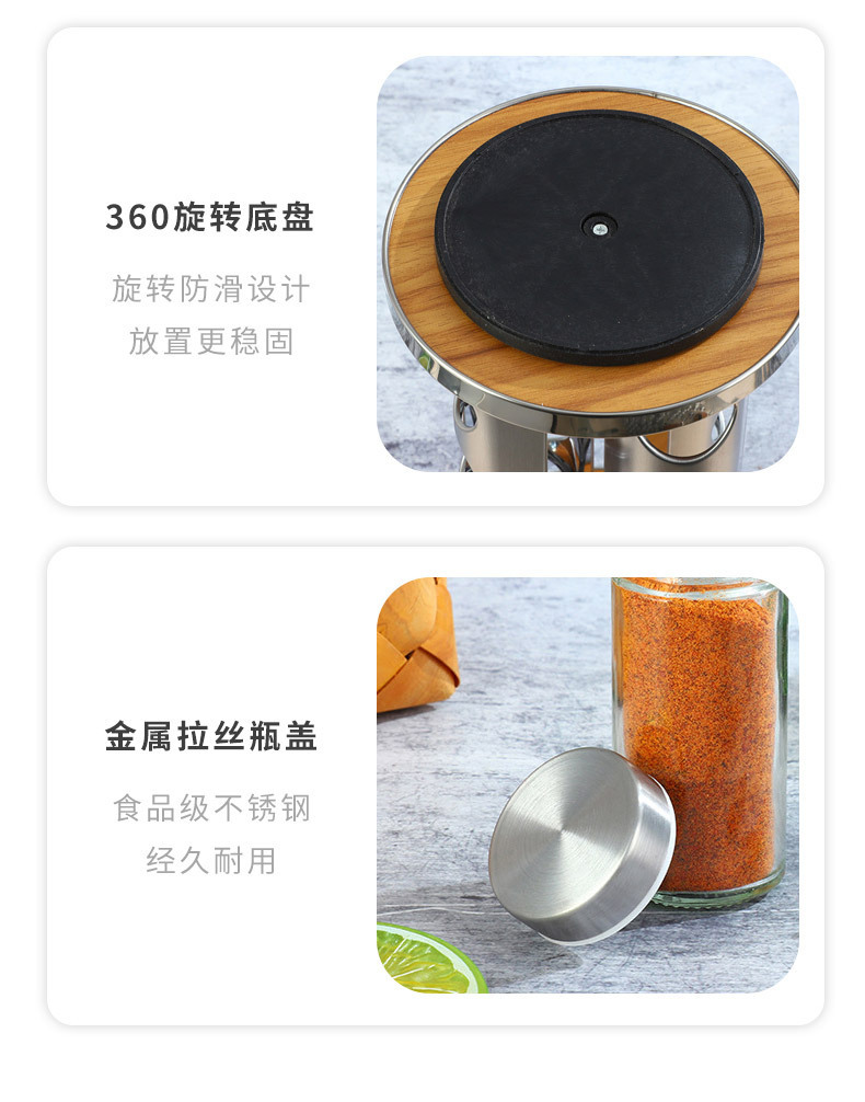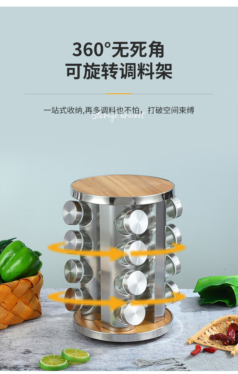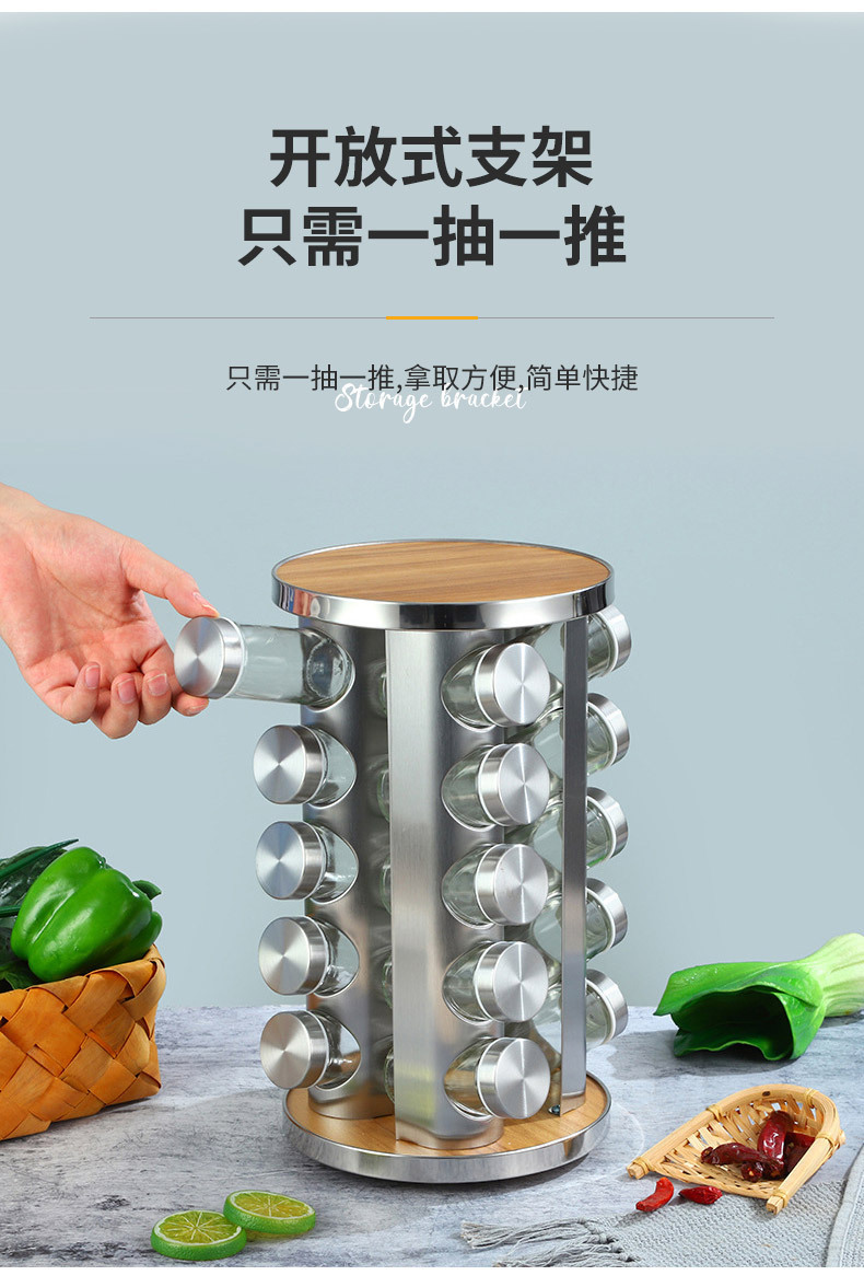 Europa y los Estados Unidos nuevos soporte de condimento de hierro inoxidable 20 botellas de soporte de condimento giratorio estante de almacenamiento de cocina cabello recto