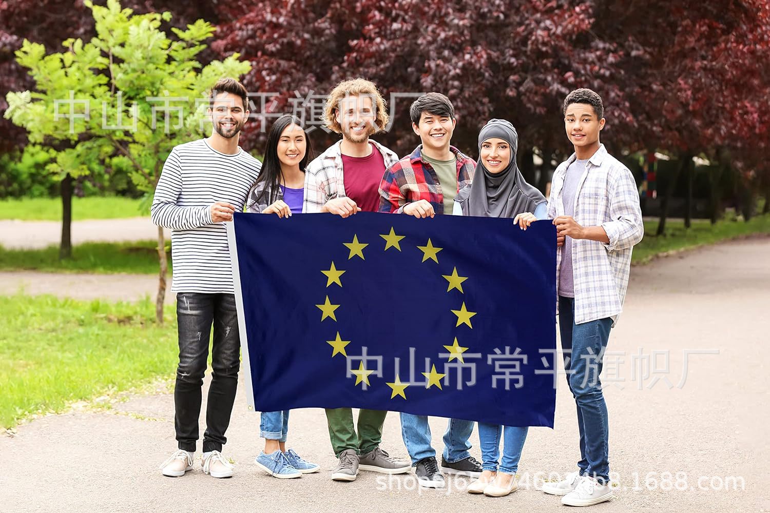 DANF bandera de la UE exportación de bandera transfronteriza 100D poliéster doble bandera 300D cabeza de lona de nylon 3 * 5ft
