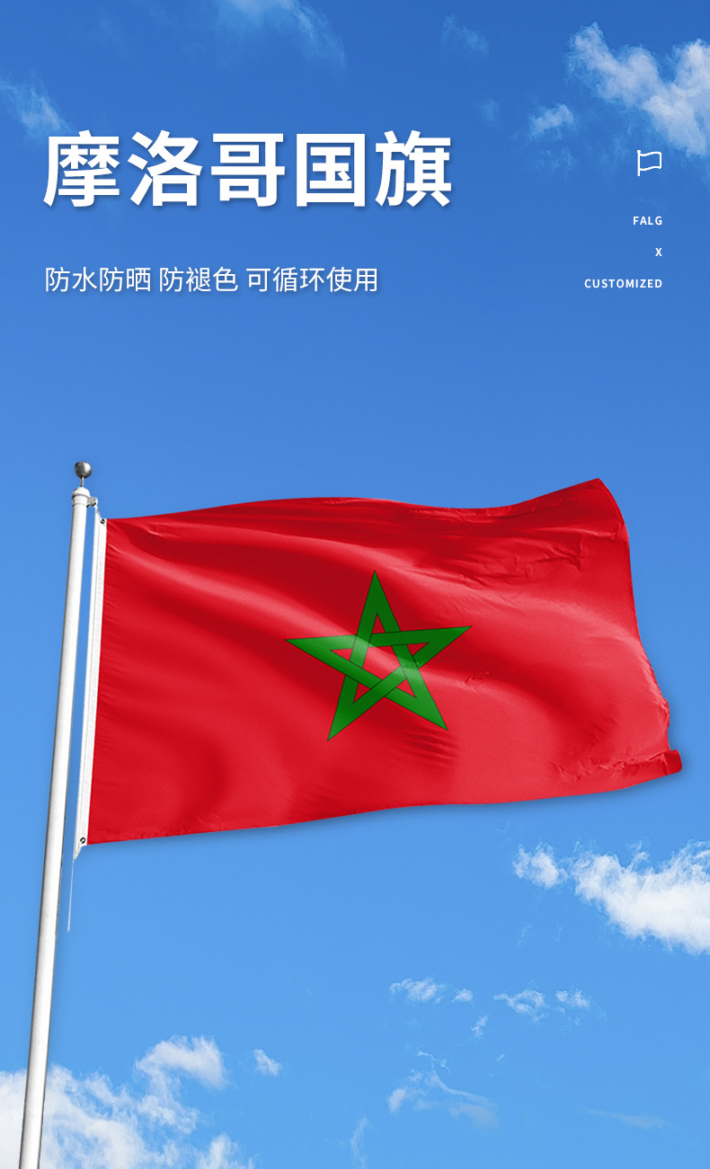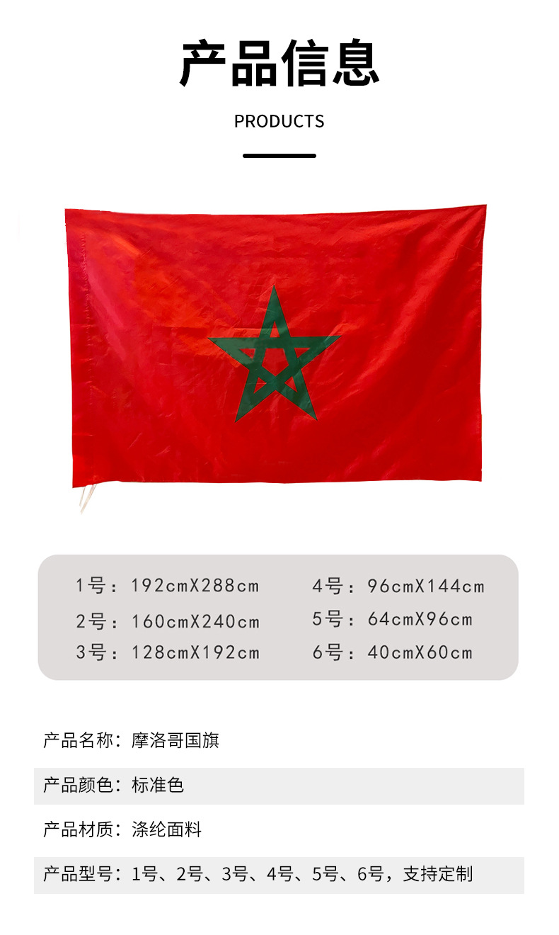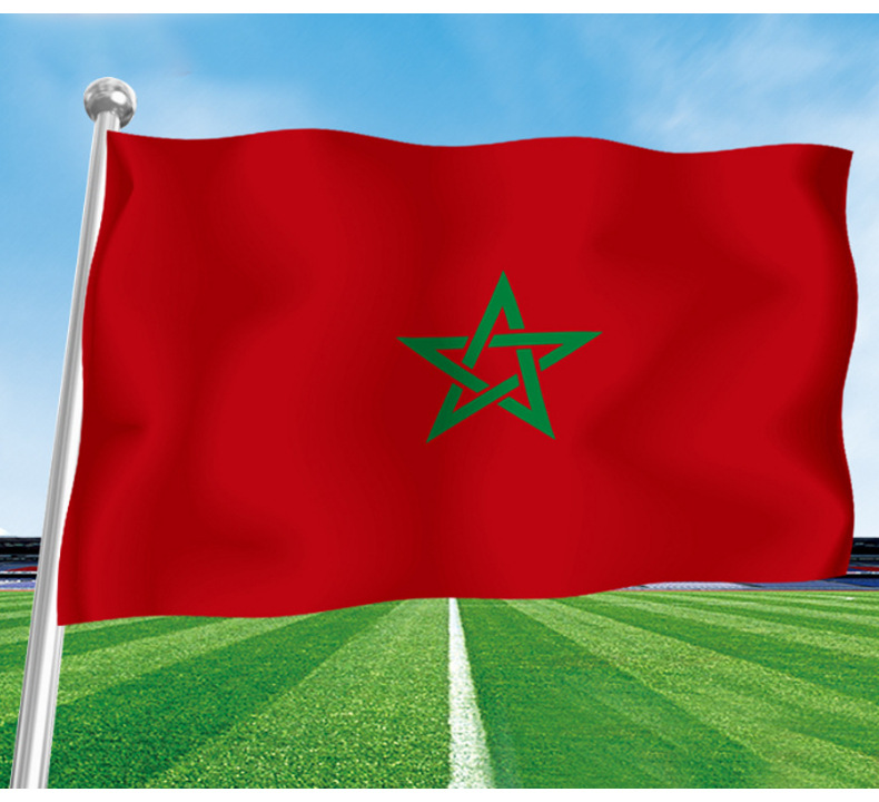 Bandera de la Copa del Mundo de tamaño completo Bandera Marroquí Elecciones al aire libre Celebración Bandera de poliéster Fabricante al por mayor