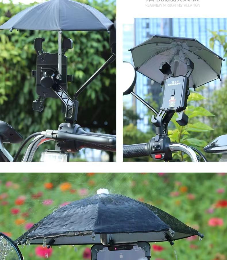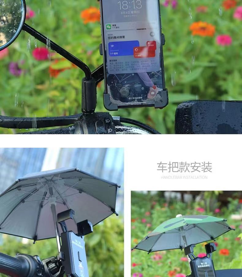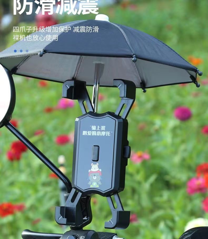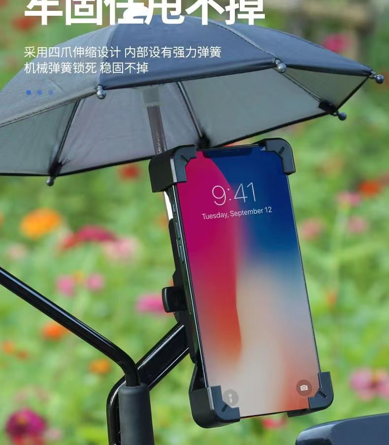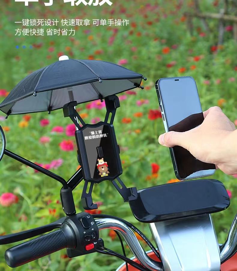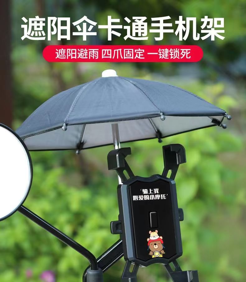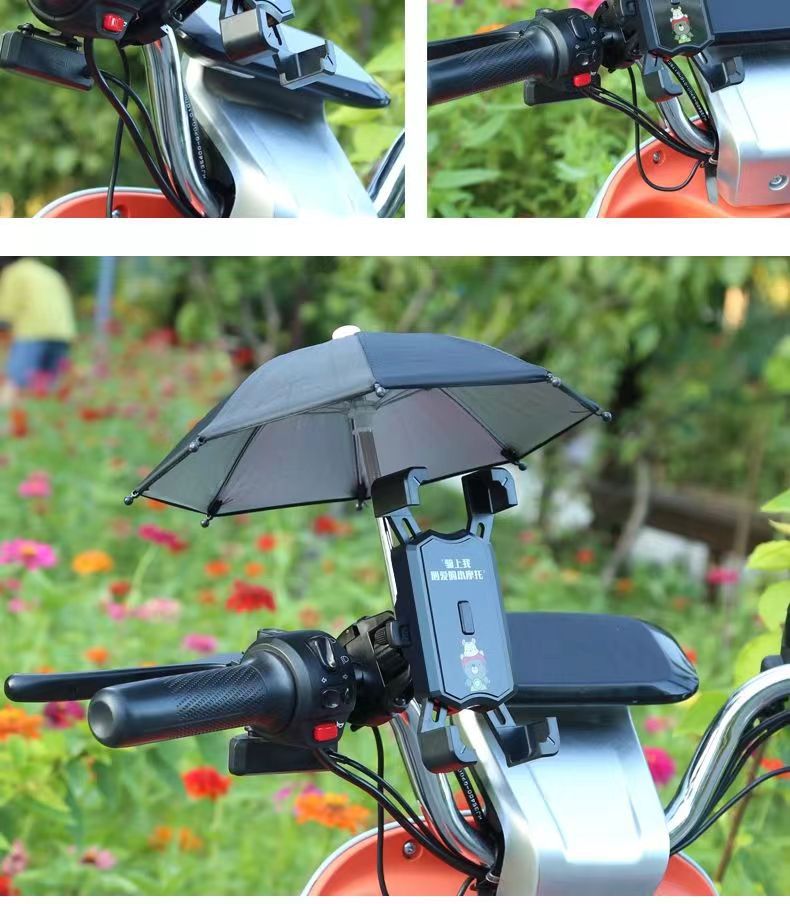 Soporte de teléfono móvil de coche de batería eléctrica con paraguas lindo soporte de navegación a prueba de golpes para llevar soporte de teléfono móvil de bicicleta