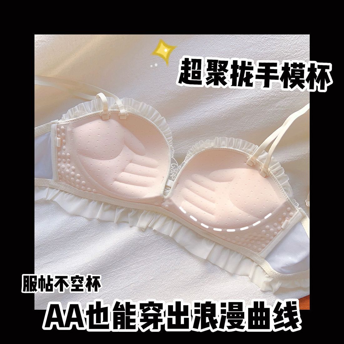 Ropa interior, pechos pequeños para mujer, engrosamiento, encaje sexy, sin anillo de acero, ajuste anti-flacidez para estudiantes, traje de sujetador