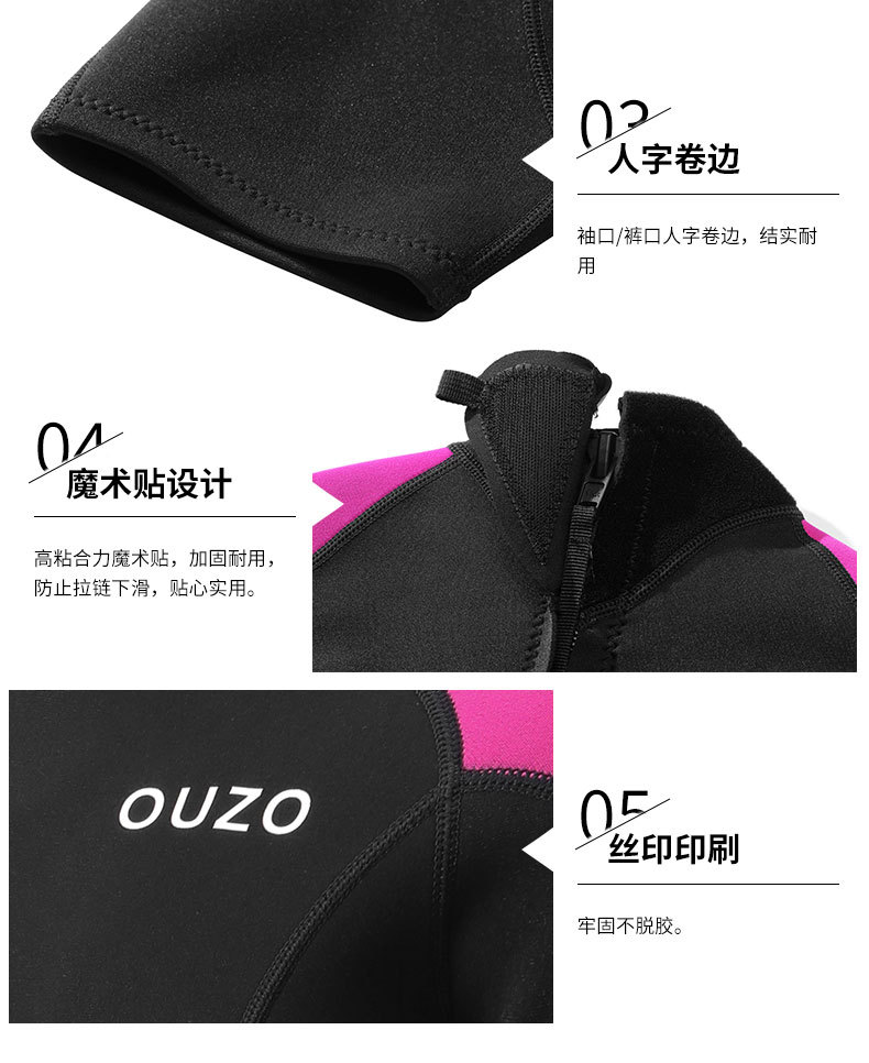 Traje de buceo de una pieza OUZO de 1.5mm para mujer, manga corta, protección solar y cálido, para surf y snorkel, traje de buceo engrosado para buceo libre