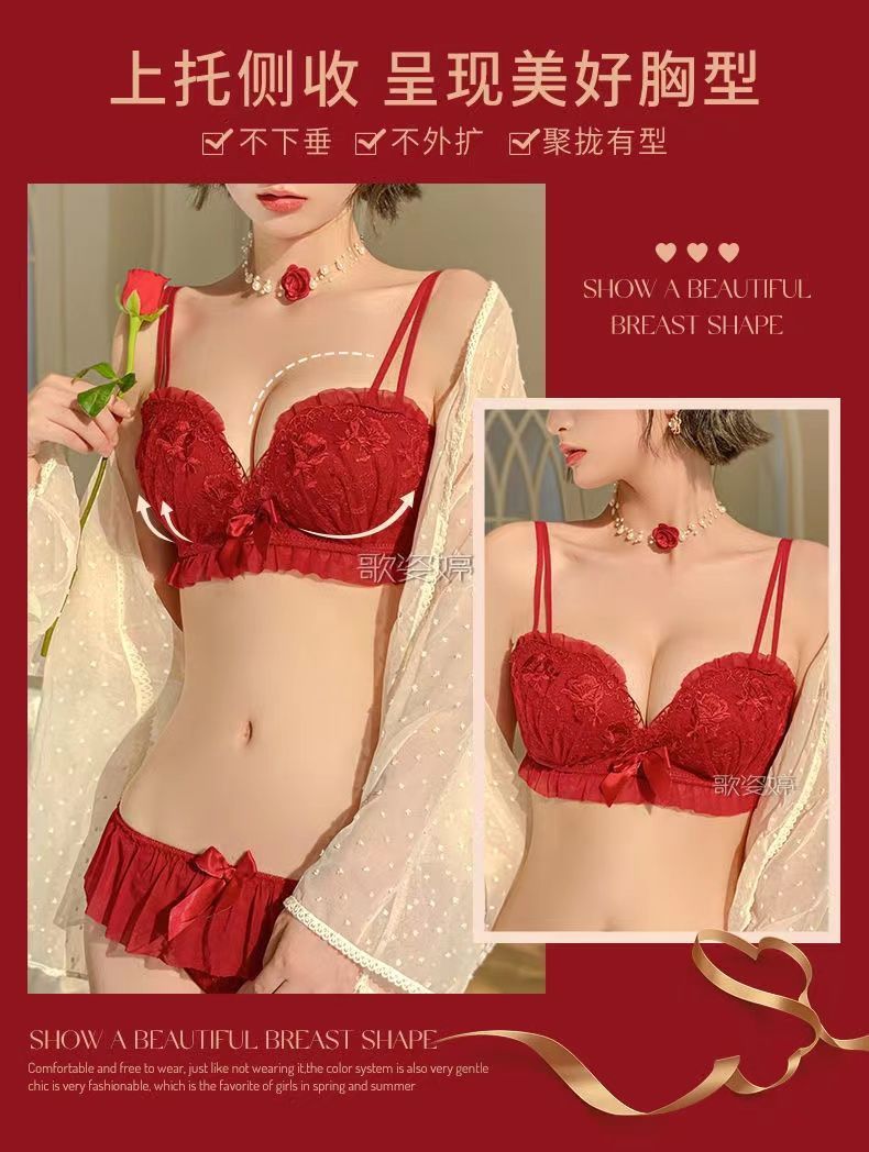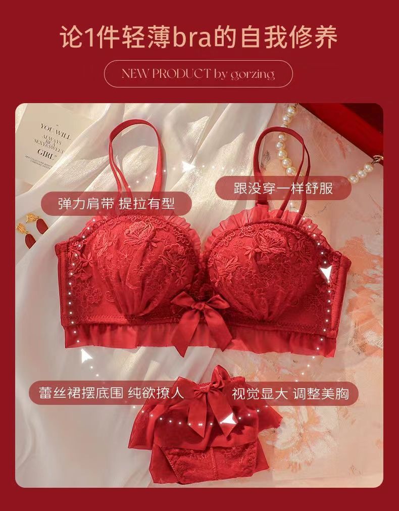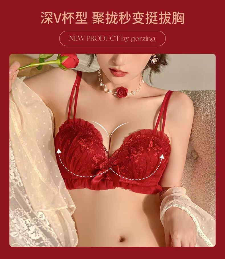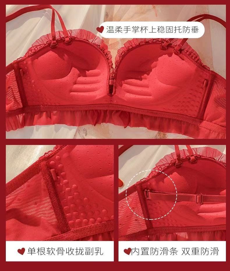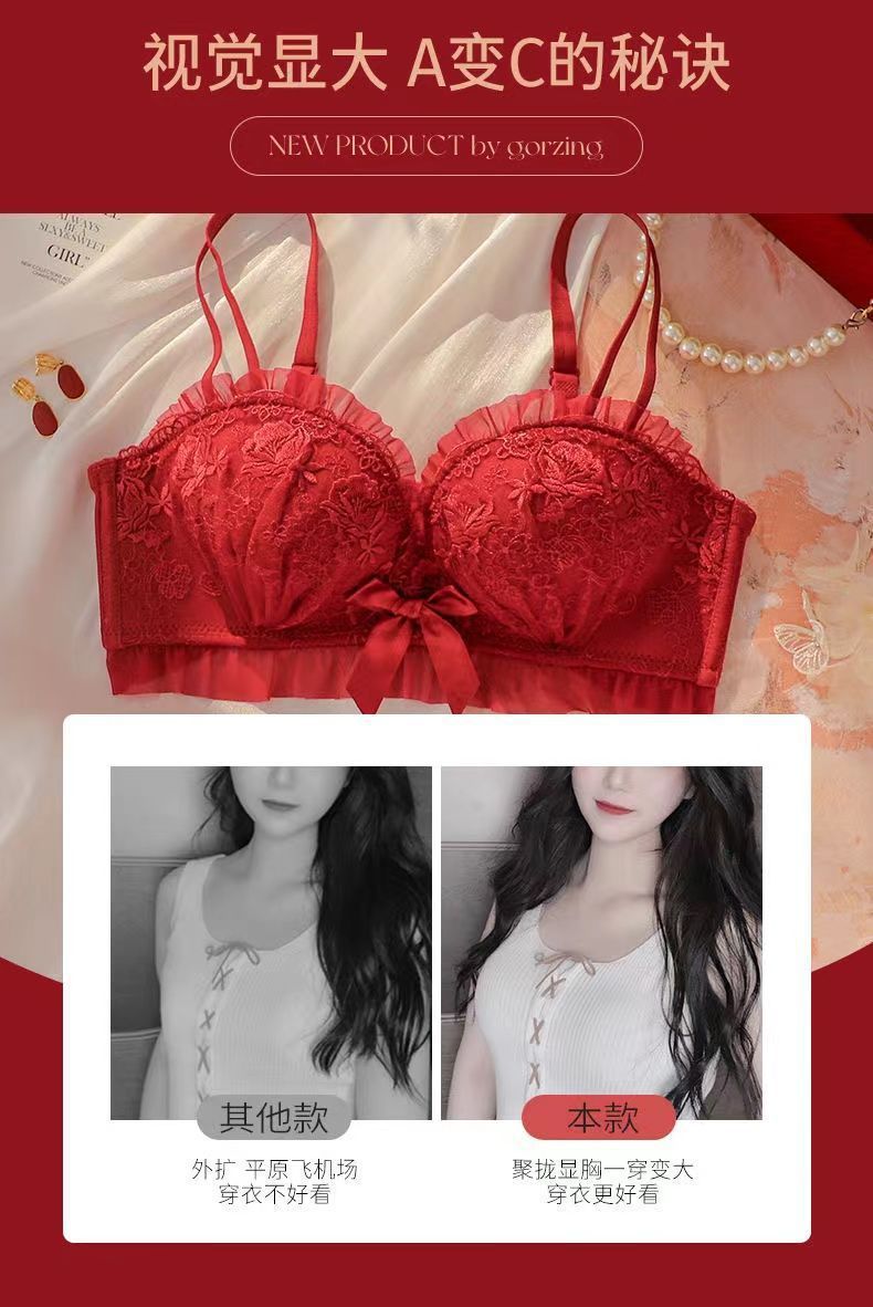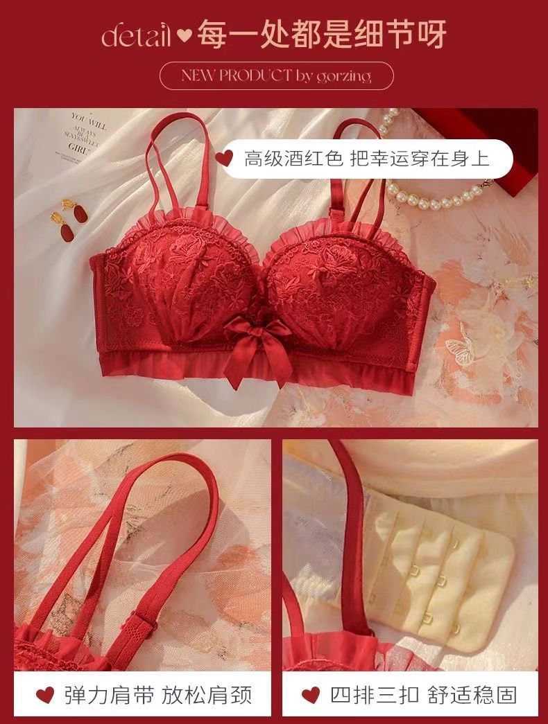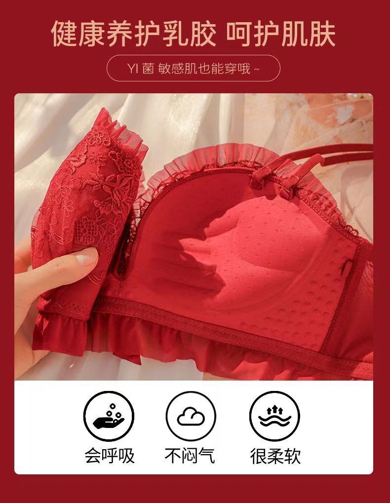 Año de conejo rojo ropa interior de las mujeres pequeño pecho push up mama colección anti-flacidez boda novia sujetador nacimiento año traje
