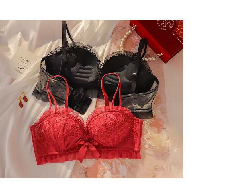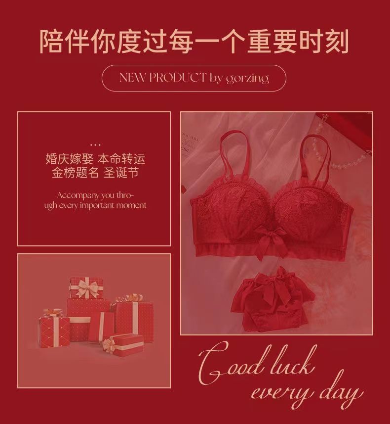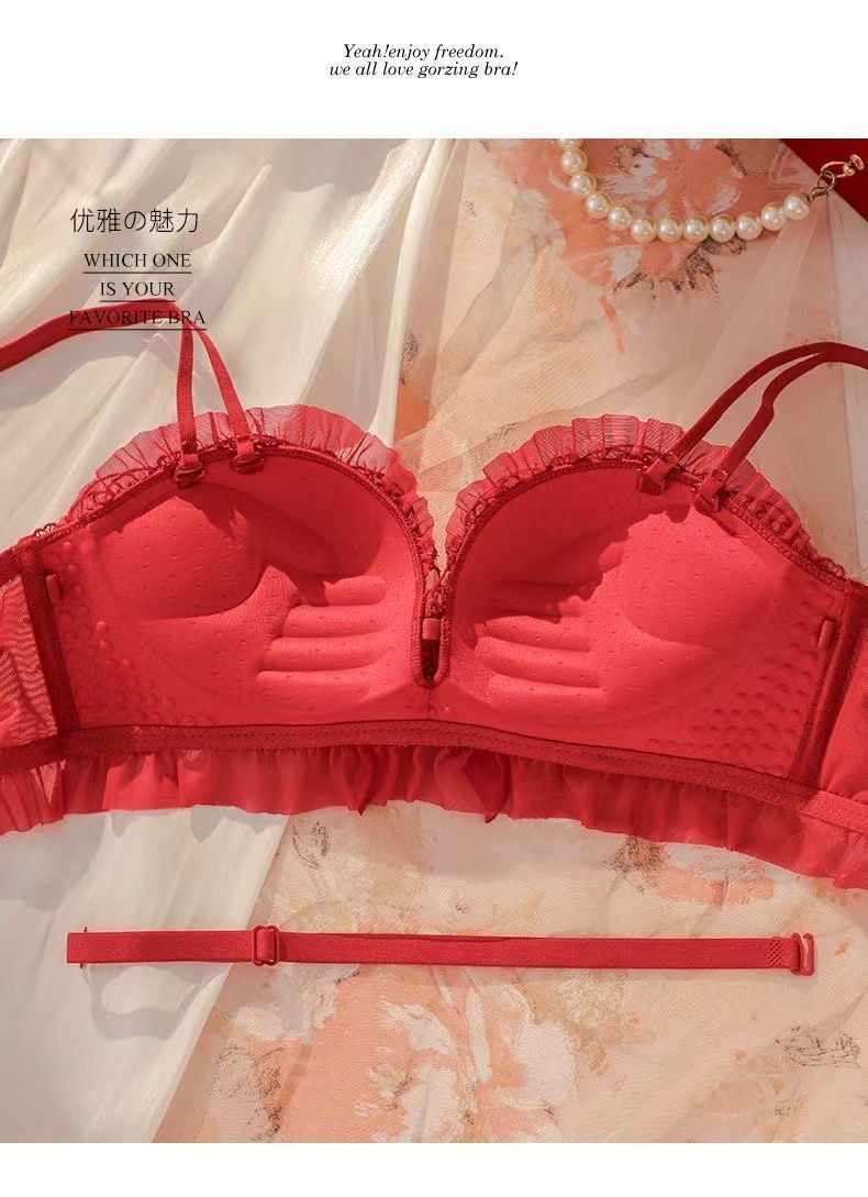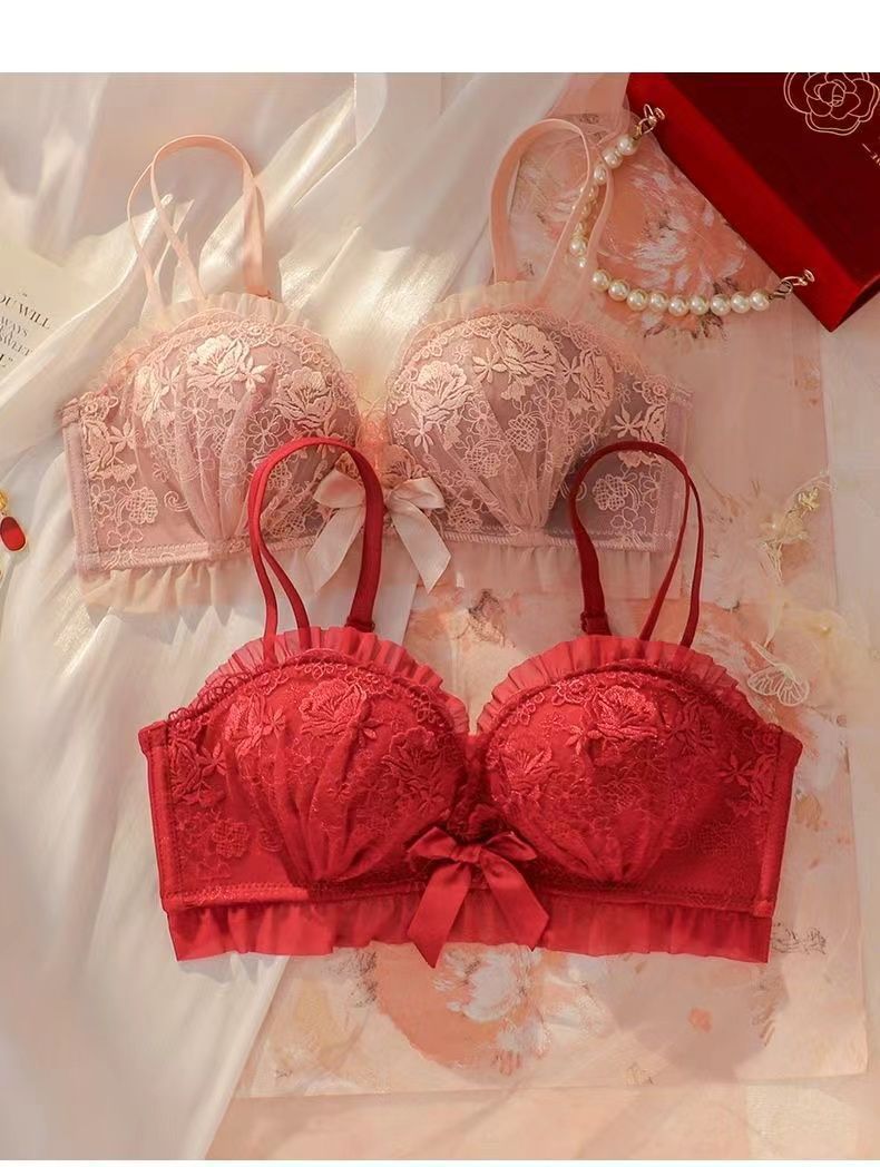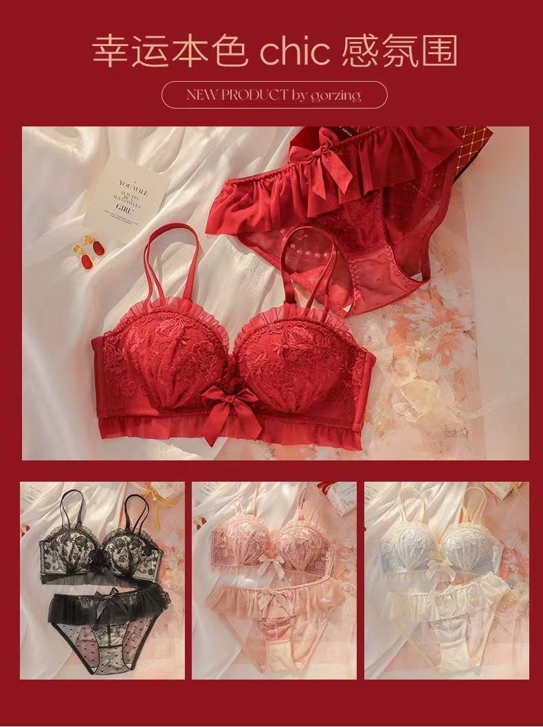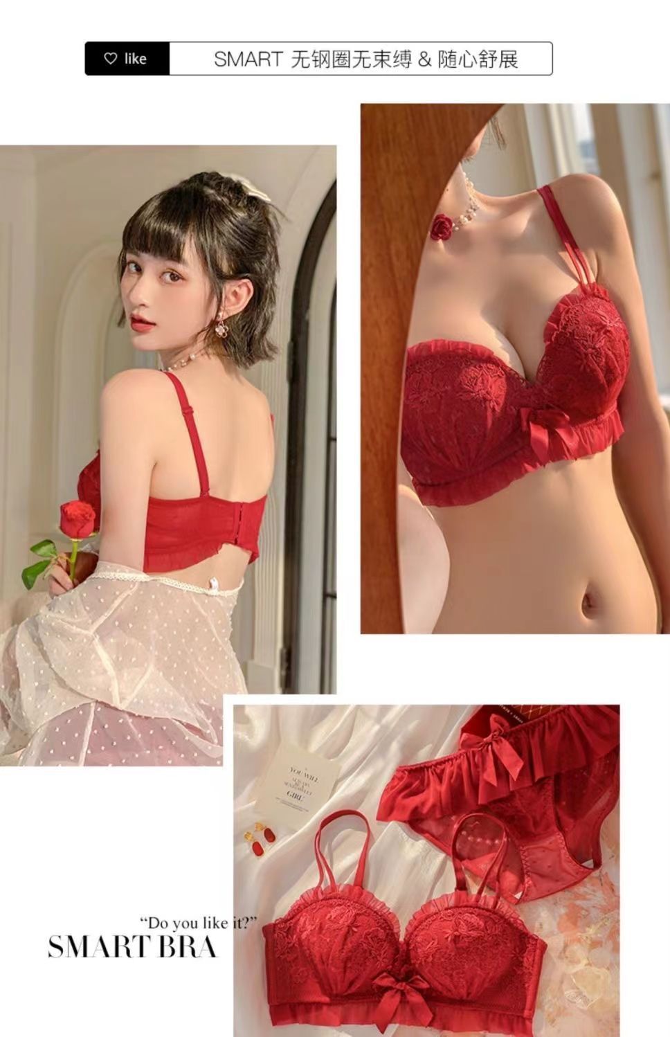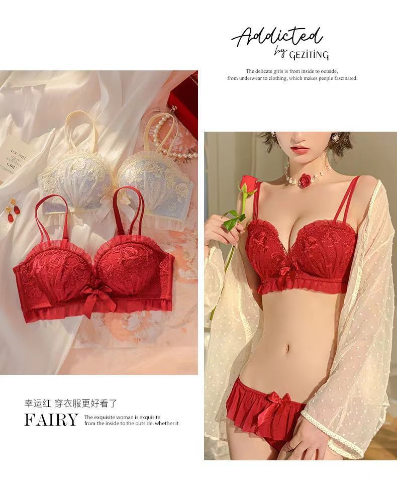 Año de conejo rojo ropa interior de las mujeres pequeño pecho push up mama colección anti-flacidez boda novia sujetador nacimiento año traje