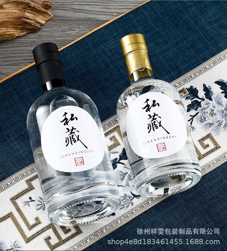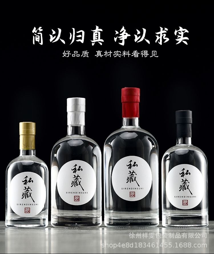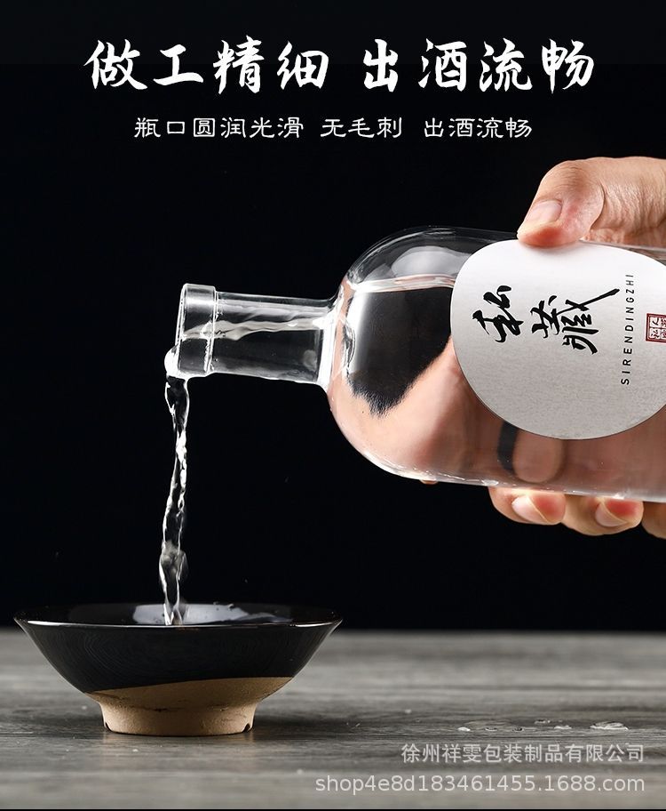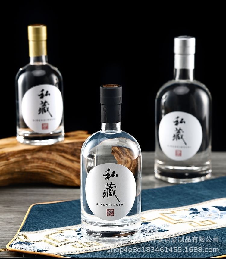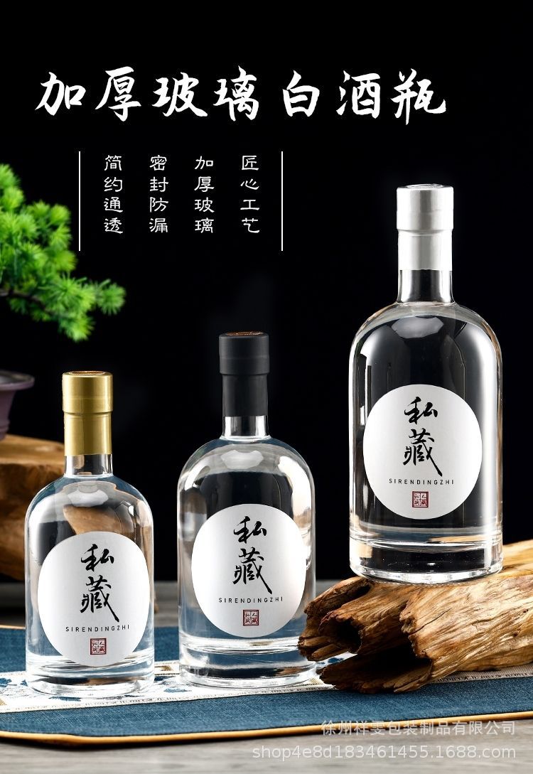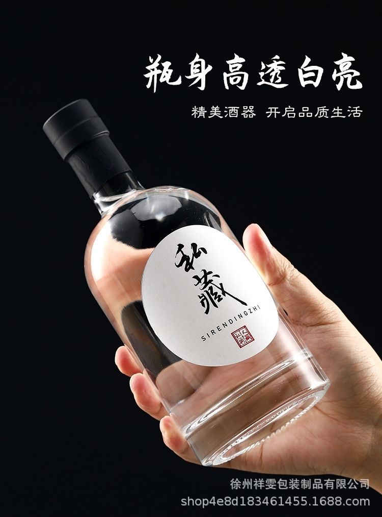 Botella de vino de alta gama al por mayor botella de vino de vidrio especial botella de vino blanco botella de vodka botella de vidrio esmerilado transparente de una libra