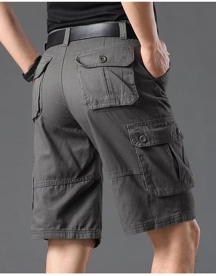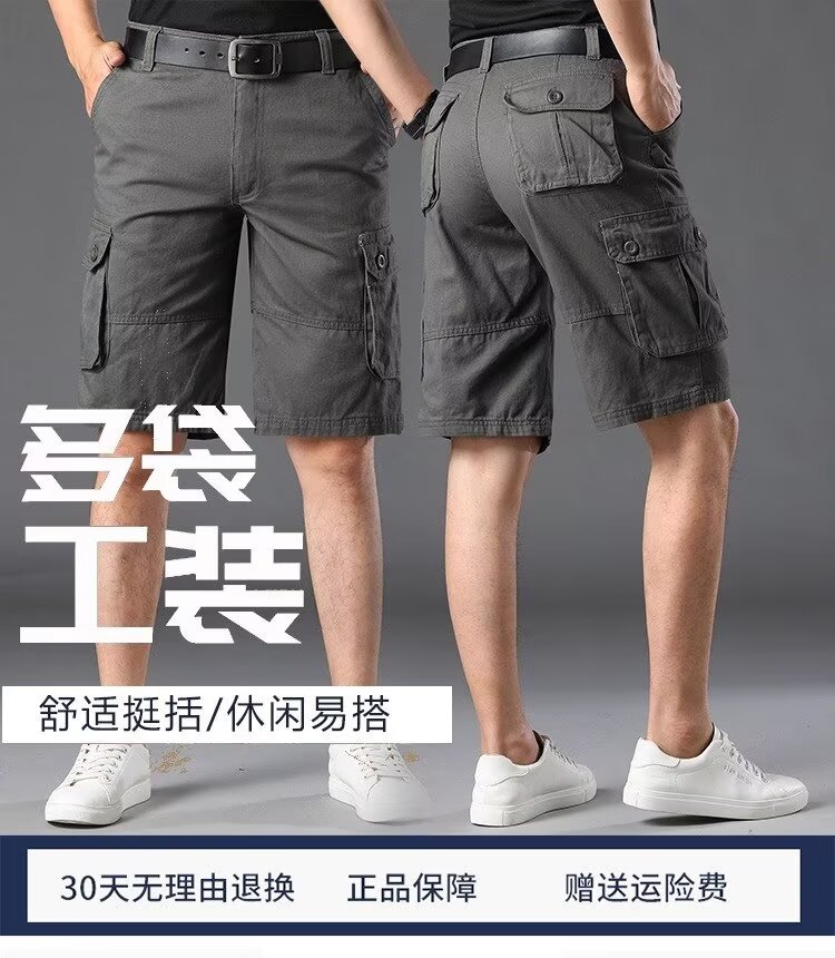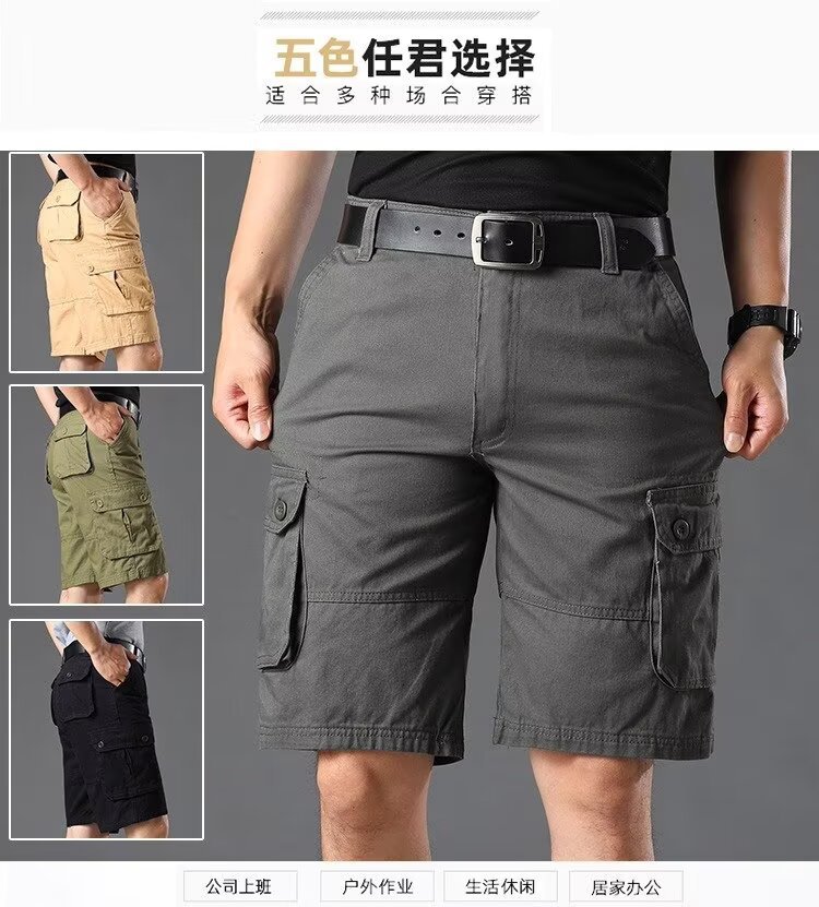 Inventario de verano pantalones cortos sueltos de bolsillo pantalones de herramienta de moda pantalones elásticos de cinco puntos pantalones casuales delgados para hombres