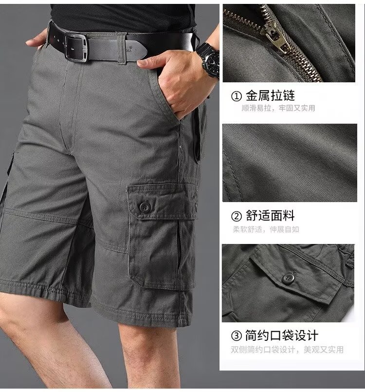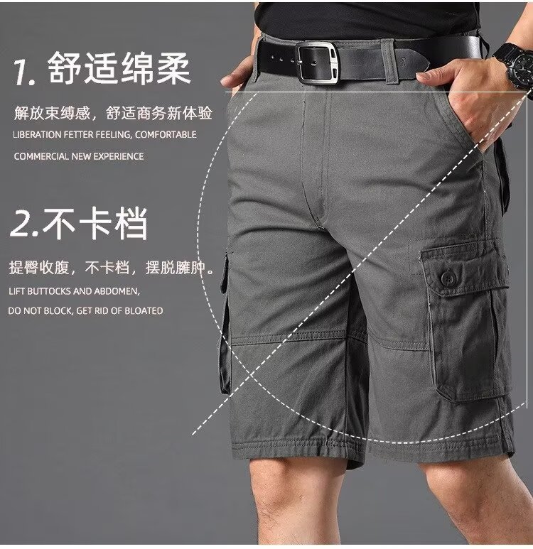 Inventario de verano pantalones cortos sueltos de bolsillo pantalones de herramienta de moda pantalones elásticos de cinco puntos pantalones casuales delgados para hombres