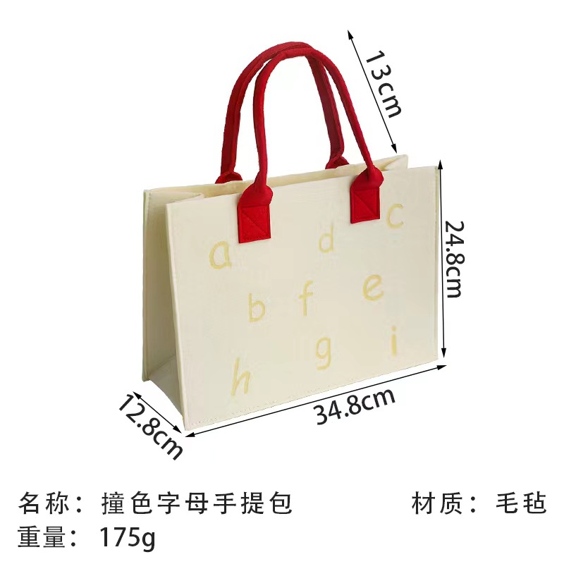 Bolsa de letras de fieltro grande, bolsa de fieltro portátil de gran capacidad, bolsa de almacenamiento para viajes