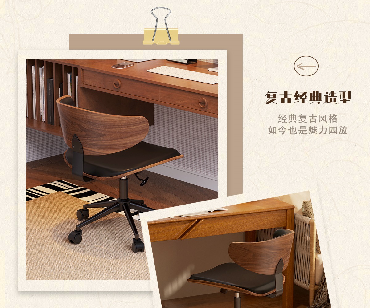 Silla de computadora de estilo medieval sala de estudio doméstica silla de respaldo de oficina elevable silla de escritorio giratorio silla de madera maciza silla imes
