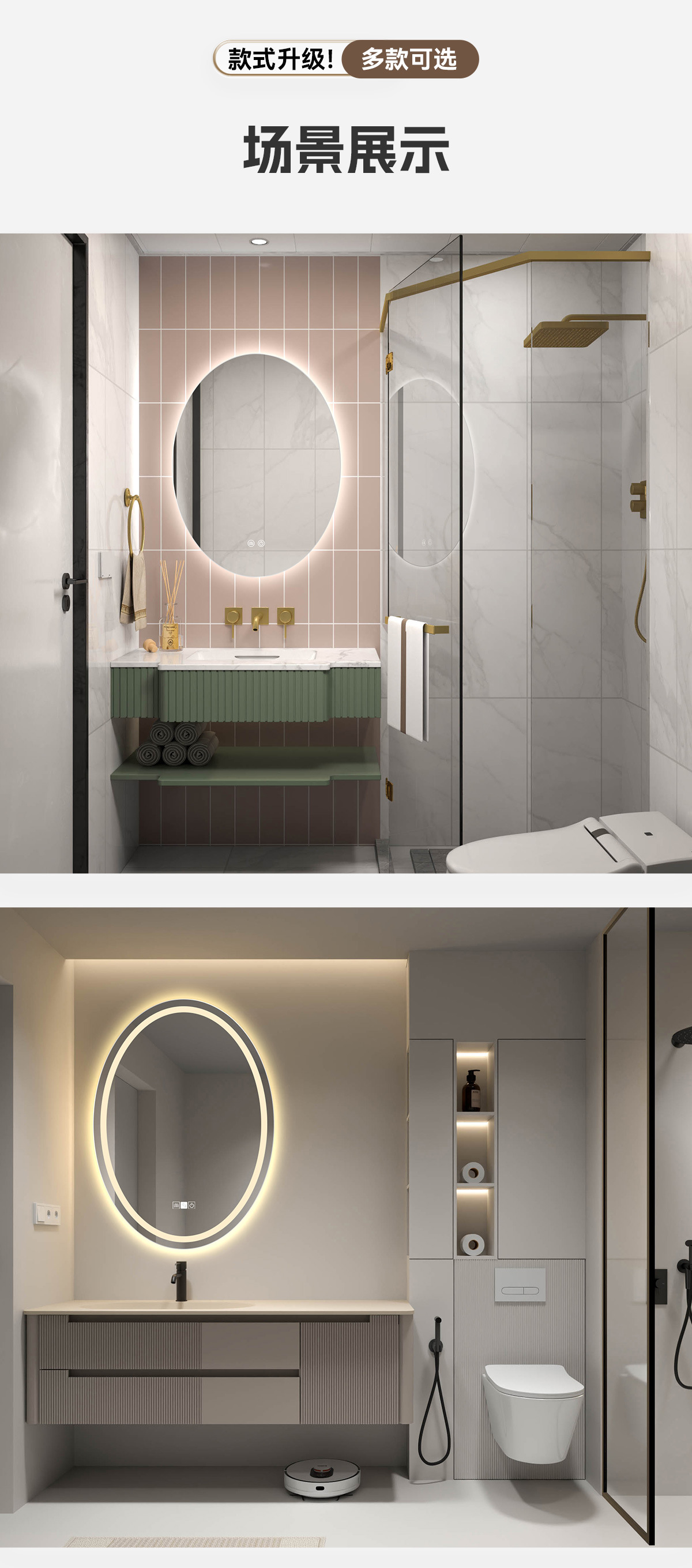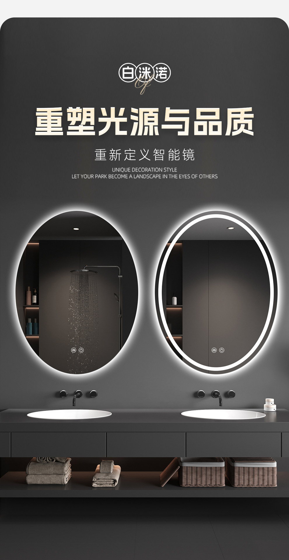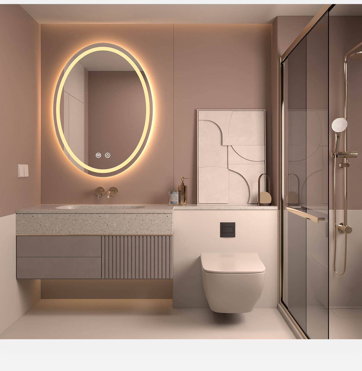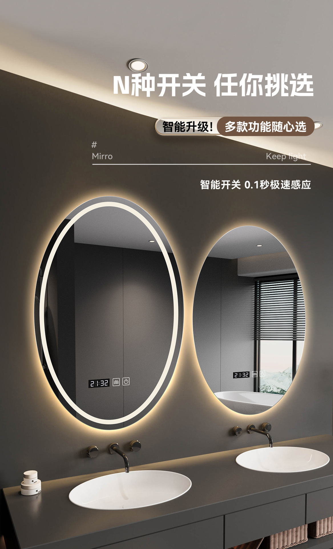 Espejo ovalado para baño, espejo de tocador montado en la pared, espejo de maquillaje para tocador con luz y desempañador, espejo para baño