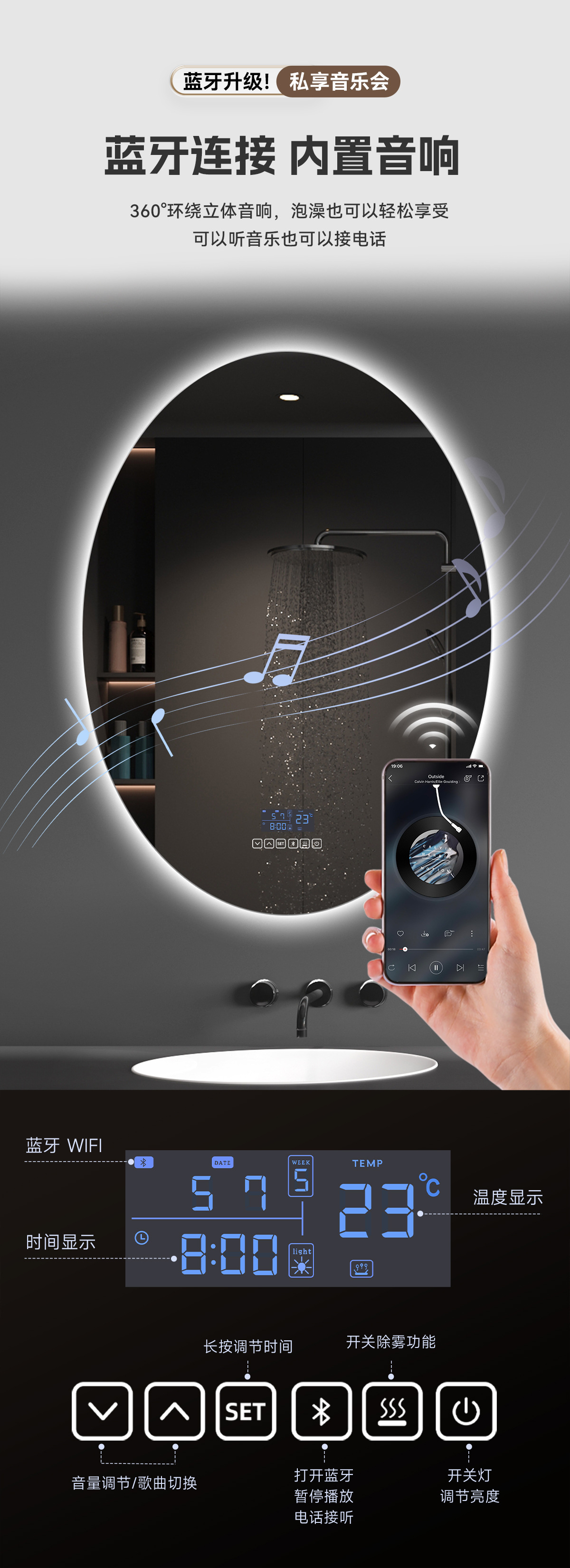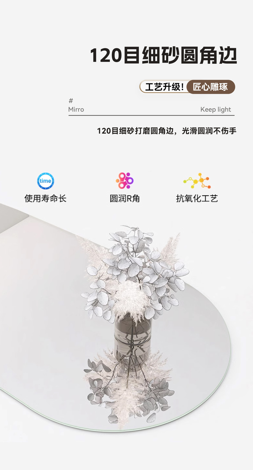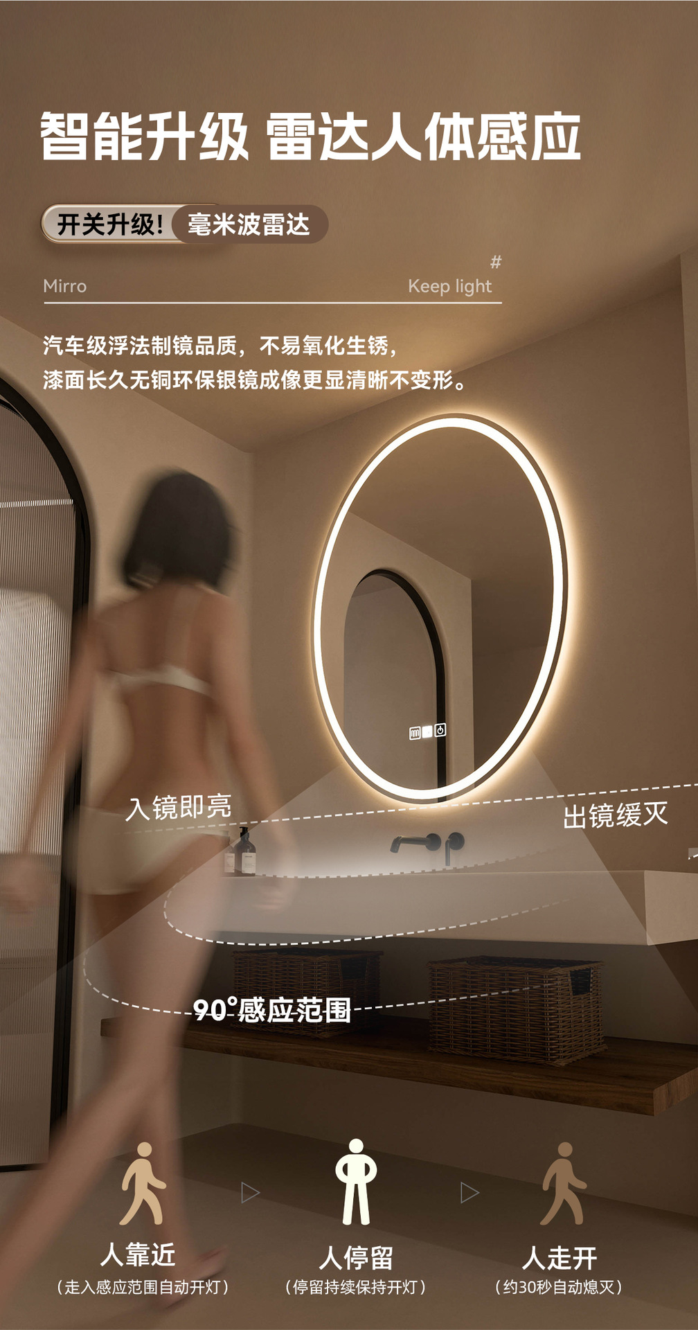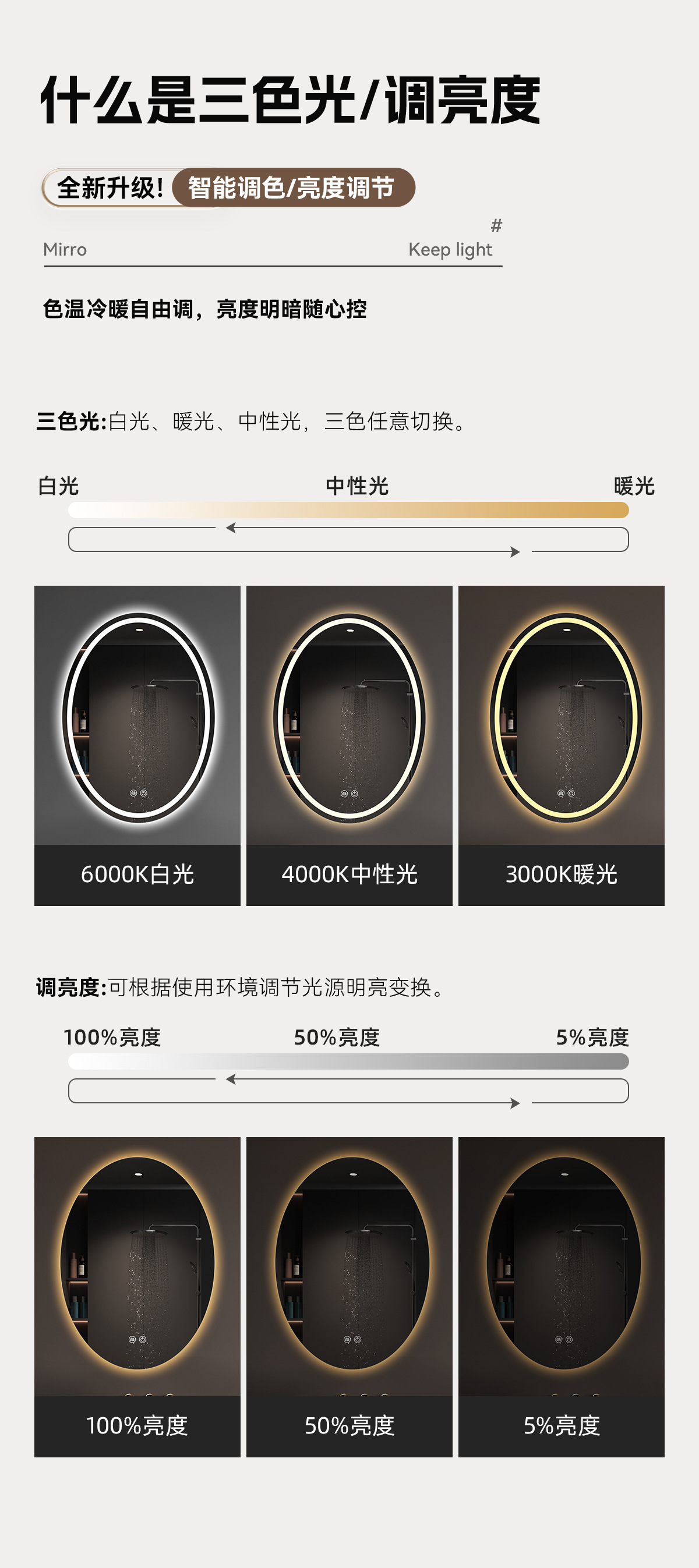 Espejo ovalado para baño, espejo de tocador montado en la pared, espejo de maquillaje para tocador con luz y desempañador, espejo para baño