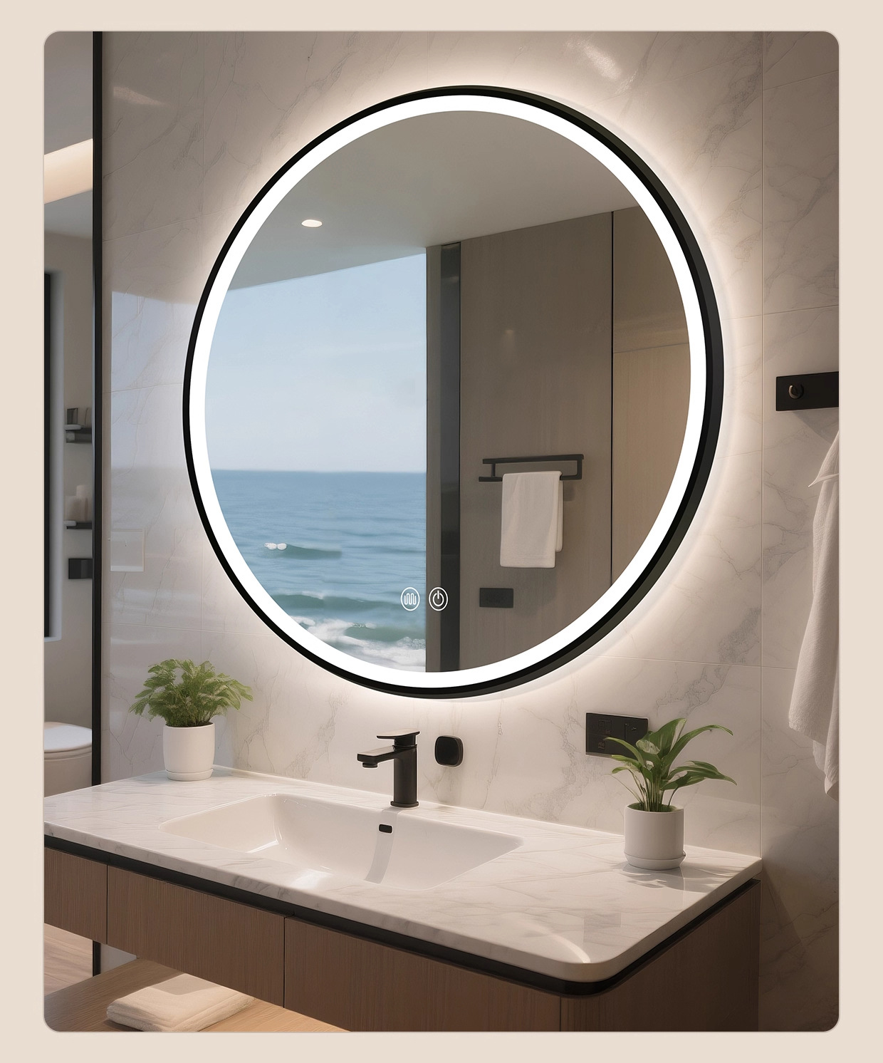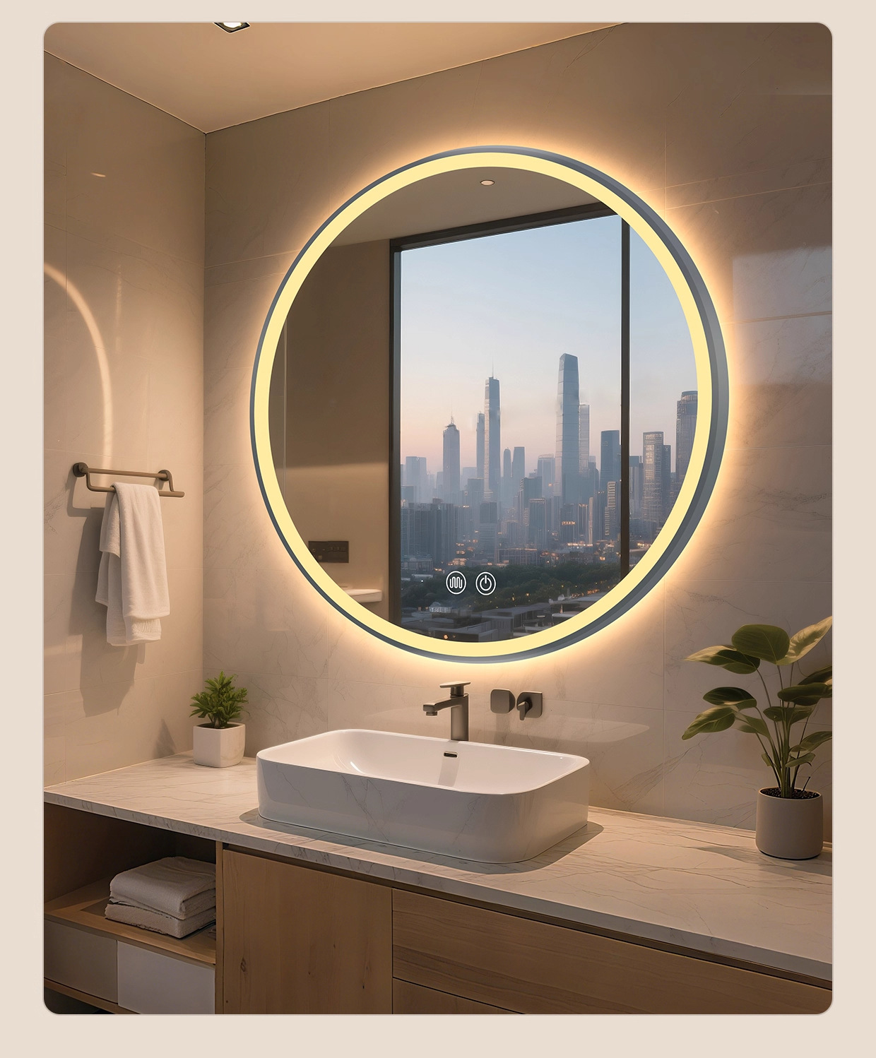 Espejo de baño inteligente Espejo circular Espejo de pantalla táctil Espejo luminoso Espejo de maquillaje montado en la pared Espejo de maquillaje anti-fog