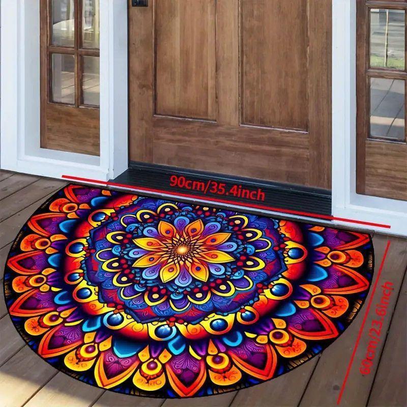 Alfombra de entrada semicircular estilo americano vintage de Amazon Temu, alfombra de terciopelo cristalino, resistente a la suciedad, a prueba de polvo, fácil de mantener.