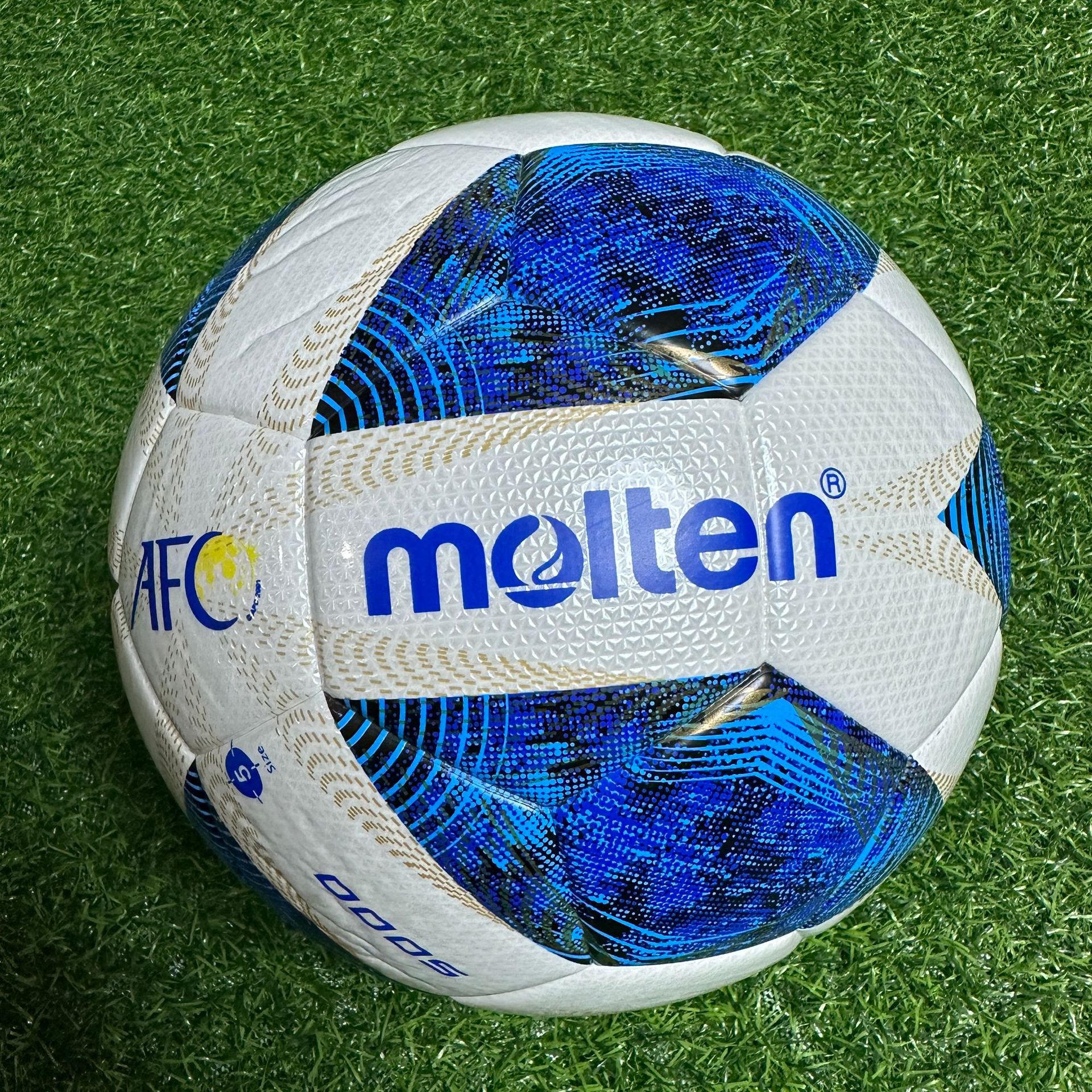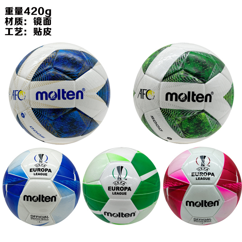 Balón de Fútbol Molten Derby Star, Tamaño Regular 5, Cosido a Máquina, Resistente al Desgaste, para Entrenamiento Deportivo y Competición, Cuero Especial Suave con Superficie de Espejo