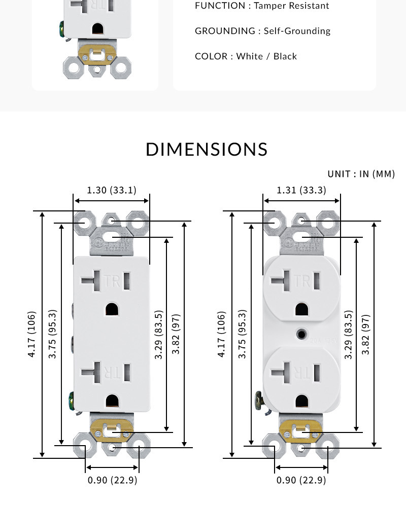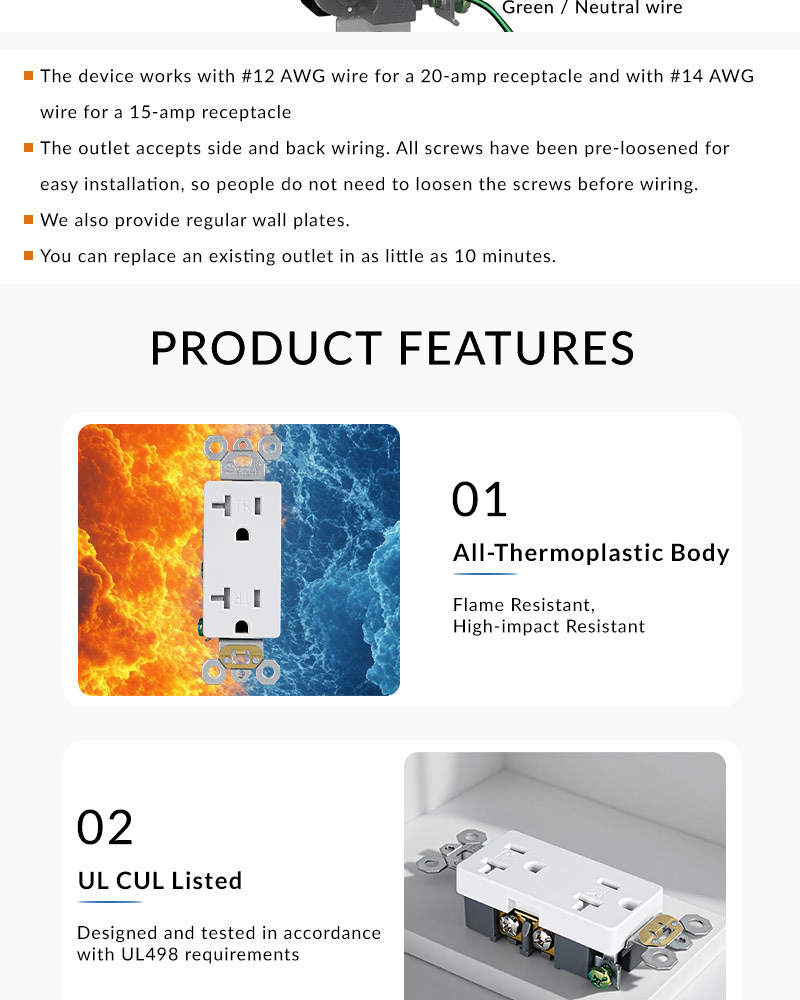 Enchufe estándar americano de la serie norteamericana Enchufe blanco doméstico estándar americano con TR 20A 125V Enchufe de pared estándar americano UL