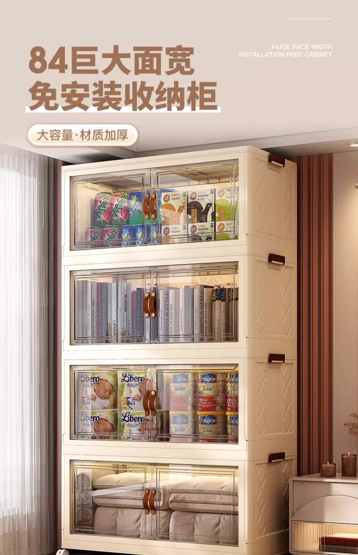 Armario de almacenamiento multicapa sin instalación para dormitorio, organizador de juguetes y aperitivos, estantería de almacenamiento sin necesidad de taladrar.