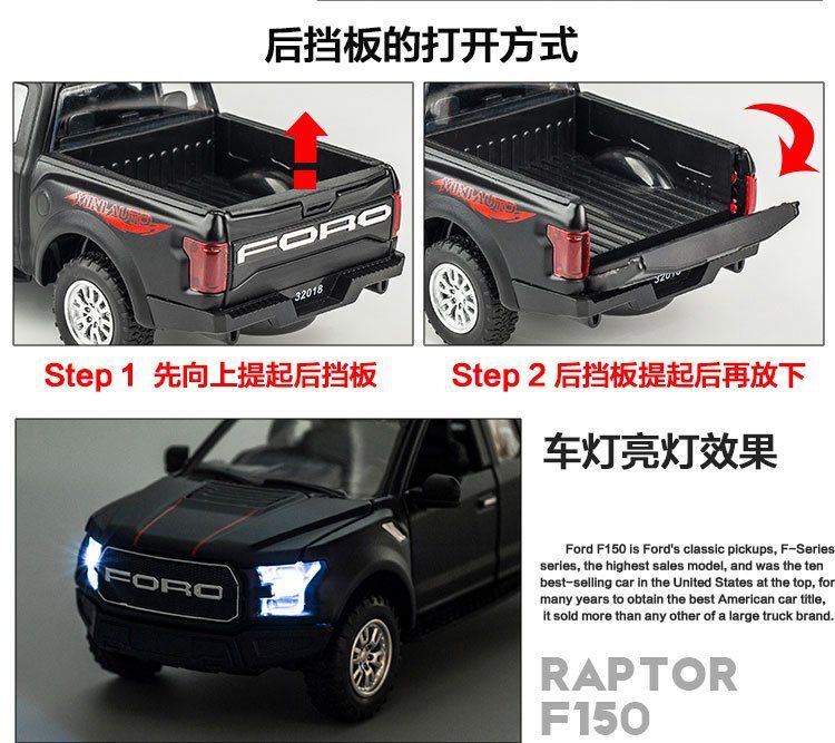 Camioneta Ford Raptor de aleación, modelo de simulación con sonido y luz, juguete para niños con función de retroceso, versión mejorada.