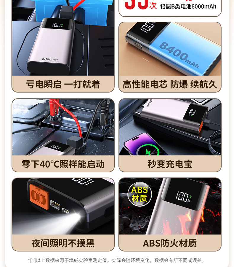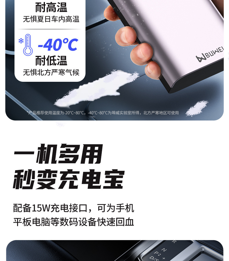 | Clasificación de colores | Buwei cyx qs001 znjpt fuente de alimentación de arranque puro 10400mah plata, fuente de alimentación de emergencia neutral qs001 10000 ma clip inteligente plateado (versión en inglés), fuente de alimentación de emergencia neutral qs001 6000 ma clip inteligente negro (versión en inglés), fuente de alimentación de emergencia de Buwei qs001 6000 ma clip general negro |