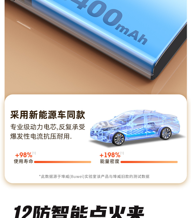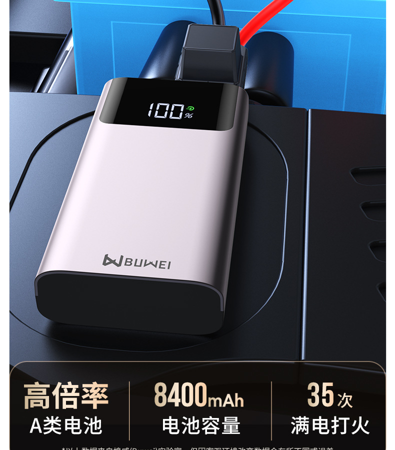 Batería de potencia de arranque de emergencia para automóviles Buwei con arma de encendido eléctrica para carga de arranque de emergencia especial
