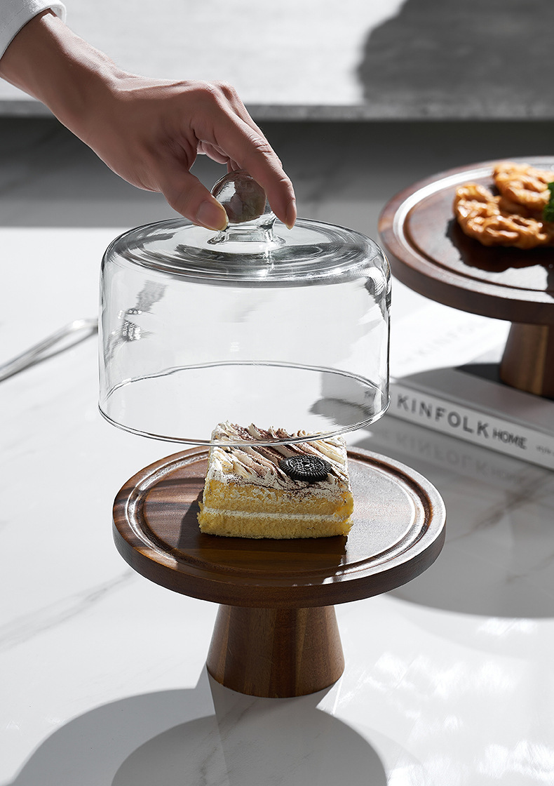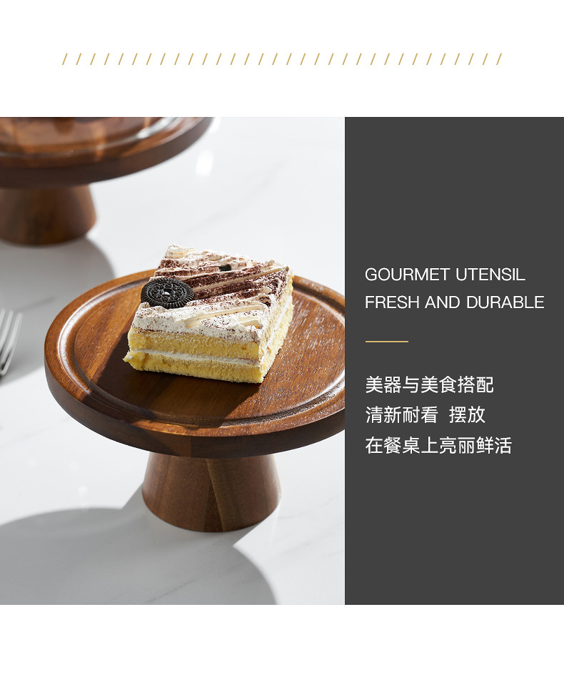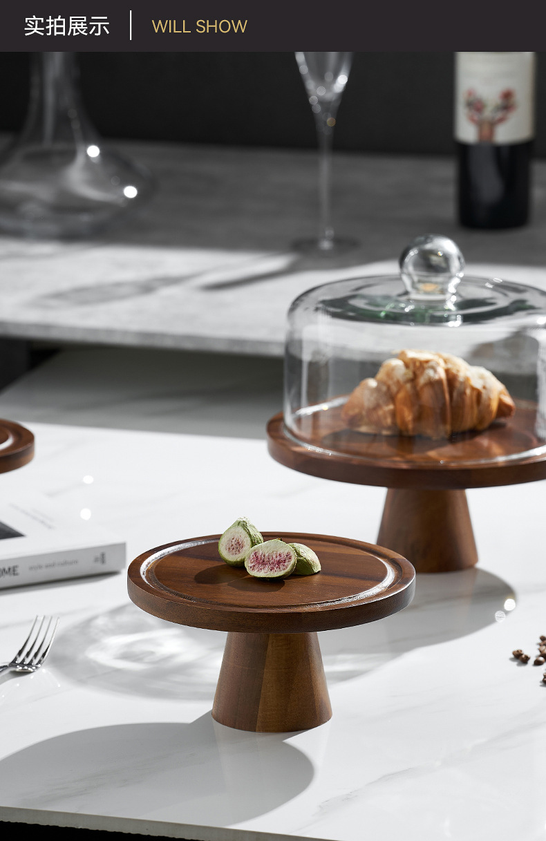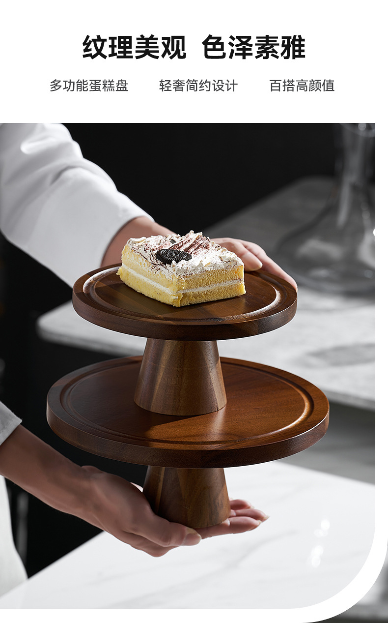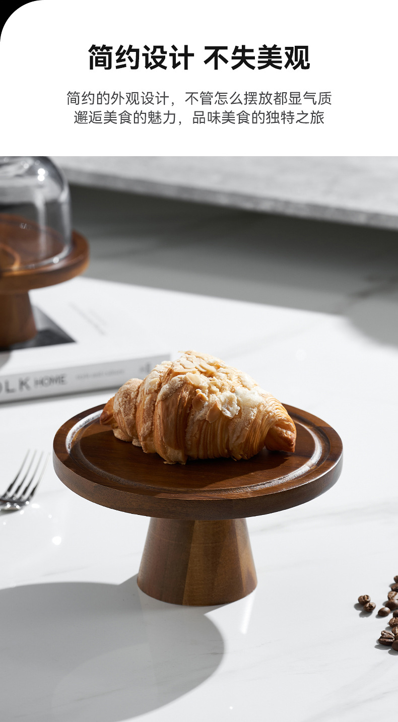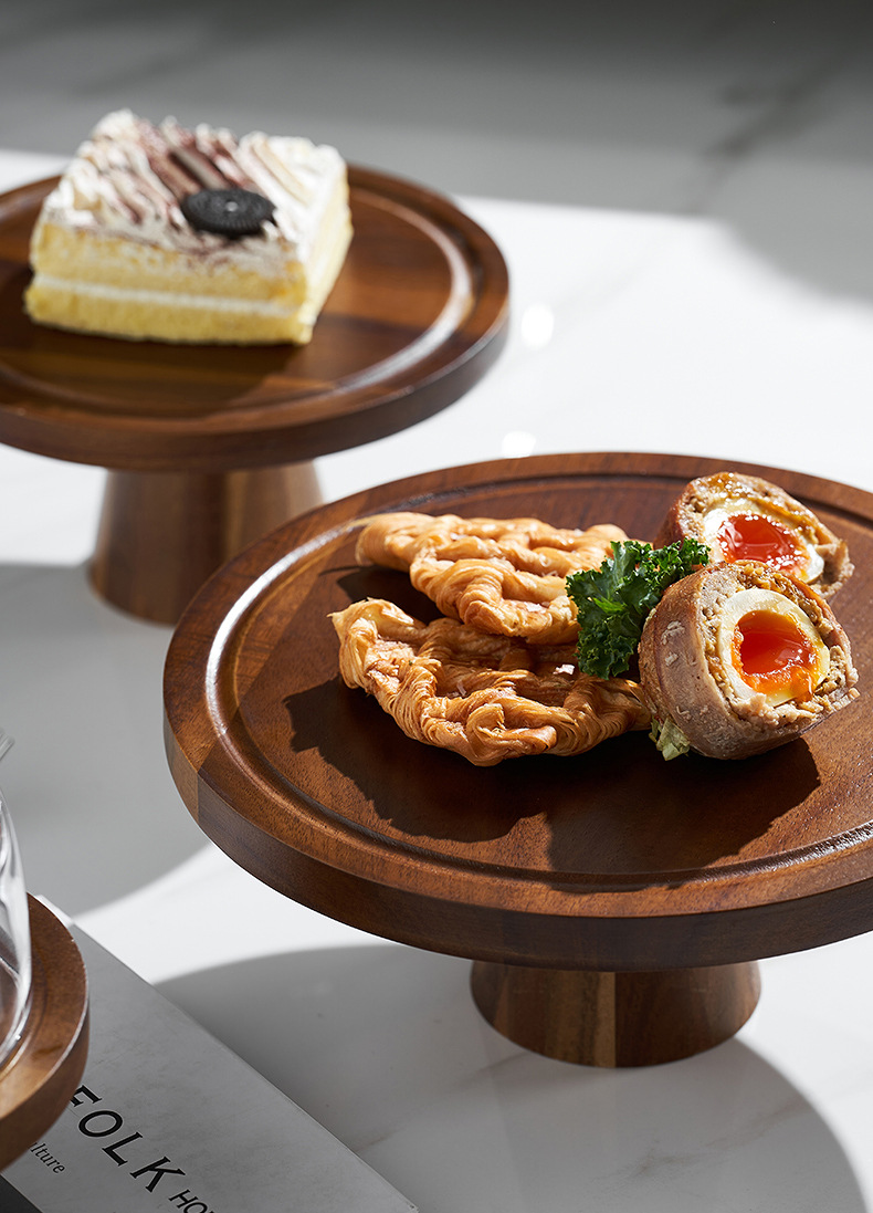 Vintage Acacia dulces dulces pan bandeja de bocadillos alta pie pastel estante sala de estar bandeja de frutas almacenamiento de bocadillos