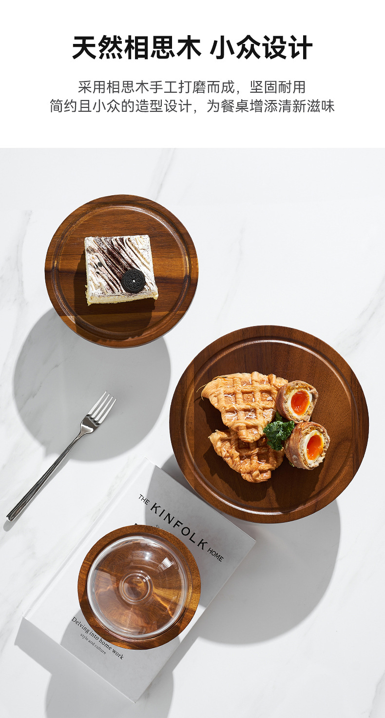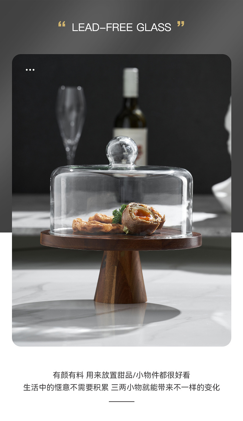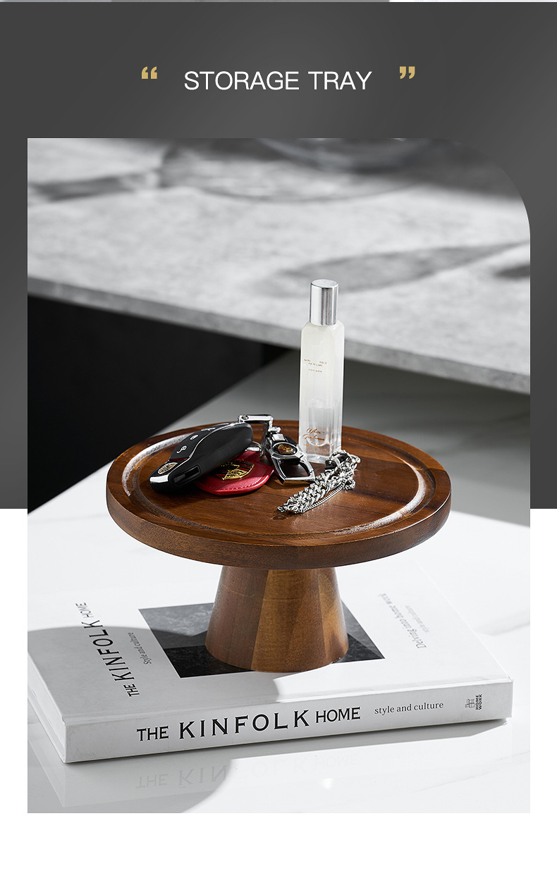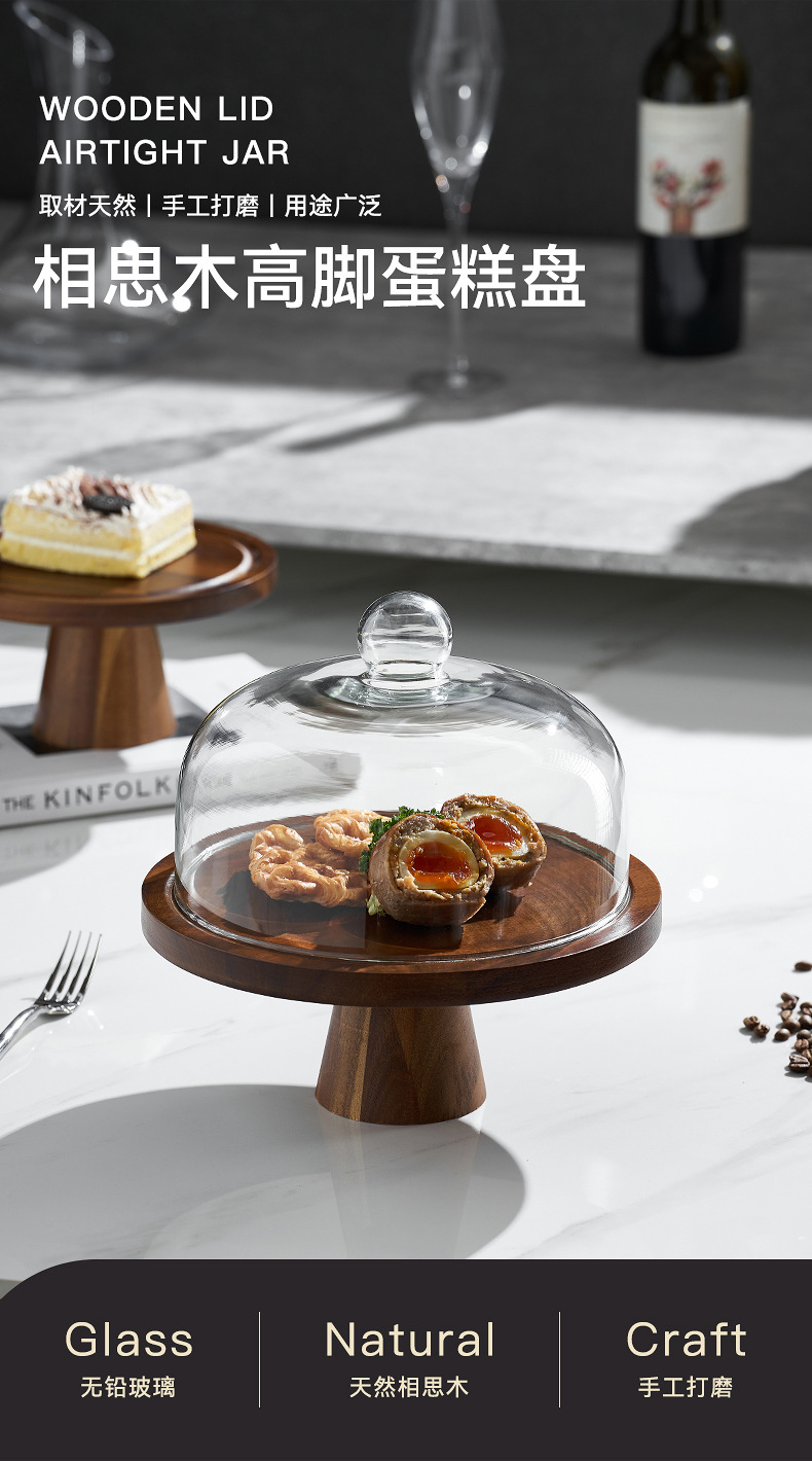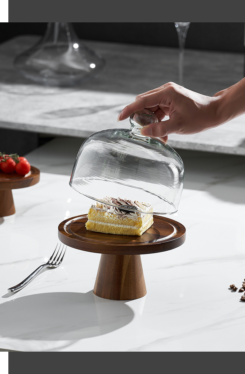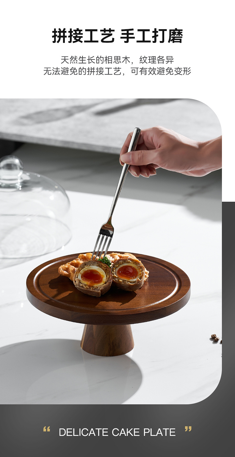 Vintage Acacia dulces dulces pan bandeja de bocadillos alta pie pastel estante sala de estar bandeja de frutas almacenamiento de bocadillos