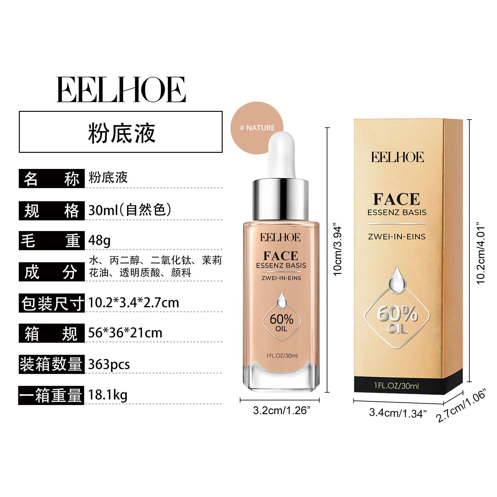 EELHOE facial exquisita base líquida para la piel de la piel de la piel de la protección de la piel no se quita el maquillaje, el maquillaje de la piel transparente, el tono de la piel más brillante