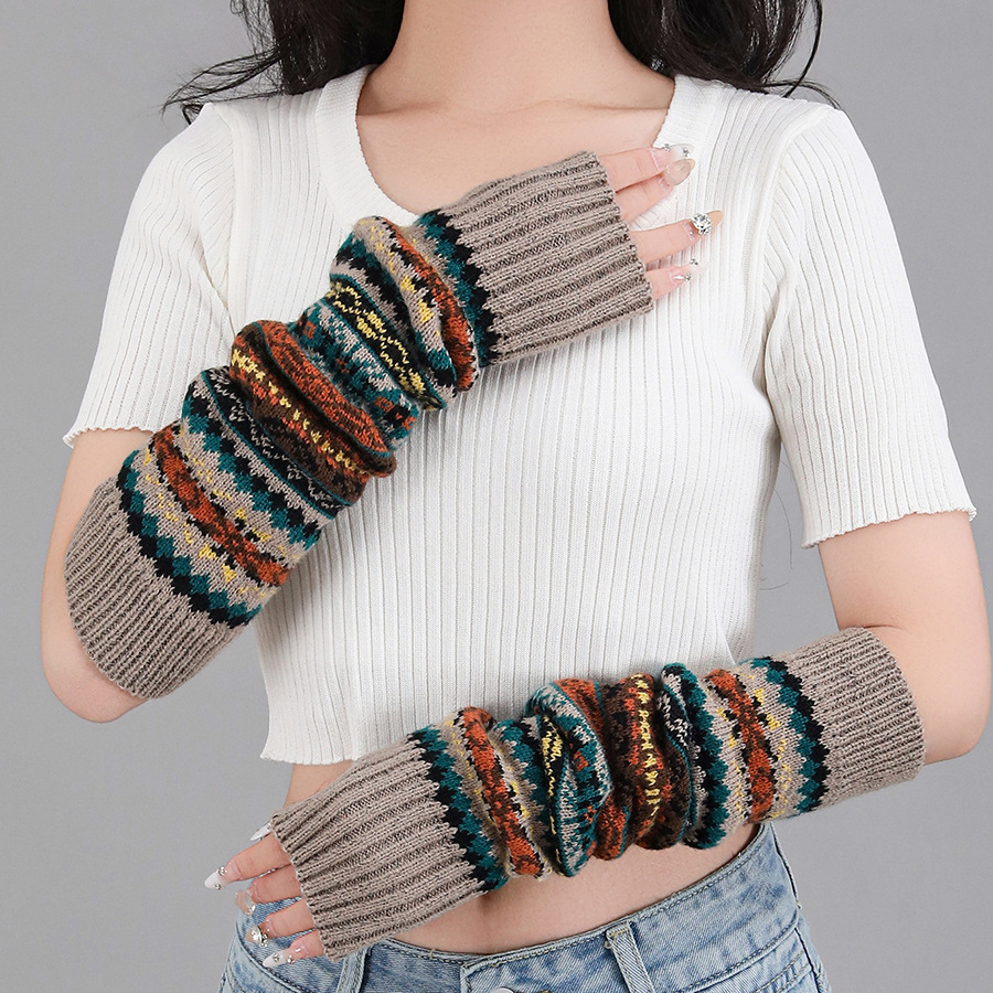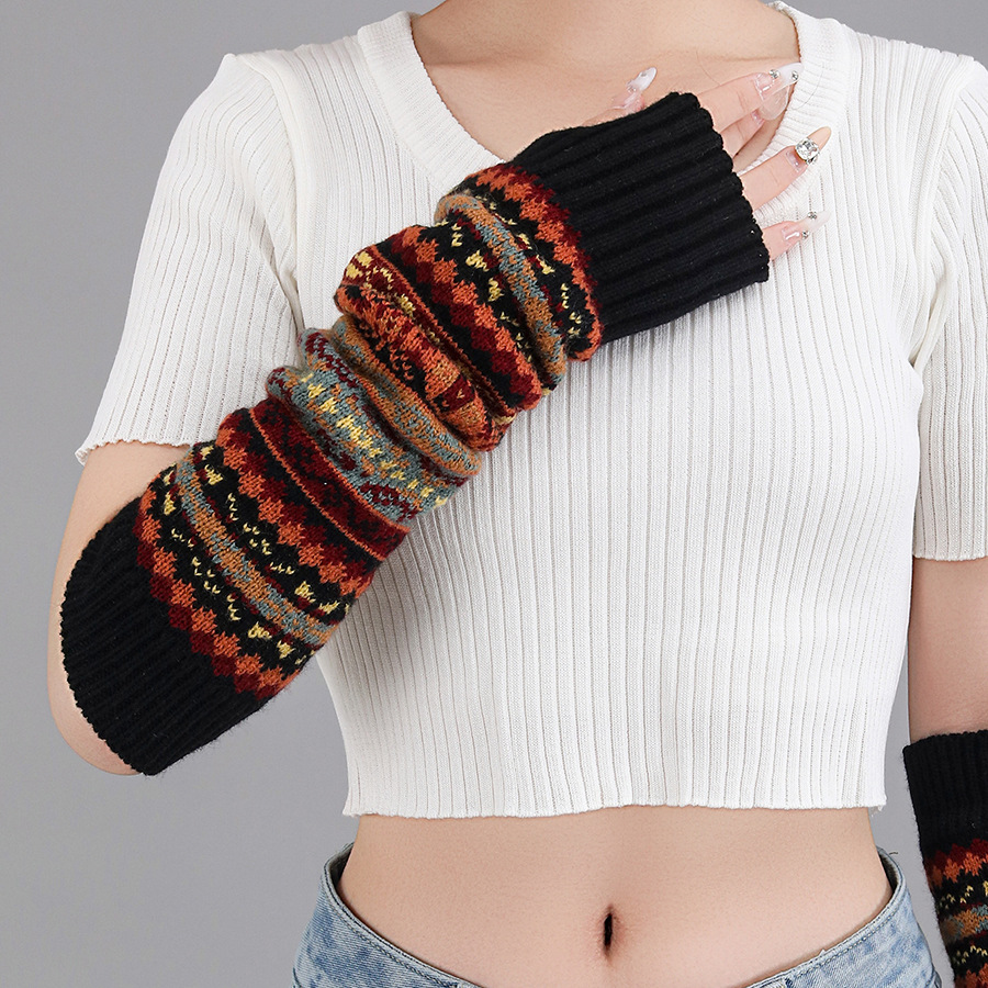 Calcetines de estilo bohemio engrosados de otoño e invierno, mangas de brazo para mujer, guantes de lana de punto sin dedos largos y cálidos