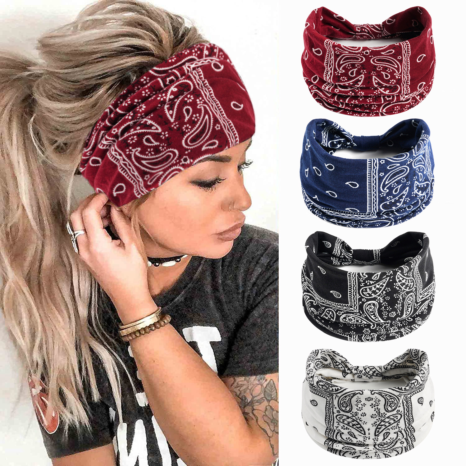 Bohemia europea y americana anacaju yoga deporte correa de cabello antitranspirante absorción de sudor correa de cabello de algodón elástico toque de cabello de mujer joyas para el cabello