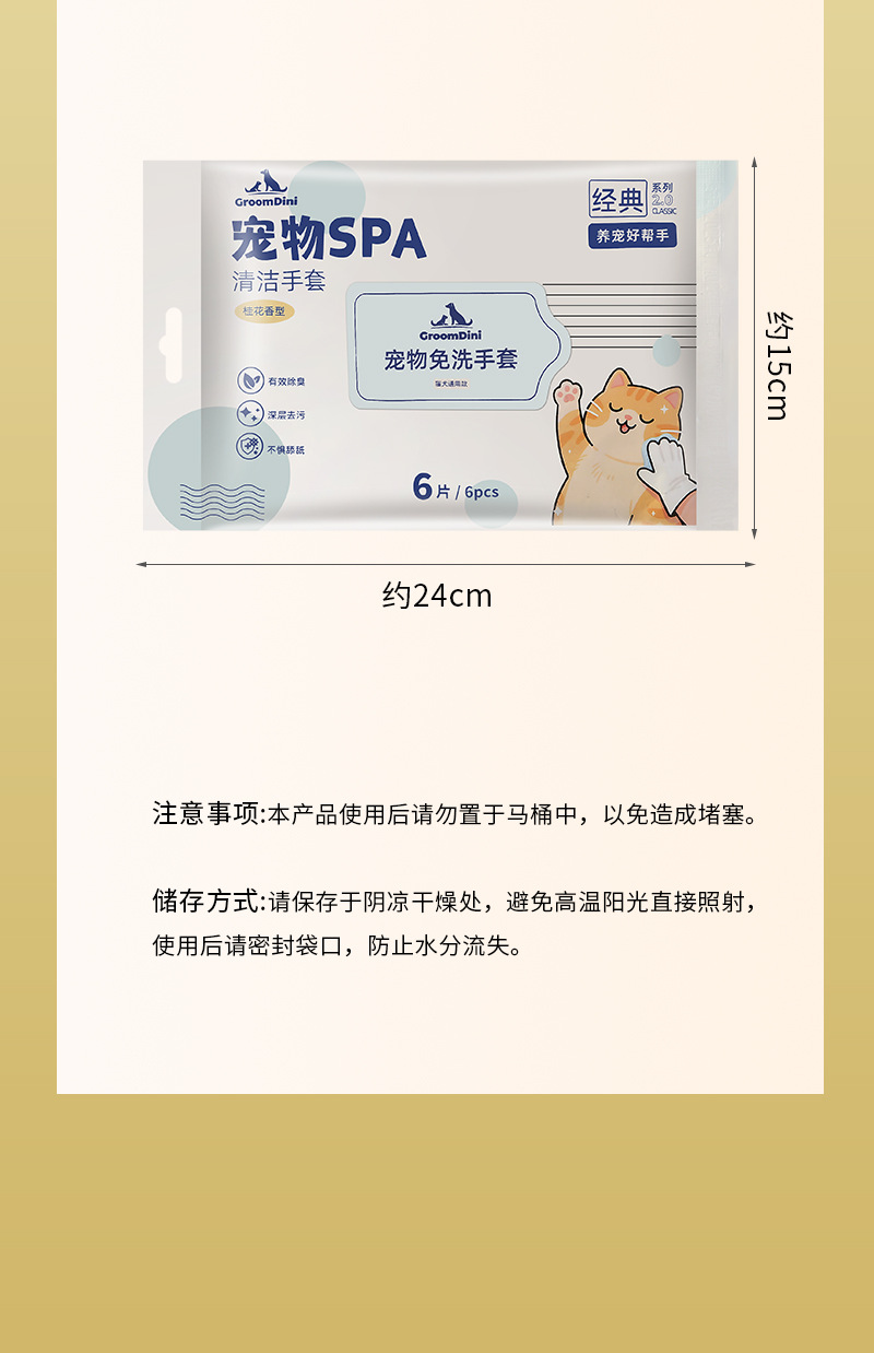 | Productos de mascotas | Guantes de toallitas húmedas, guantes sin lavado para mascotas, guantes desechables, guantes desodorantes, guantes desodorantes |