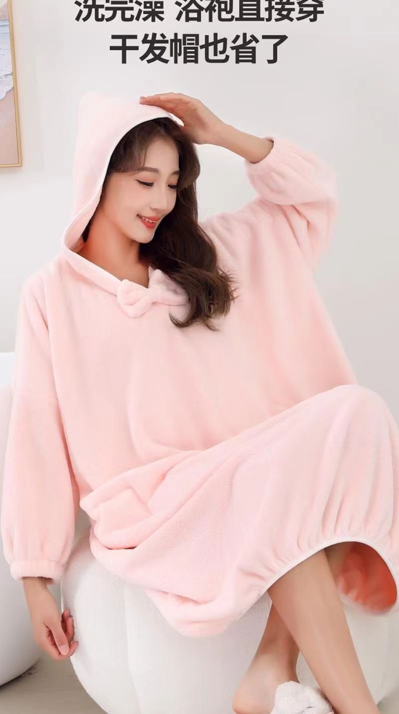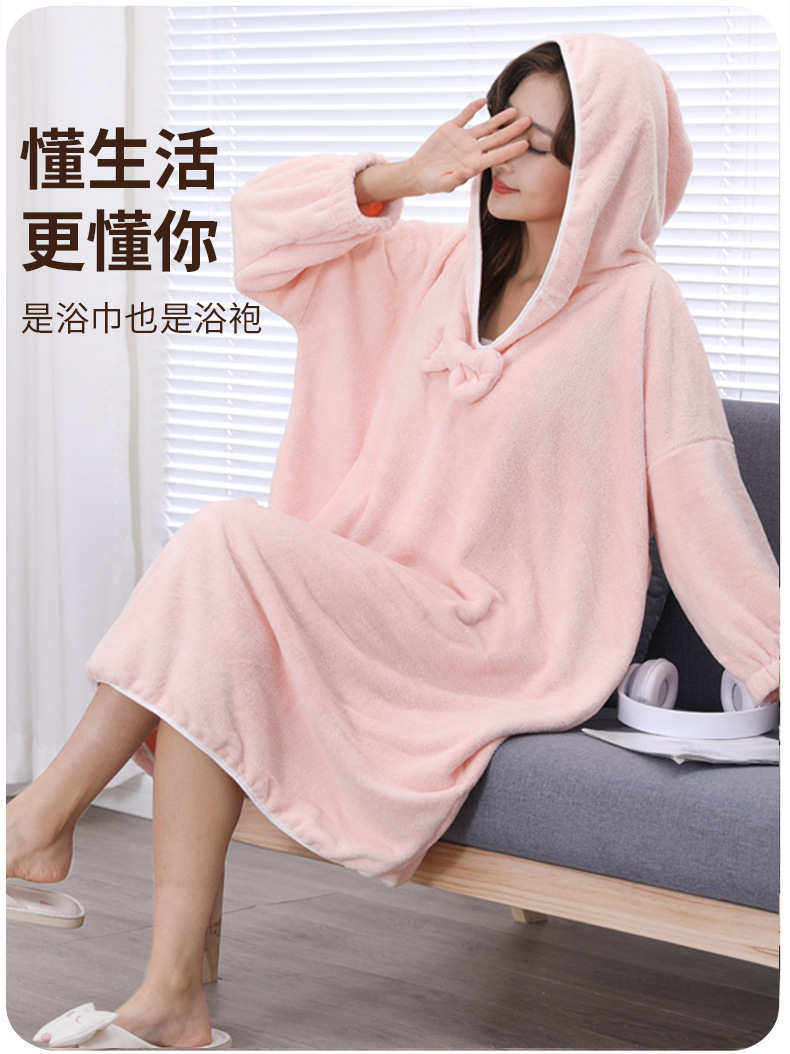 Coral vello vestido de baño largo vestido de baño mujer encapuchado vestido de baño hotel de ocio rápido secado al por mayor