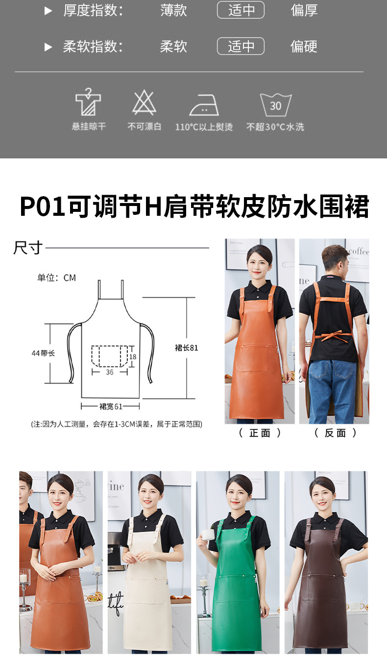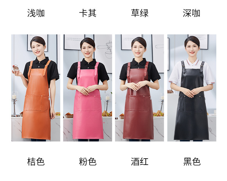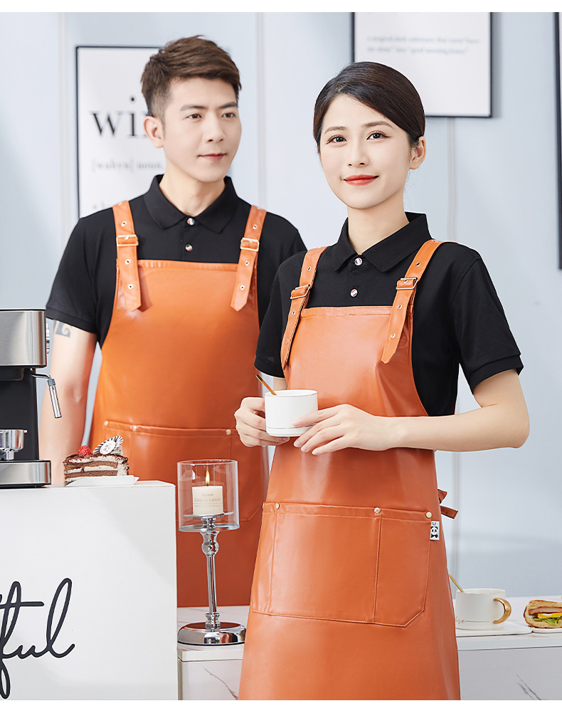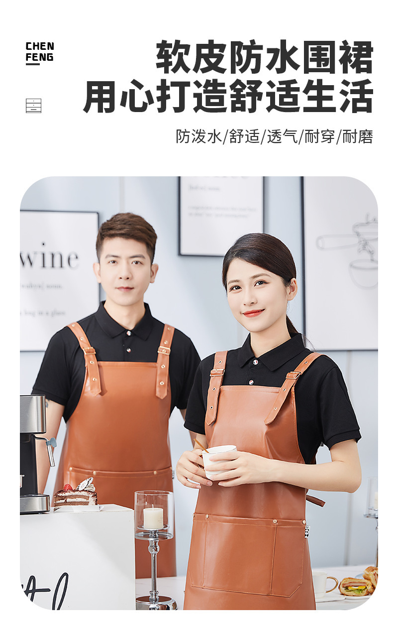 Delantal a prueba de agua a prueba de aceite cocina doméstica PU cuero suave comedor especial logotipo bordado impresión ropa de trabajo mujer y hombre