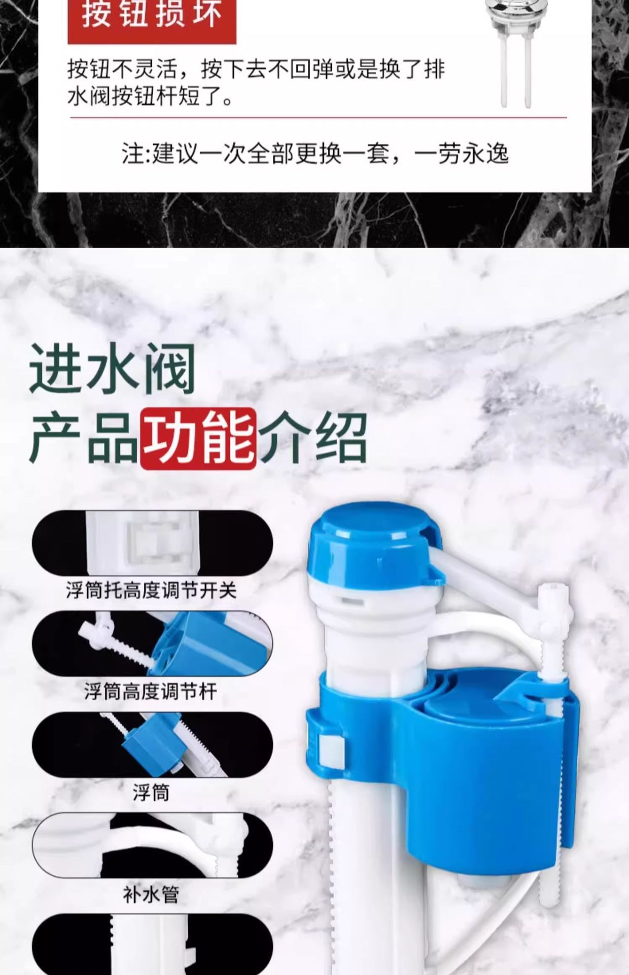 Accesorios de tanque de inodoro antiguo conjunto completo de válvula de entrada de agua asiento de inodoro botón de válvula de drenaje
