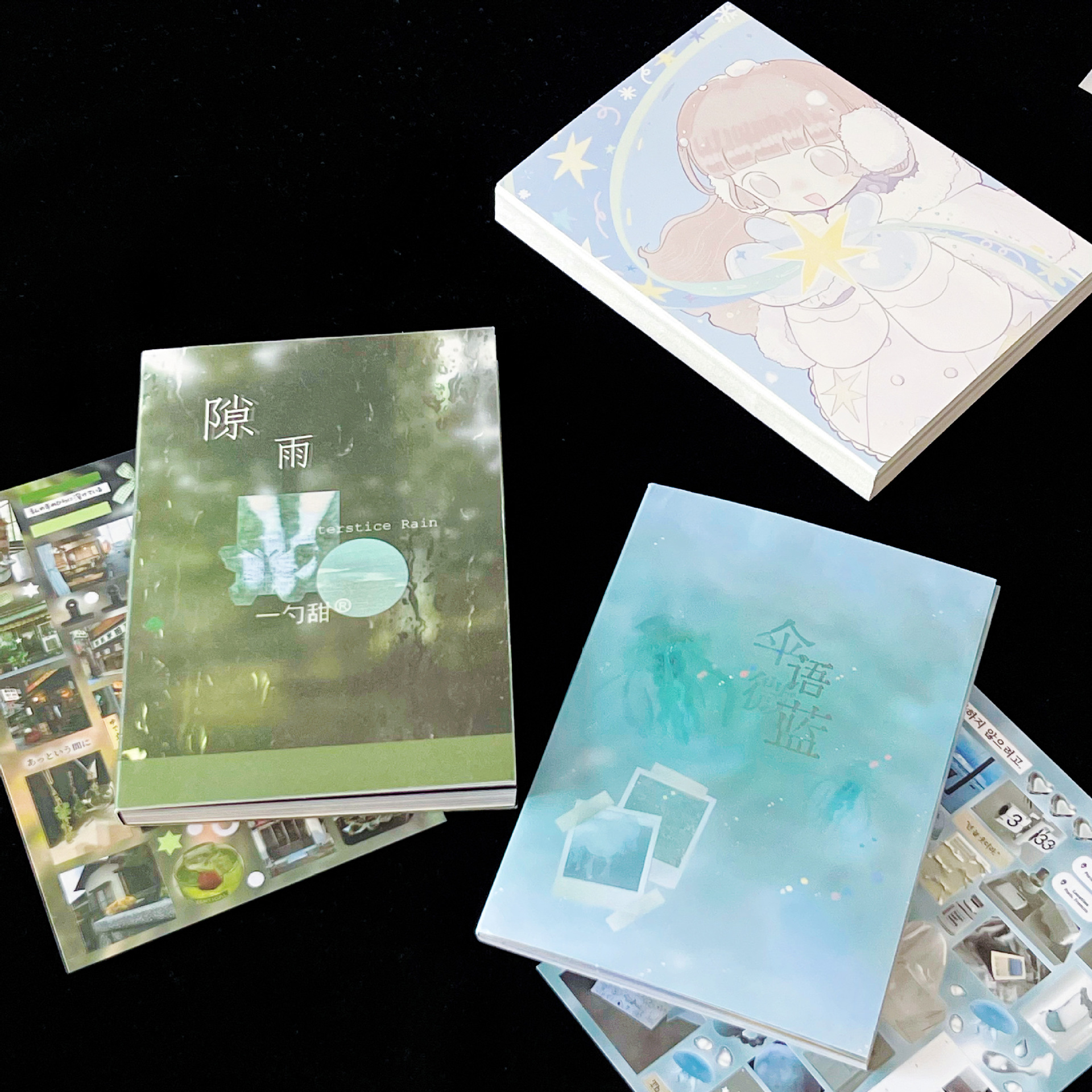 | Color | Paraguas azul claro / 32P, la lluvia / 32P, el pequeño restaurante de interés (rojo) / 30P, un pequeño deseo (rosa) / 30P |