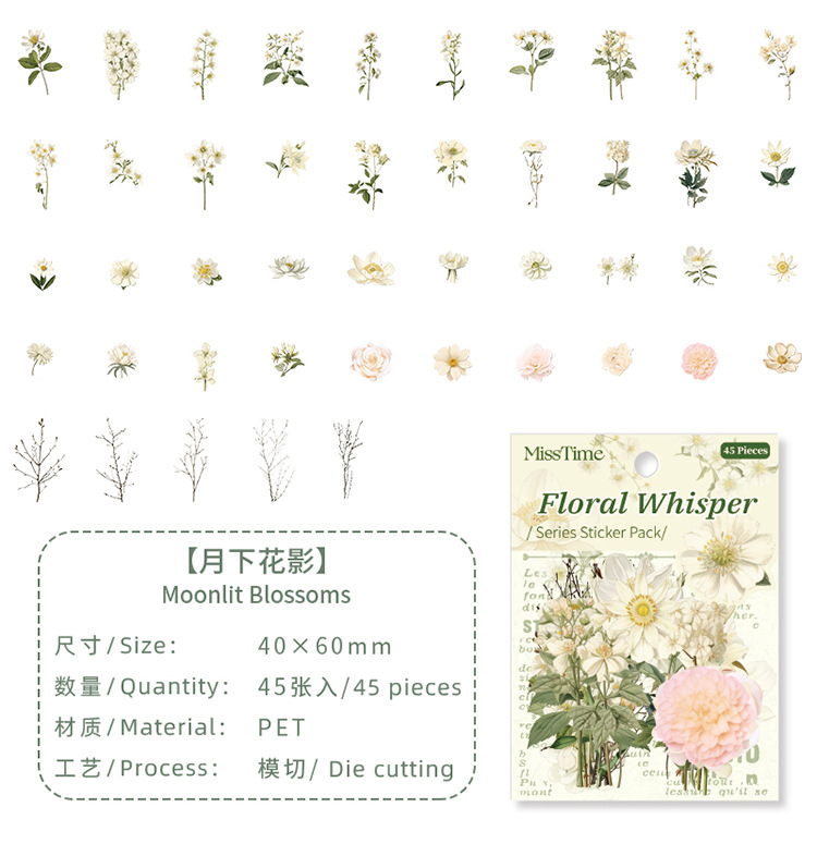 | Número de artículo | Paquete de pegatinas PET de la serie Huayu susurrando |