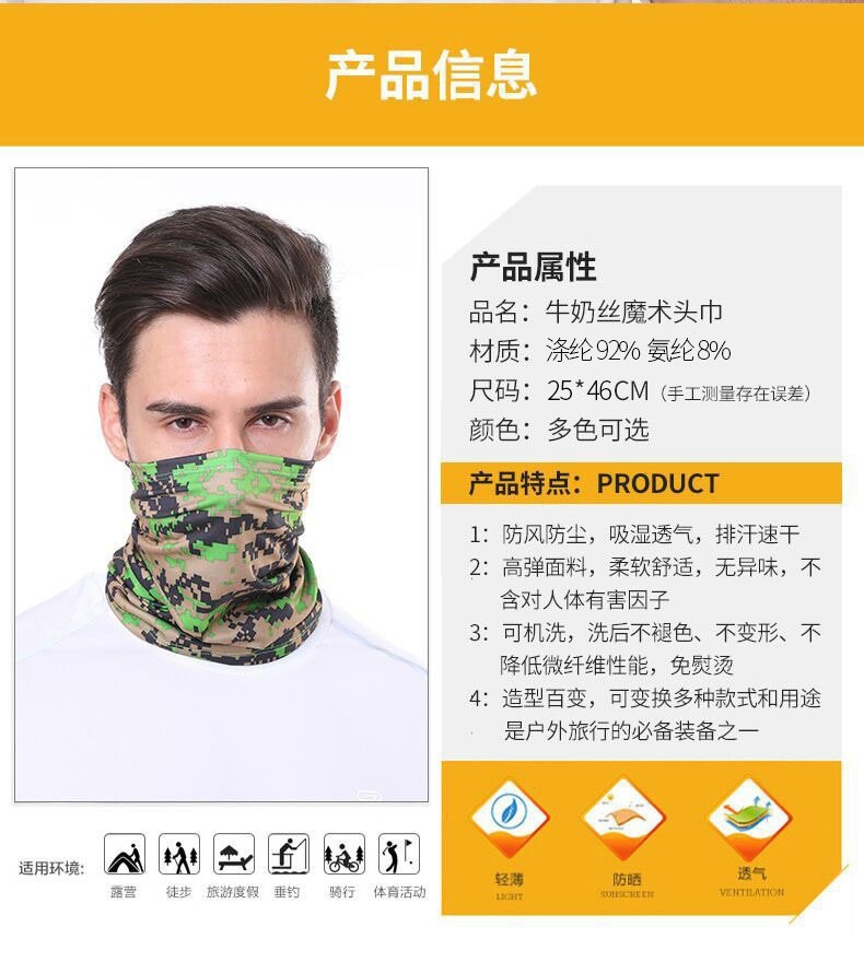 Verano delgado hielo buñuelo mágico de color sólido, montaña, ciclismo, máscara solar, protección de cuello transpirable