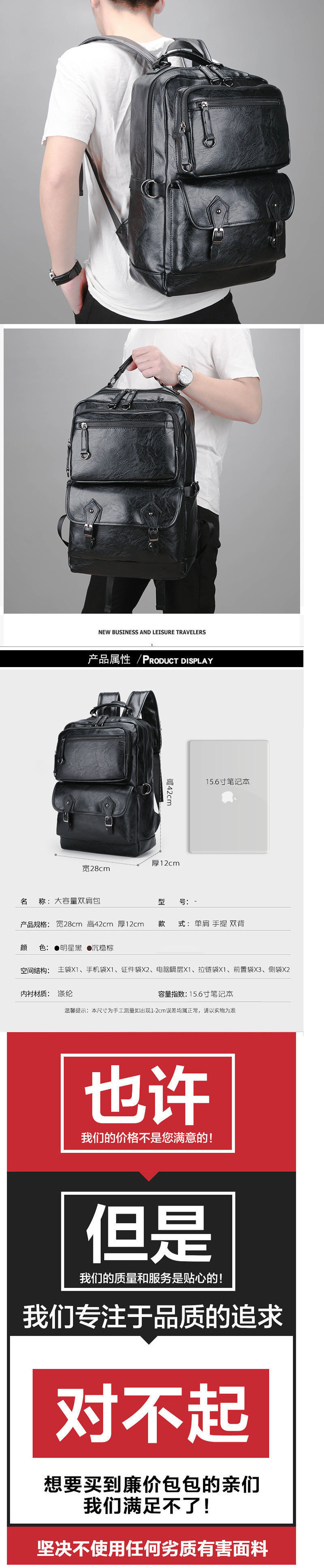 Mochila de cuero para hombre de viaje, mochila de negocios de ocio, escuela secundaria de tendencia, mochila escolar de gran capacidad para estudiante, bolso de computadora para hombre